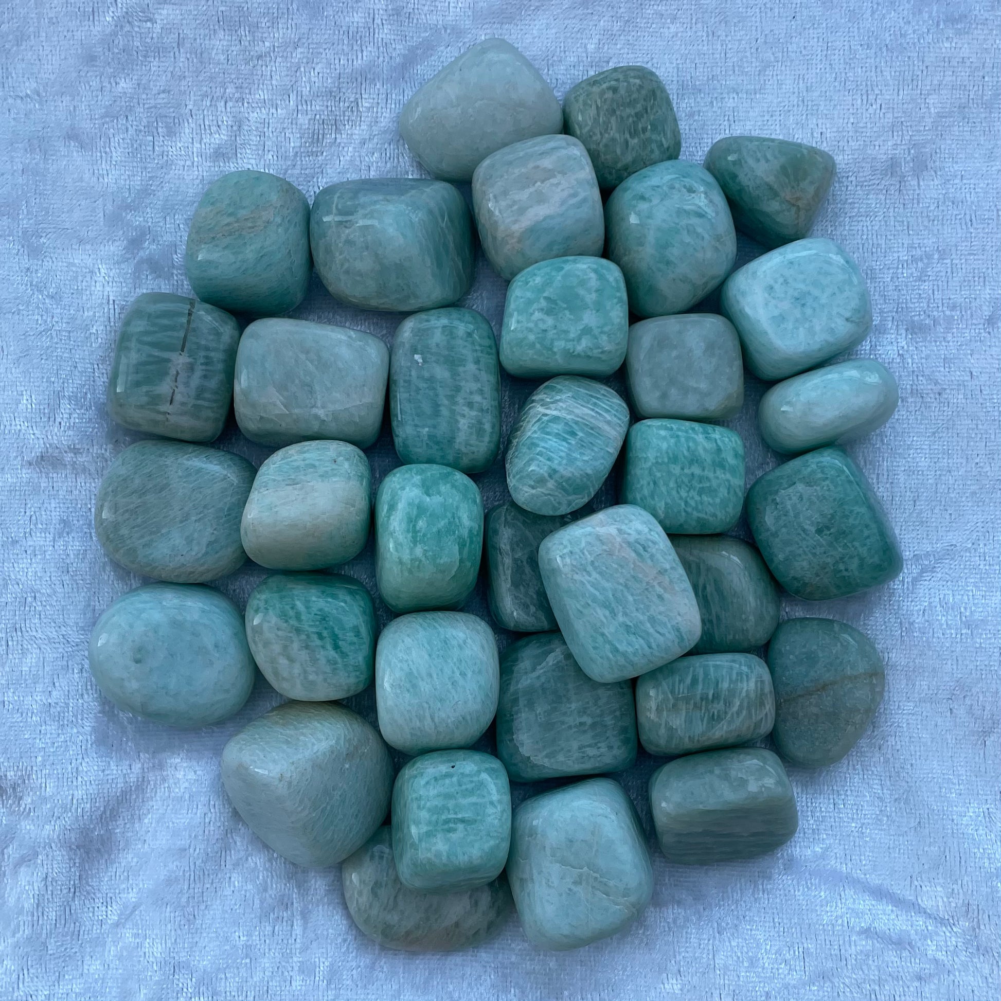 Amazonite is named after the Amazon River of South America. There are no Amazonite deposits that exist in the Amazon region, so presumably this stone is named after its resemblance in color to the green of the tropical rainforest.