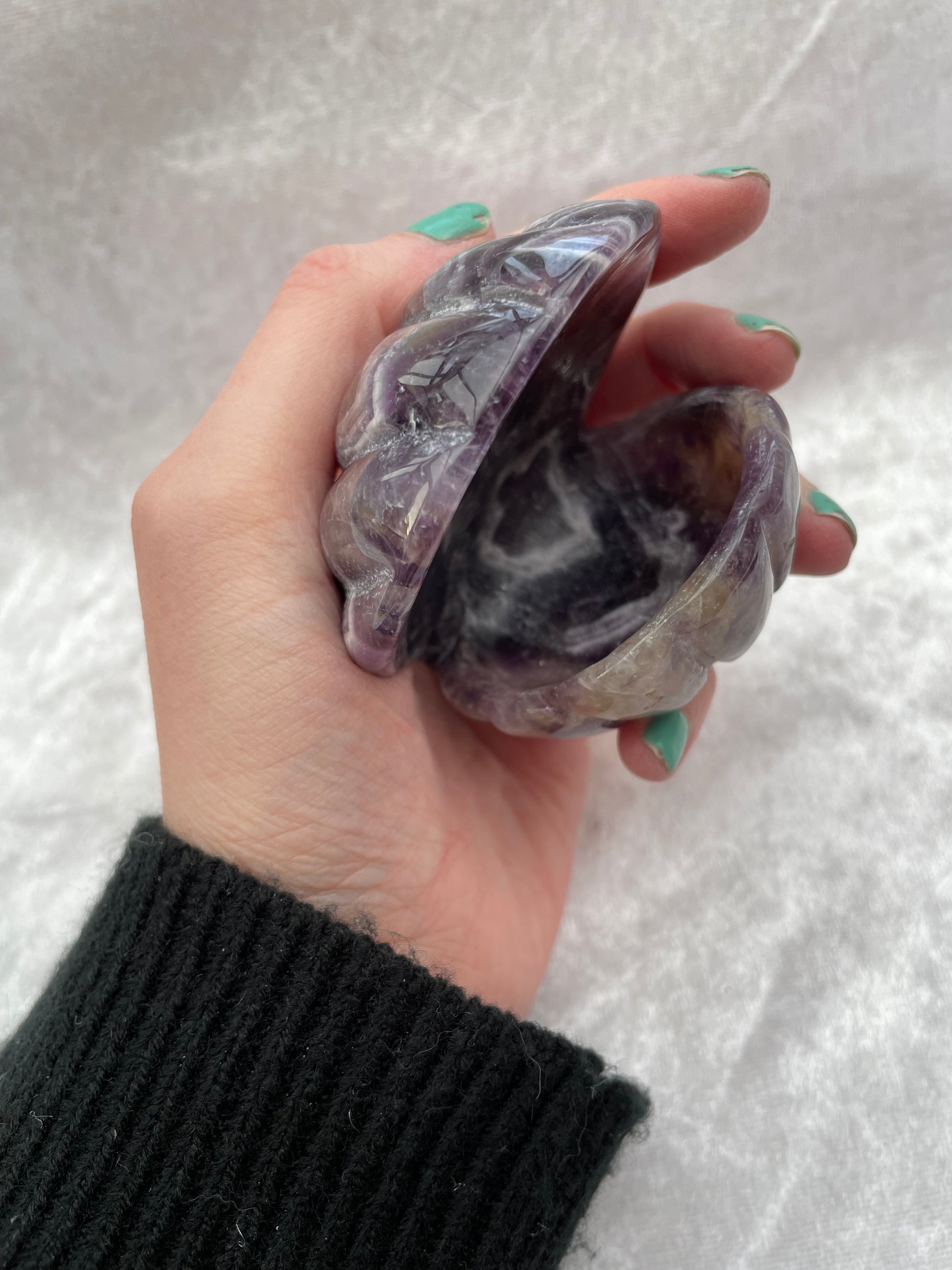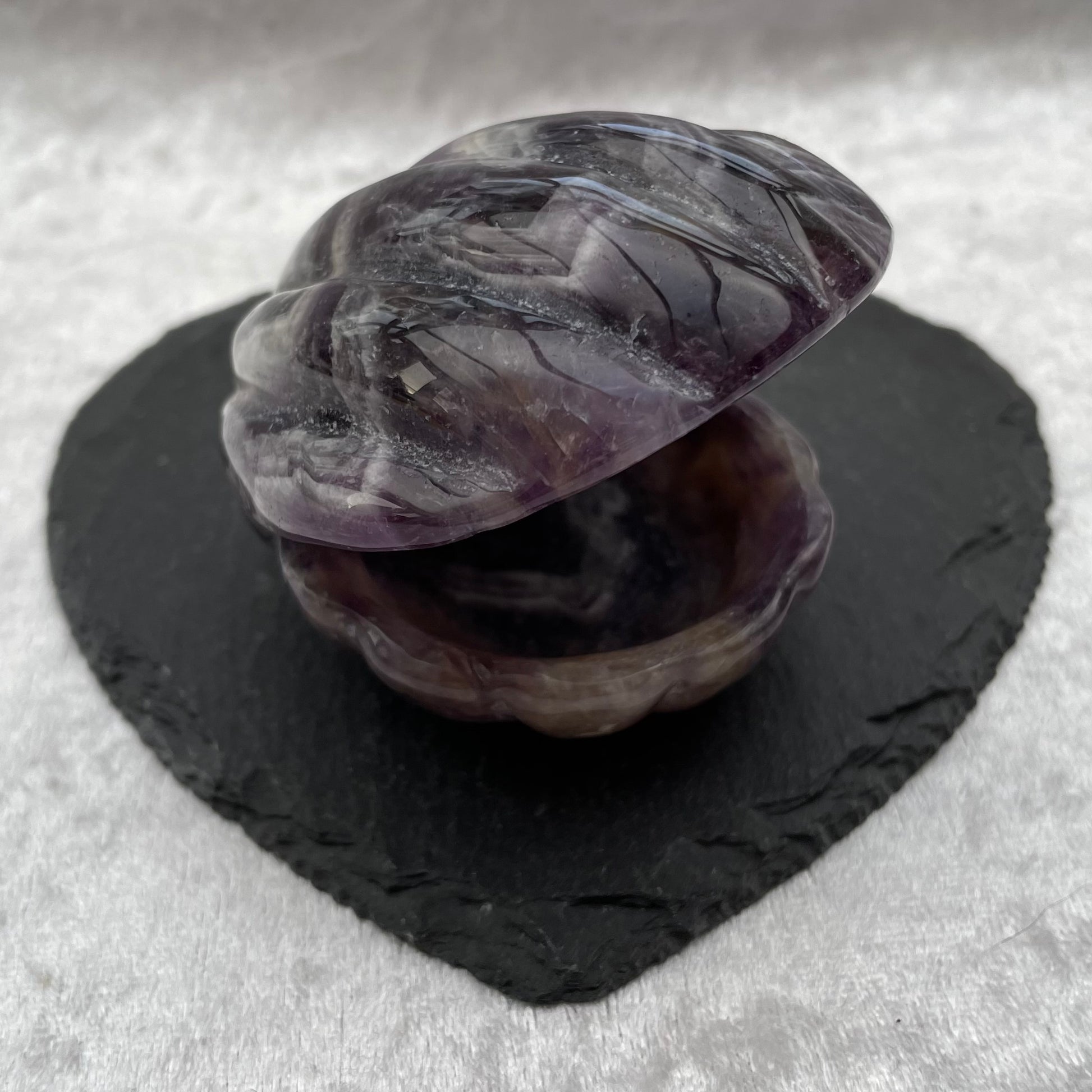 Amethyst is the purple variety of quartz. After crystallisation, gamma rays irradiate the trace amounts of iron in the quartz to produce the purple colour.