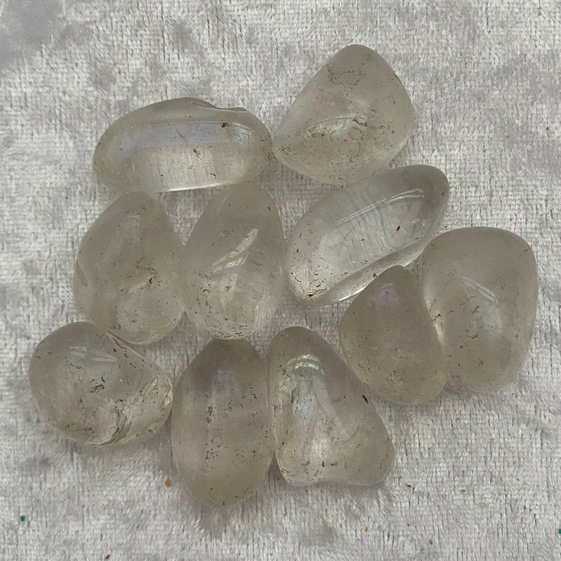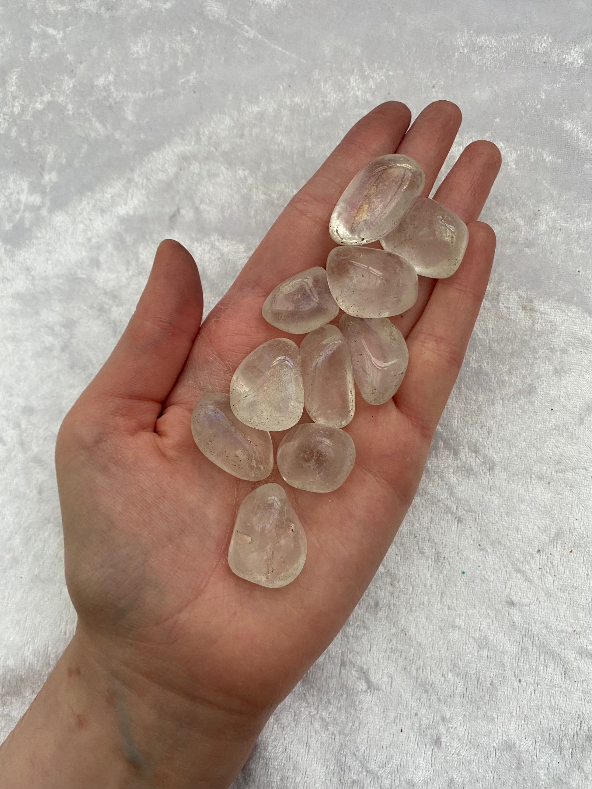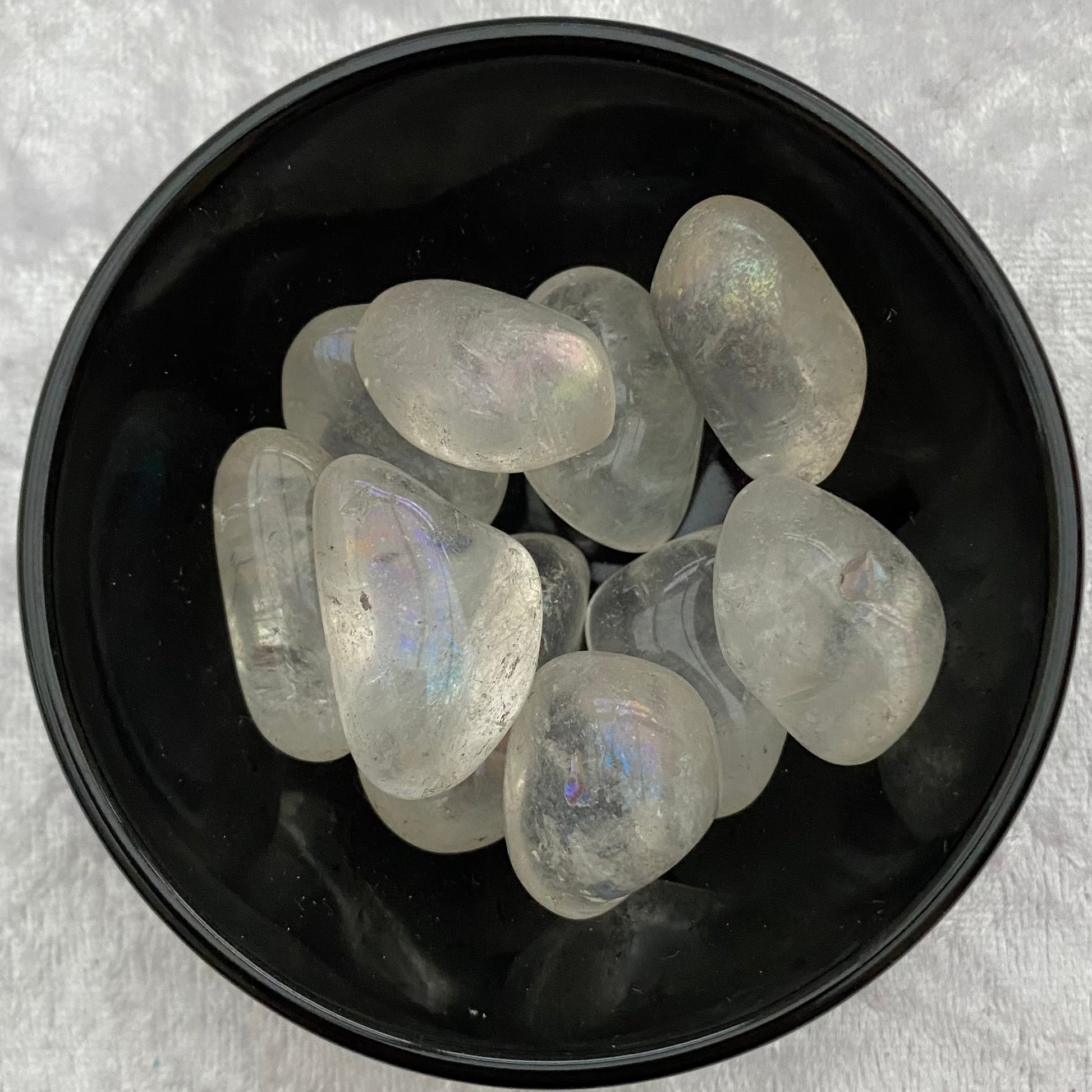 Aura crystals are made by heating Quartz crystals to an extremely high temperature then coating them with fine vaporized precious metals. This gives them a rainbow sheen.