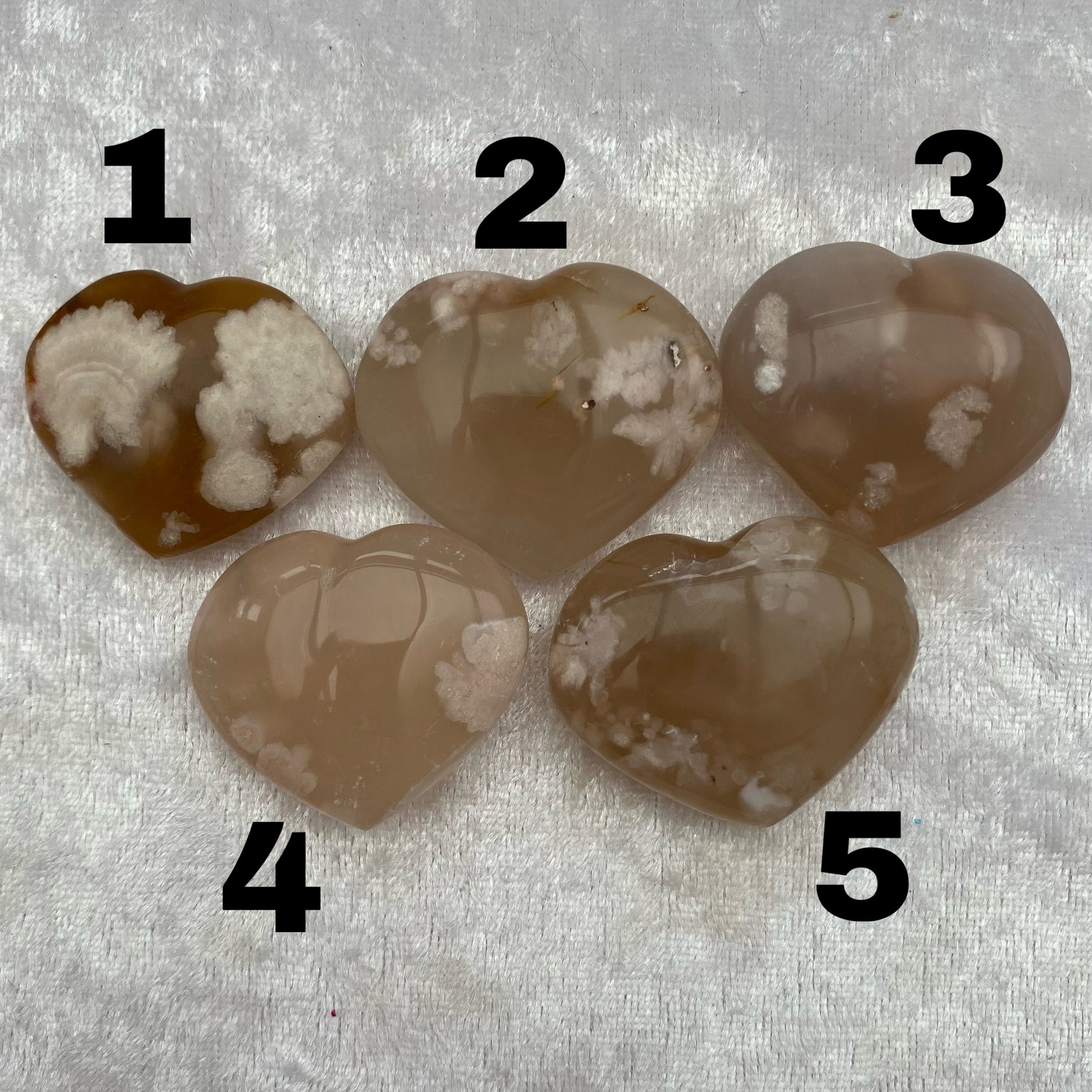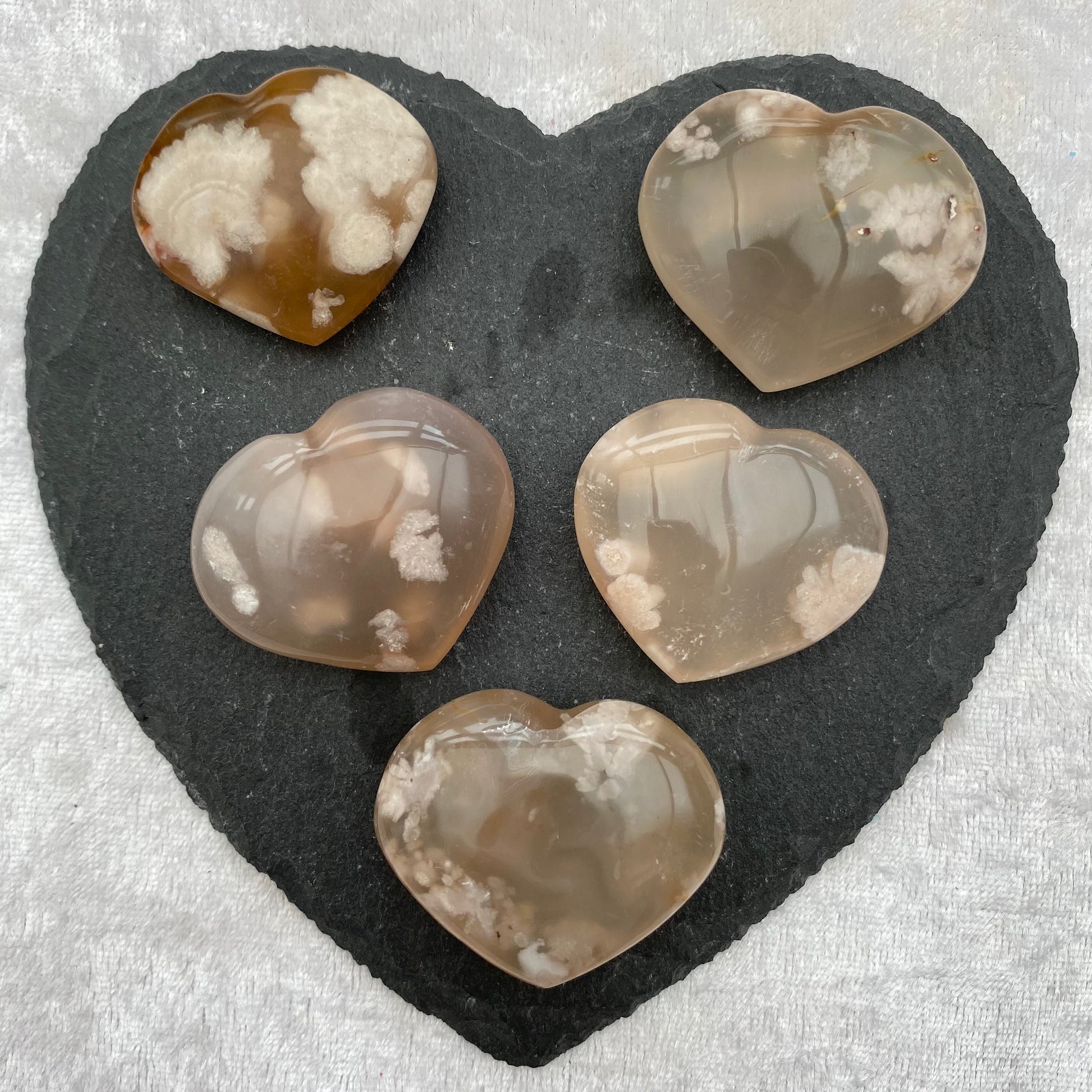 Flower agate is a formation of agate that contains plumes of white-pink, opaque chalcedony formations that are scattered throughout.