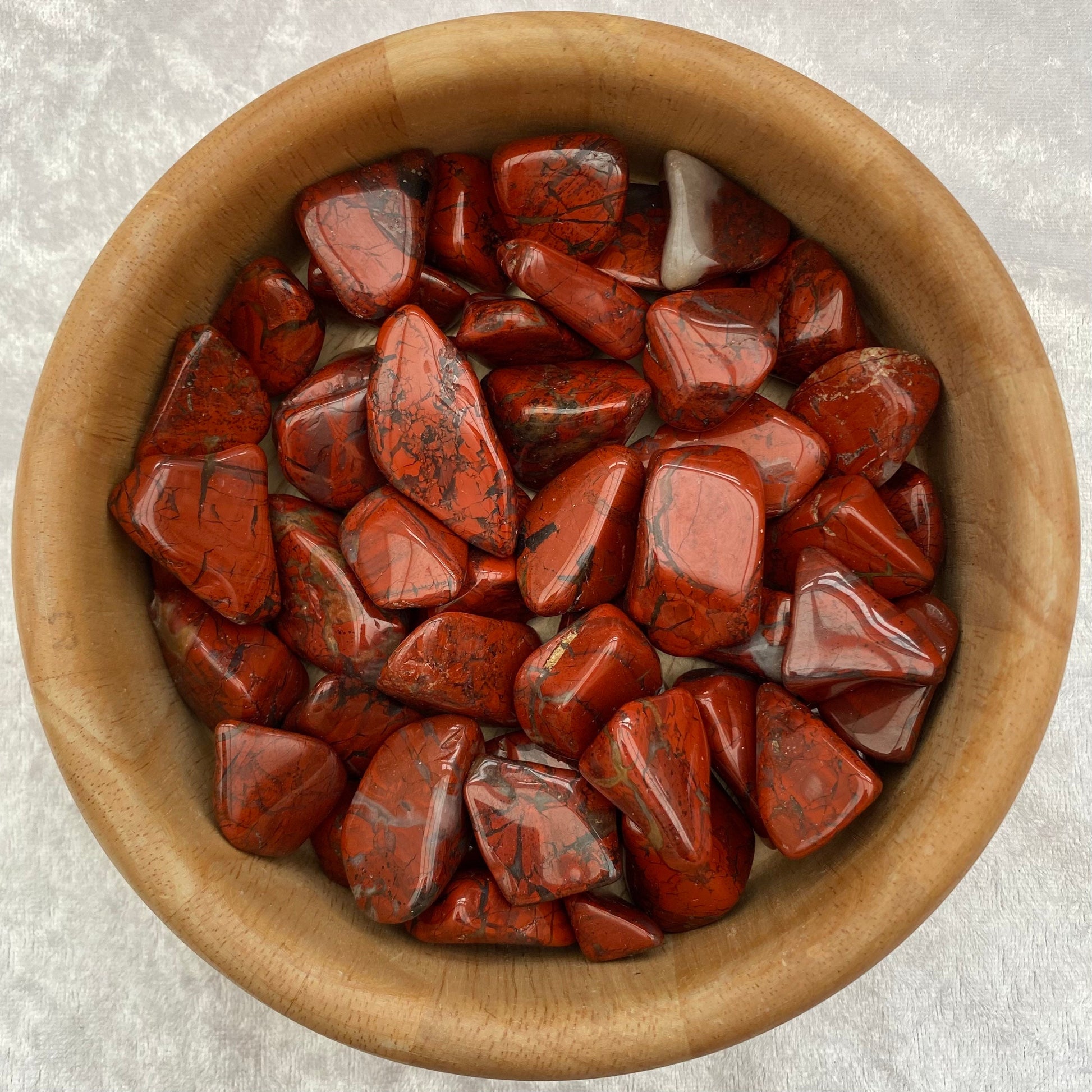 Brecciated jasper contains hematite which gives it both its red tones and the dark bands. Breccia means a rock composed of broken fragments cemented together into a fine-grained matrix.