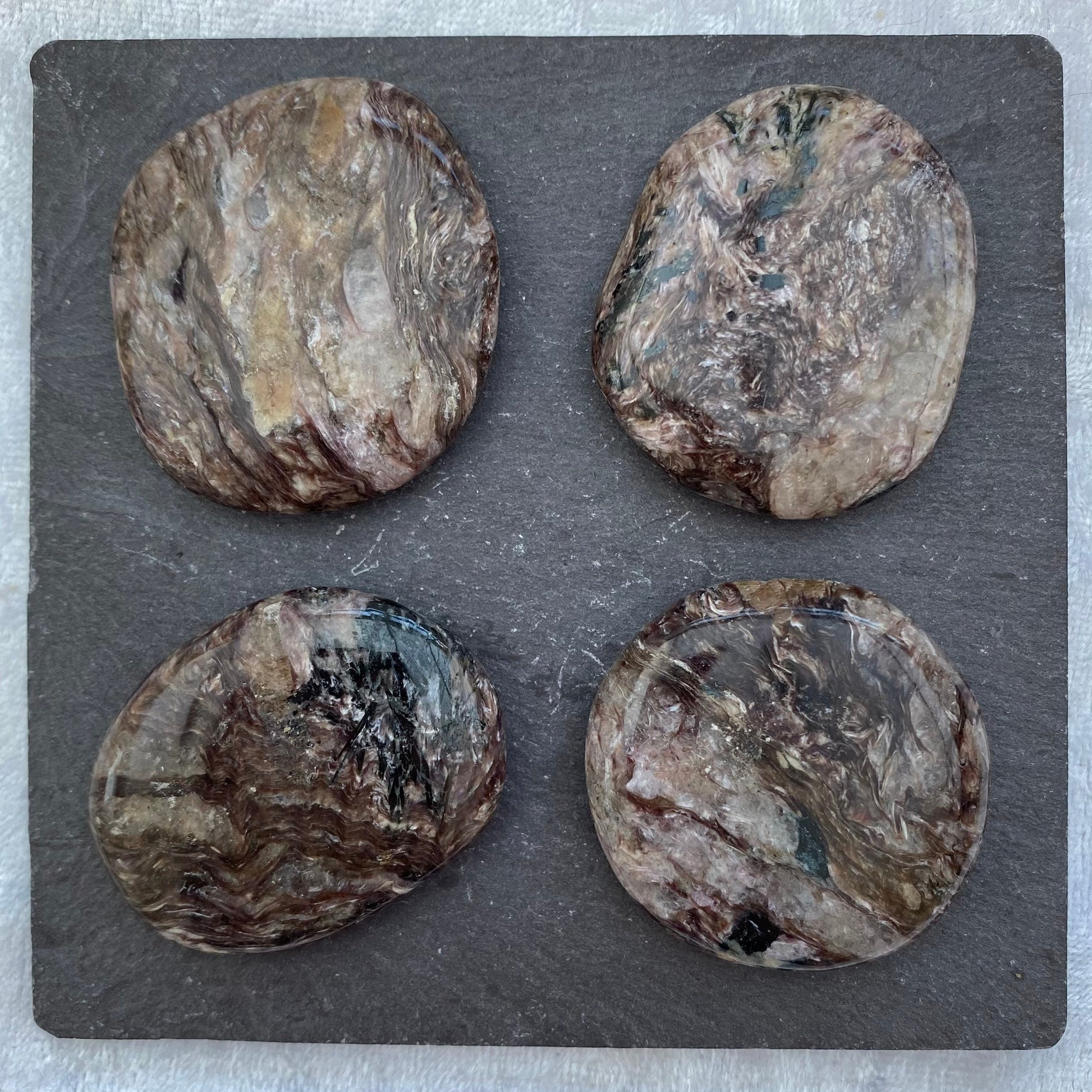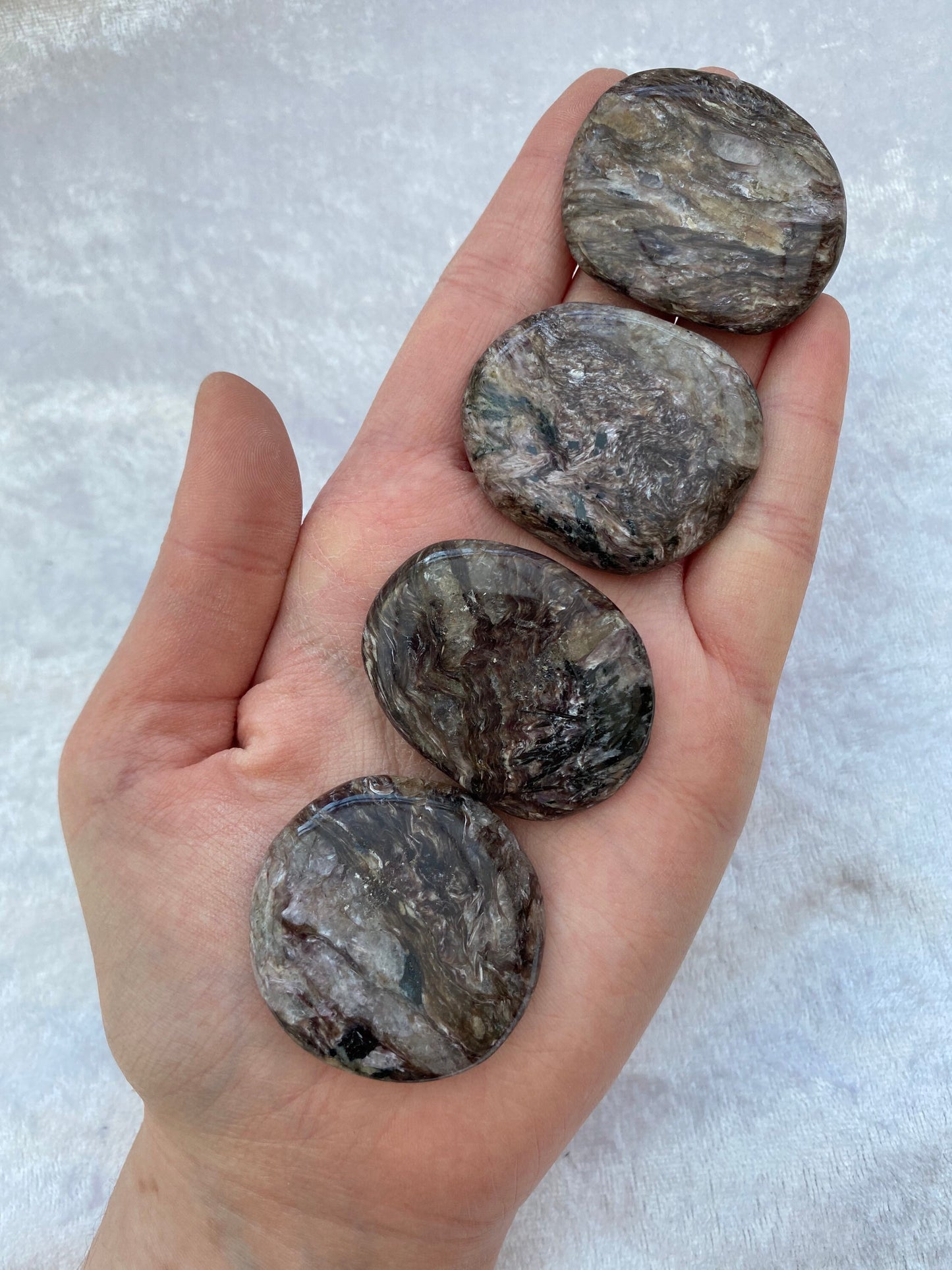 Charoite is a rare silicate mineral named after the Chara River. Charoite is translucent lavender to purple in colour with a pearly lustre.