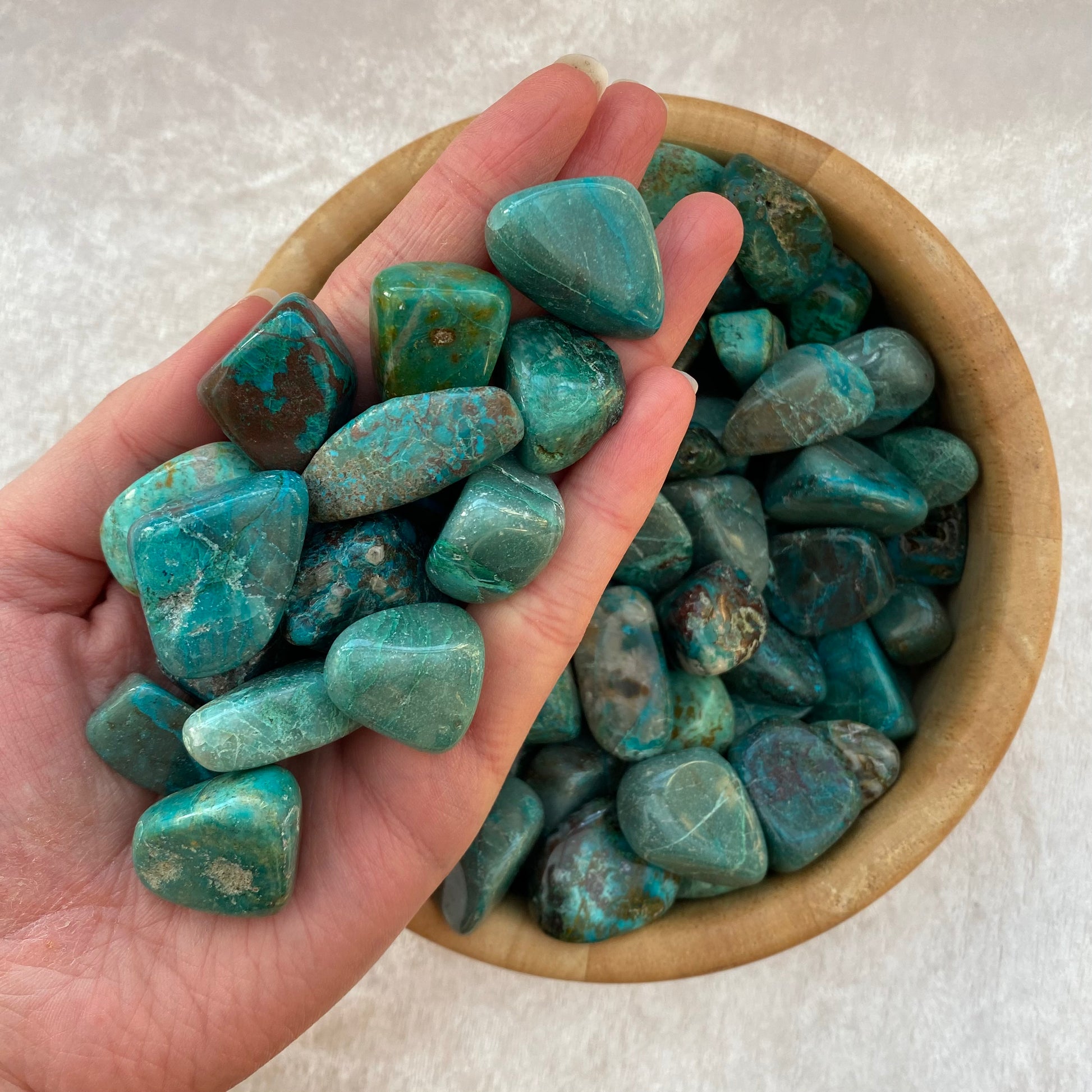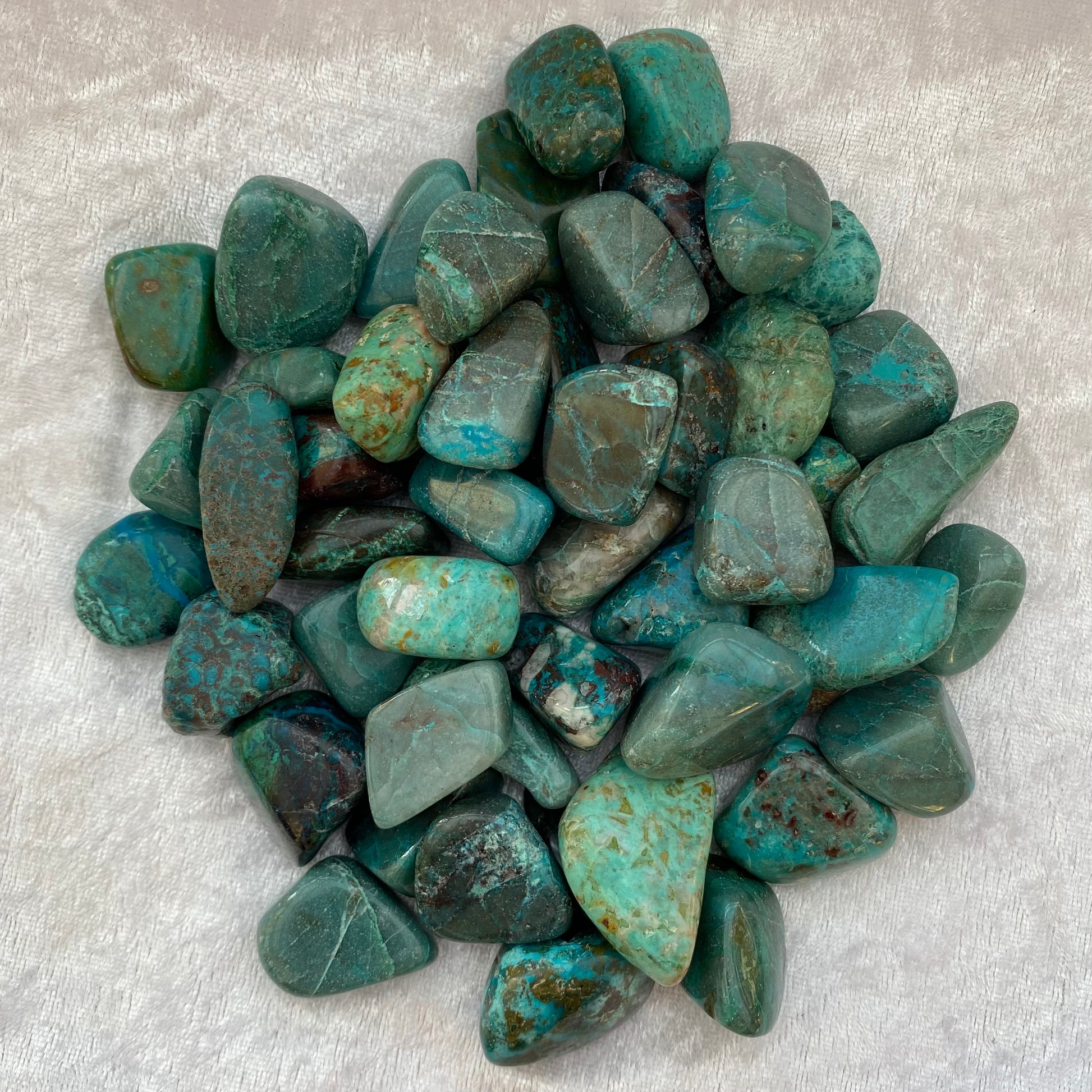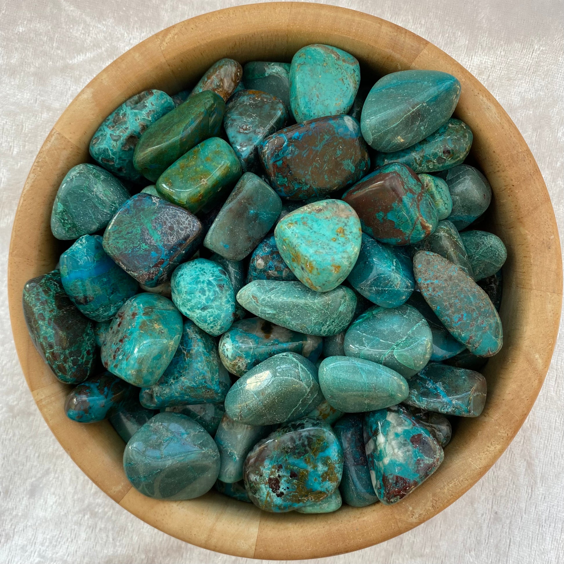 Chrysocolla is a sharply colored mineral which can be among the brightest shade of blue and green, and is caused by its copper content. Chrysocolla is often coated by a druzy layer of glossy clear Quartz, or intergrown together with the Quartz.