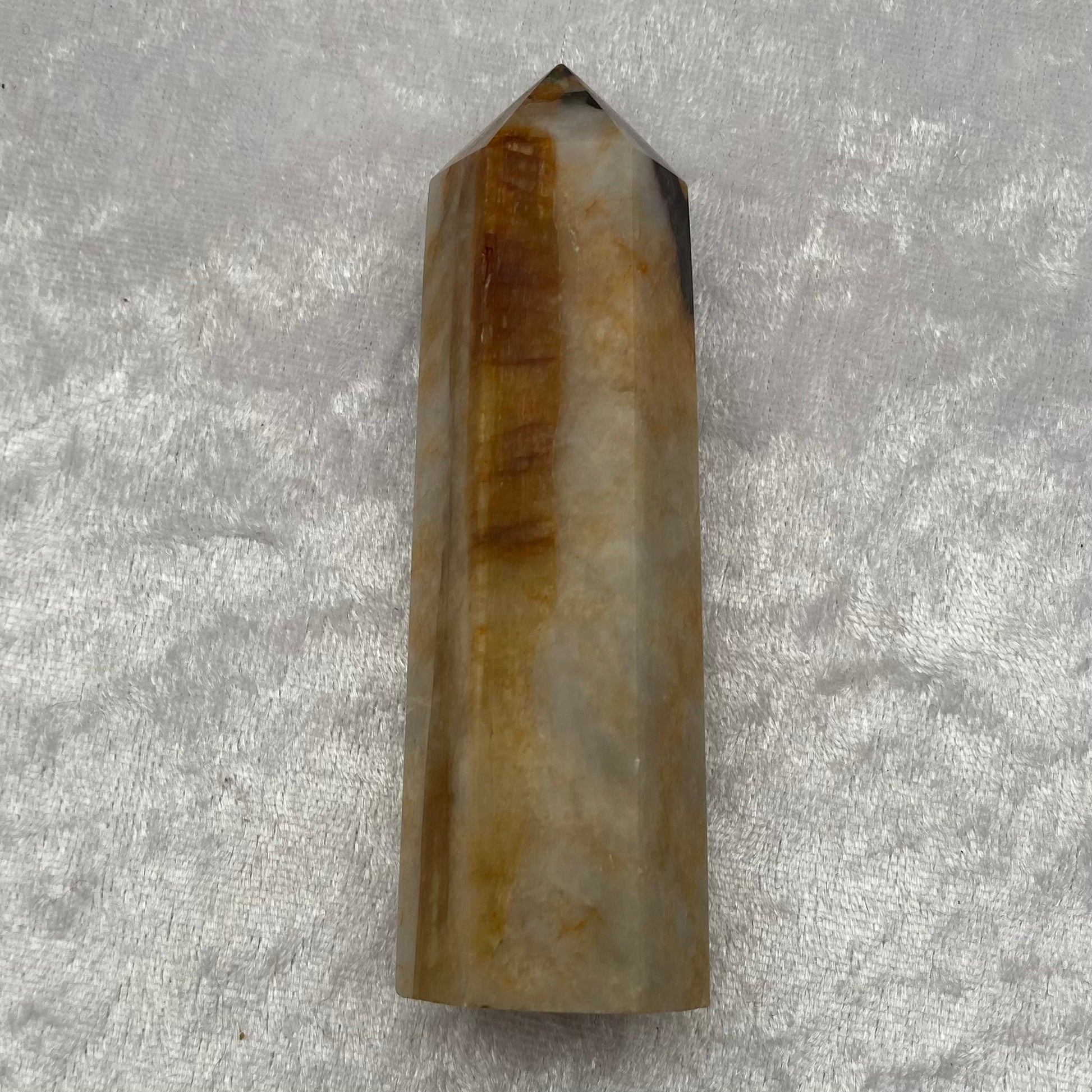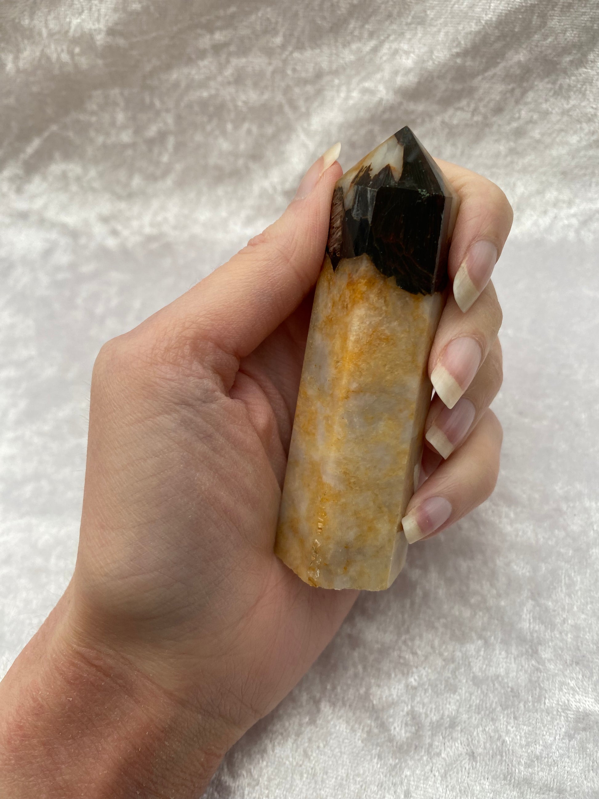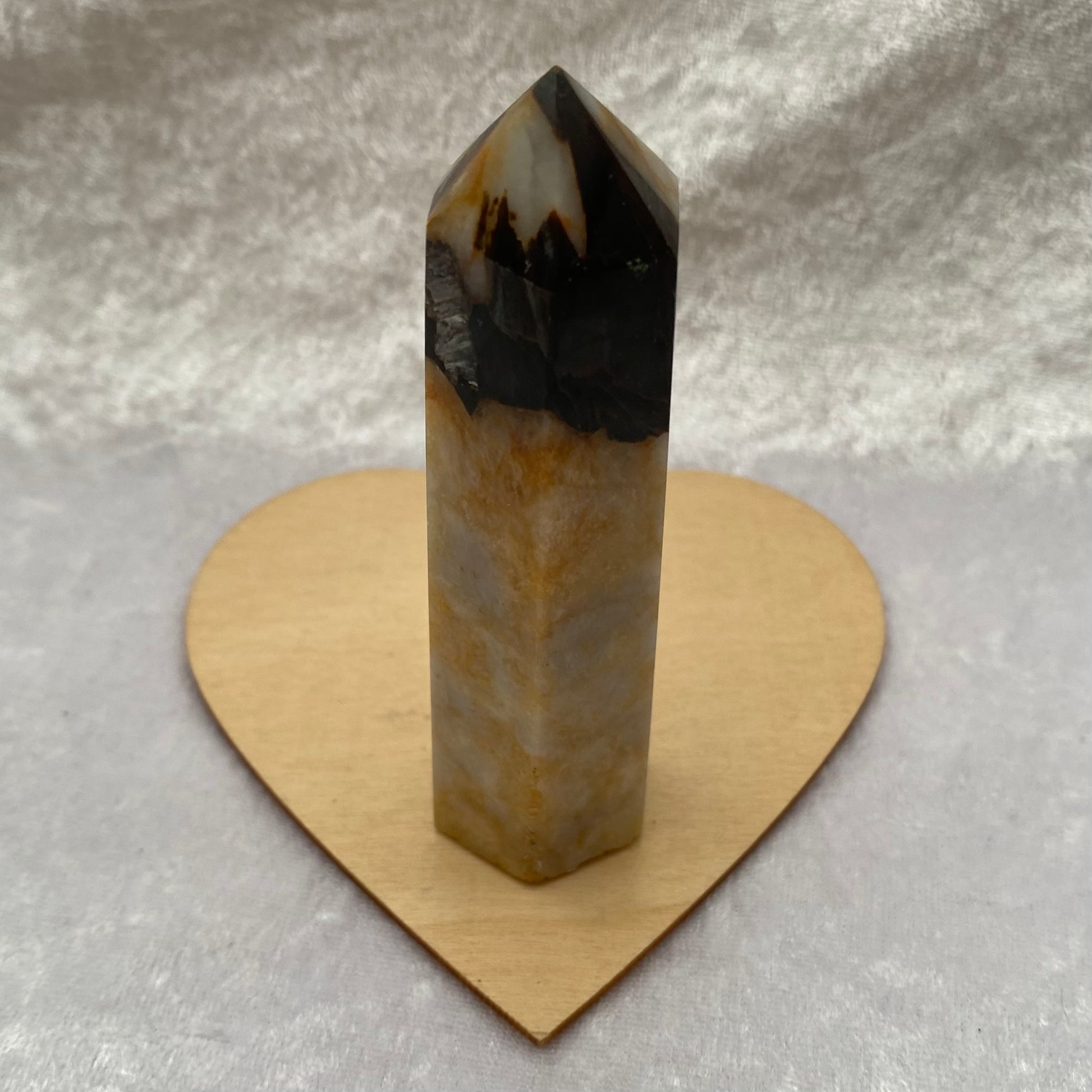 Over millions of years under extreme pressure, mineral rich water fractures the fossilised wood and leaves deposits. Carbon is replaced with Silicon and the palm root takes on a crystalline structure.