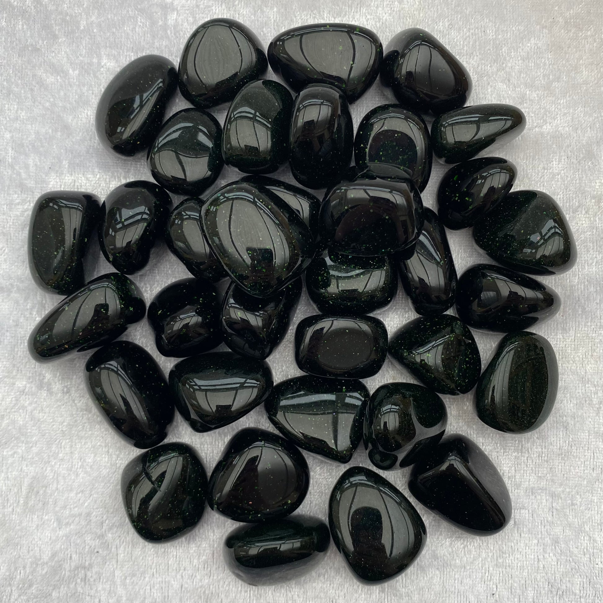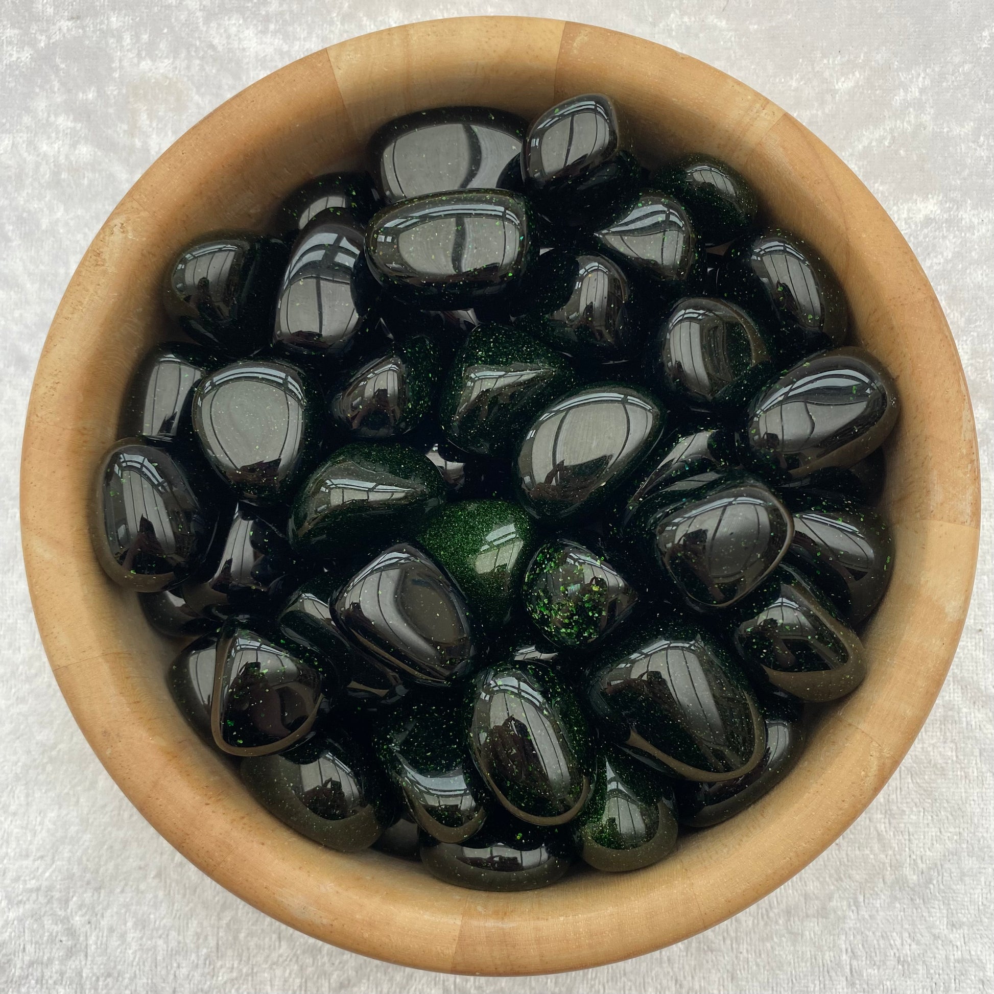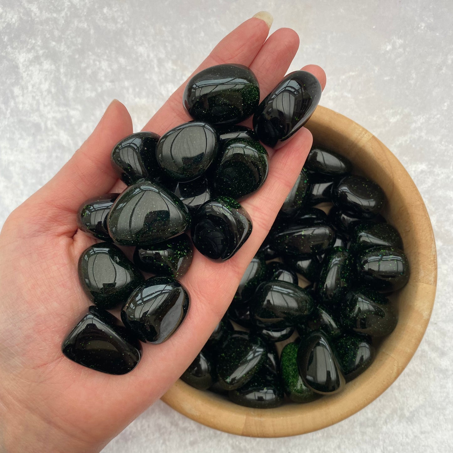 Goldstone is a man-made type of glittering glass made in a low-oxygen, reducing atmosphere. Its sparkle comes from tiny crystals of glittering metallic copper.