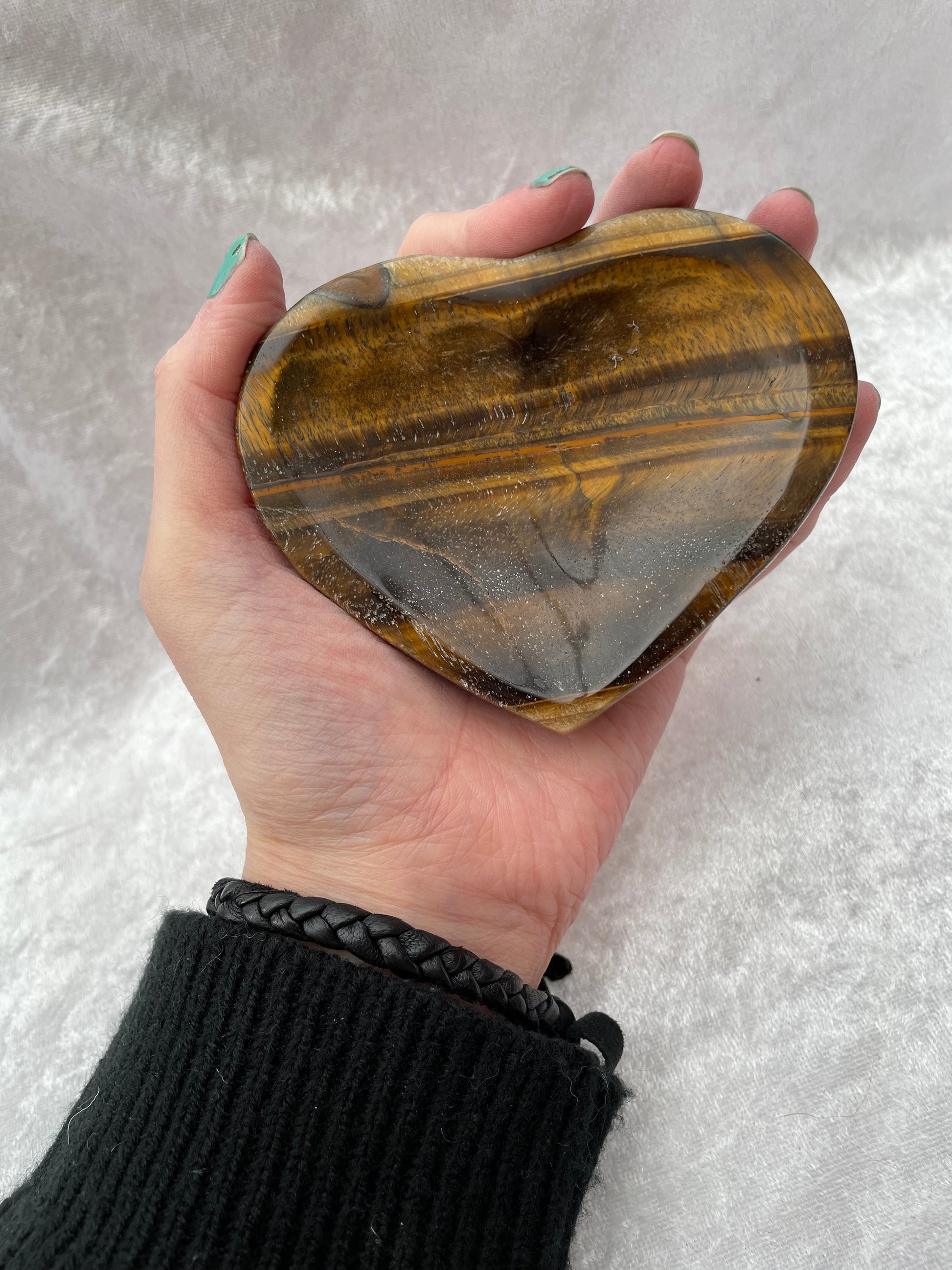 Tiger's Eye is a pseudomorph of compact Quartz after the fibrous mineral Crocidolite. It is formed when the Quartz takes over and dissolves the Crocodolite, leaving the Quartz in a finely fibrous and chatoyant form.