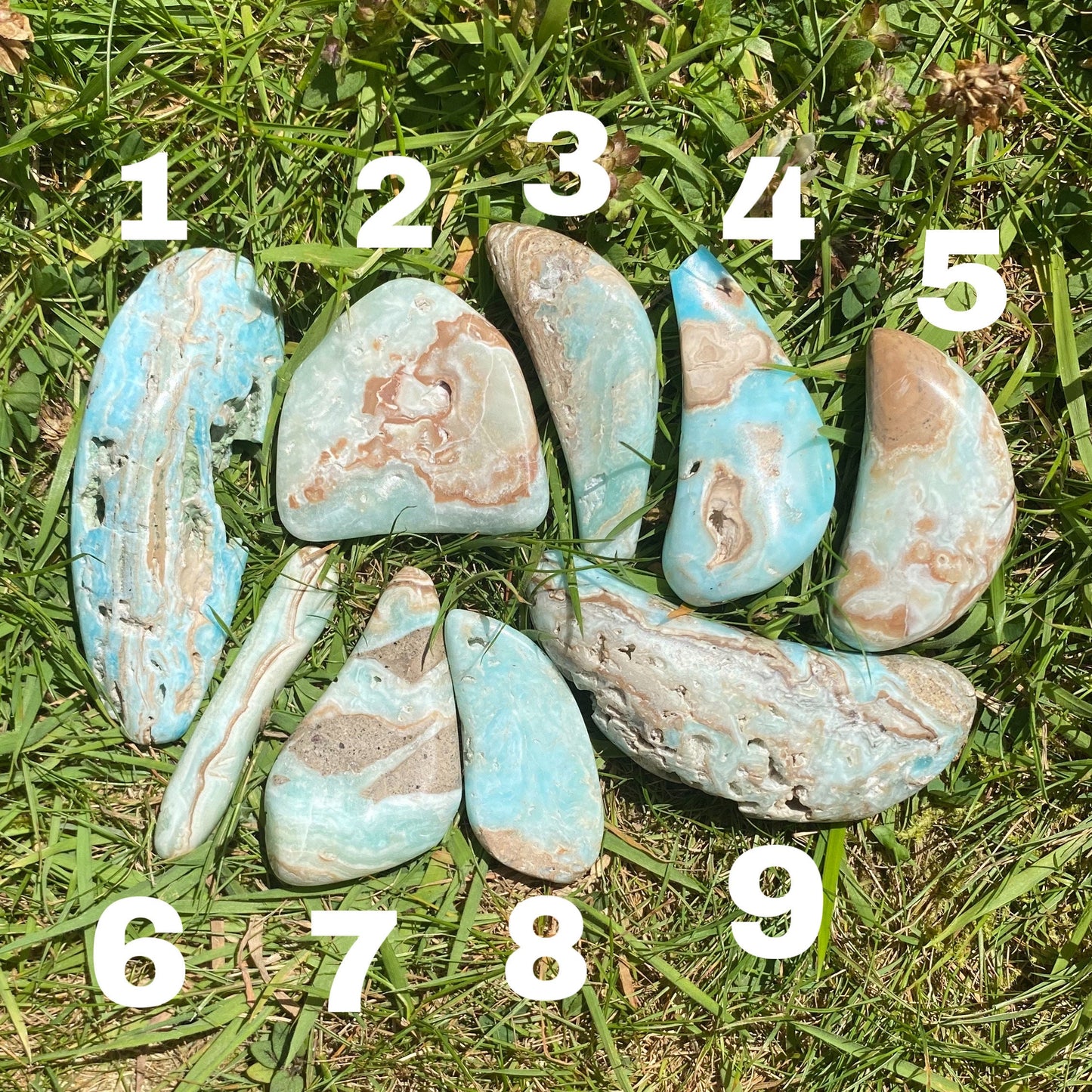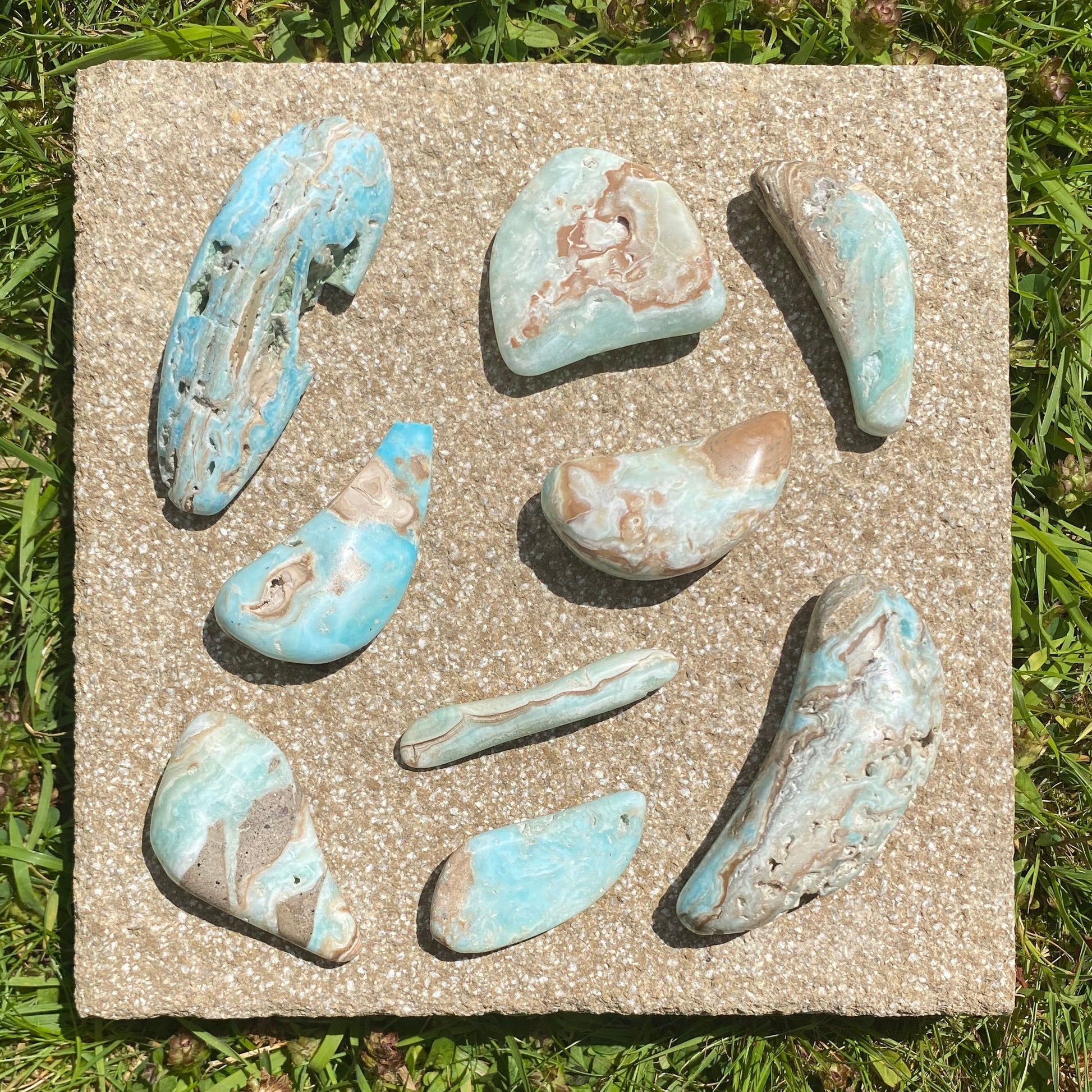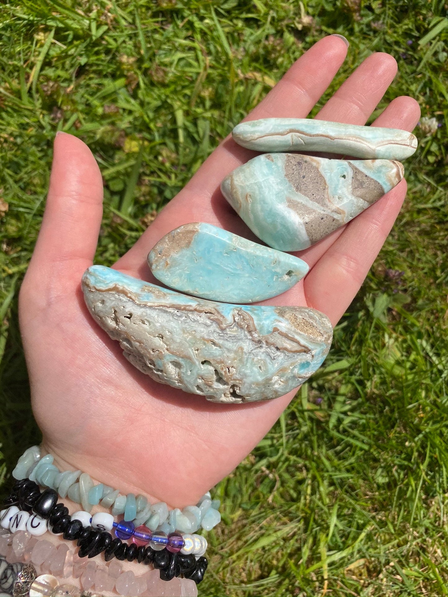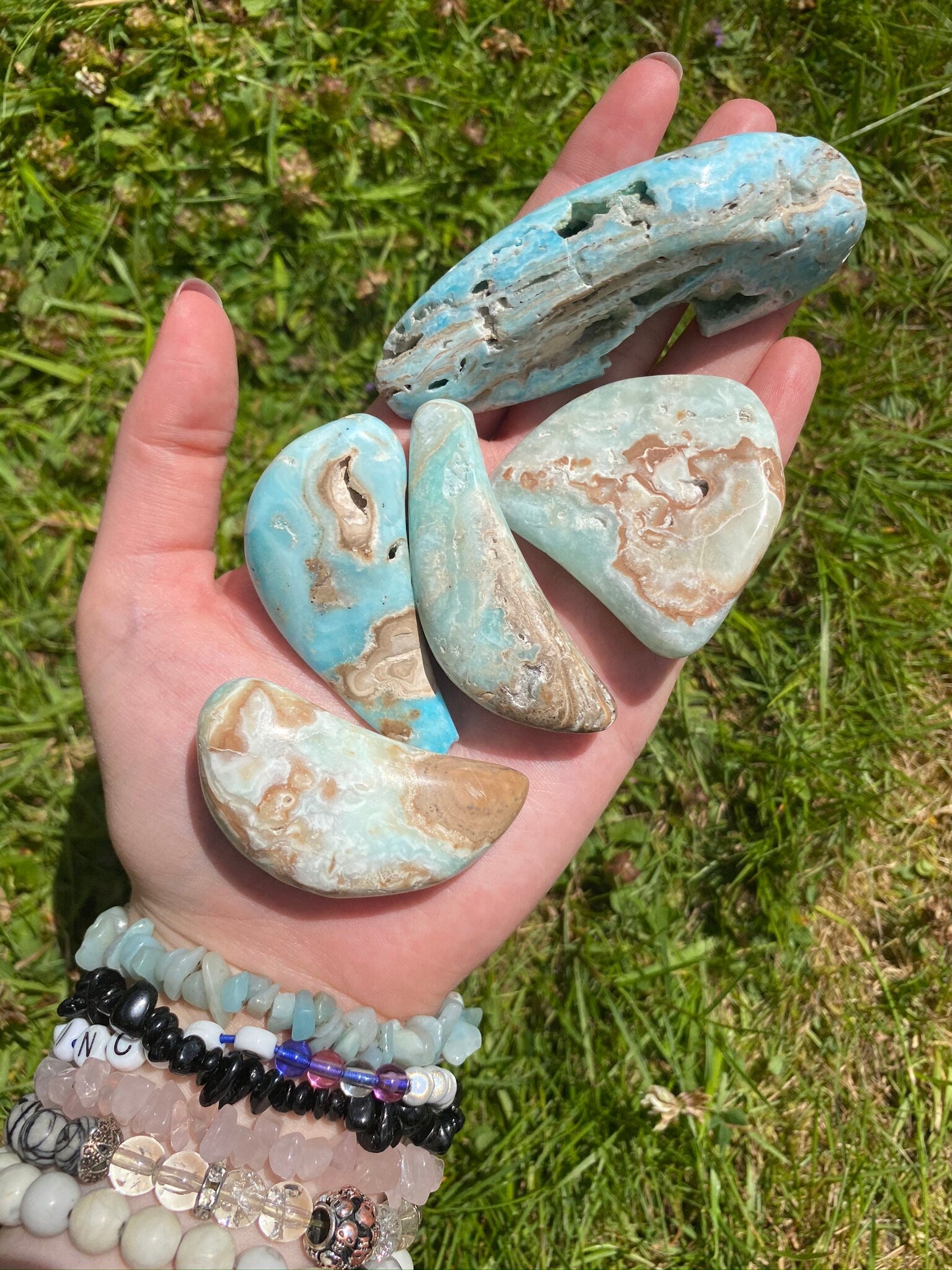 Hemimorphite is a rare form of zinc silicate. It can occur in various shades of blue and green. It can also sometimes be white or colorless. This formation of Hemimorphite is combined with Brown Aragonite.