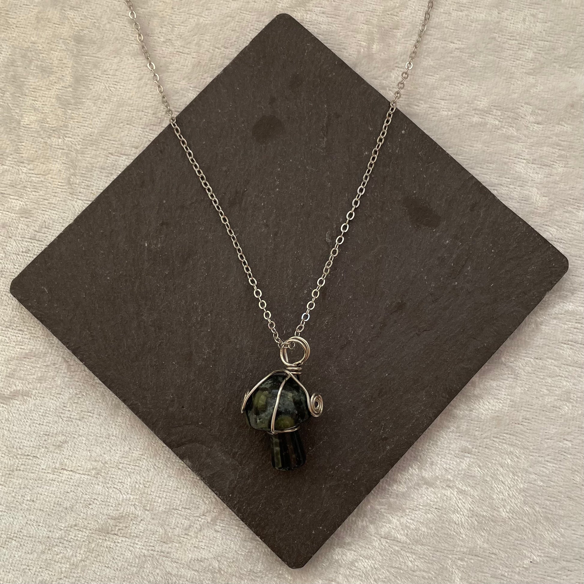 Kambaba Jasper Wire Wrapped Mushroom Necklace