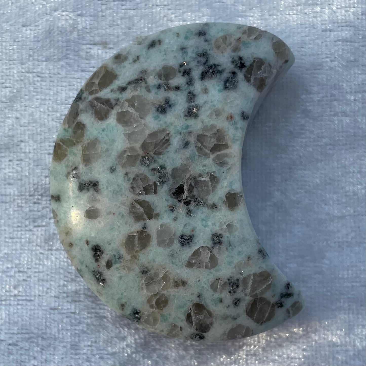 Kiwi Jasper, also known as Lotus Jasper or Sesame Stone is a Granite from New Zealand formed of Amazonite, Tourmaline and Quartz.