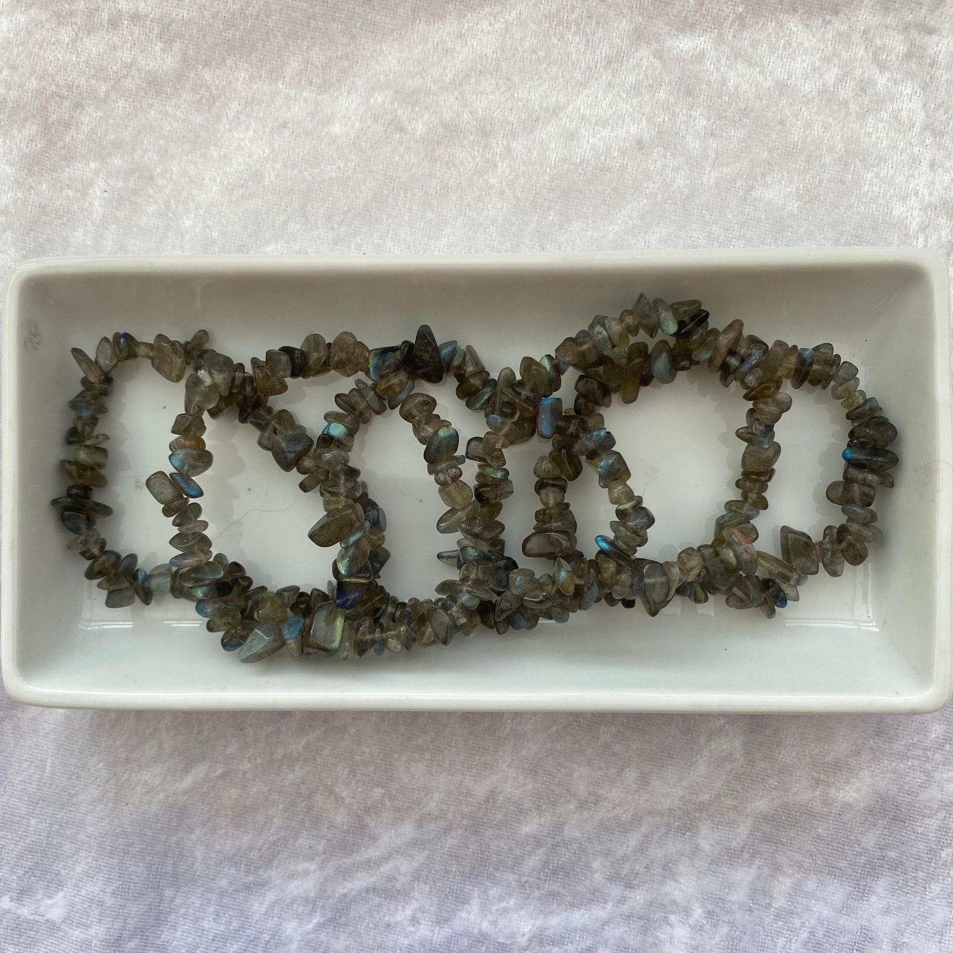 Some specimens of labradorite exhibit a schiller effect, which is a strong play of iridescent blue, green, red, orange, and yellow colors known as “labradorescence.”