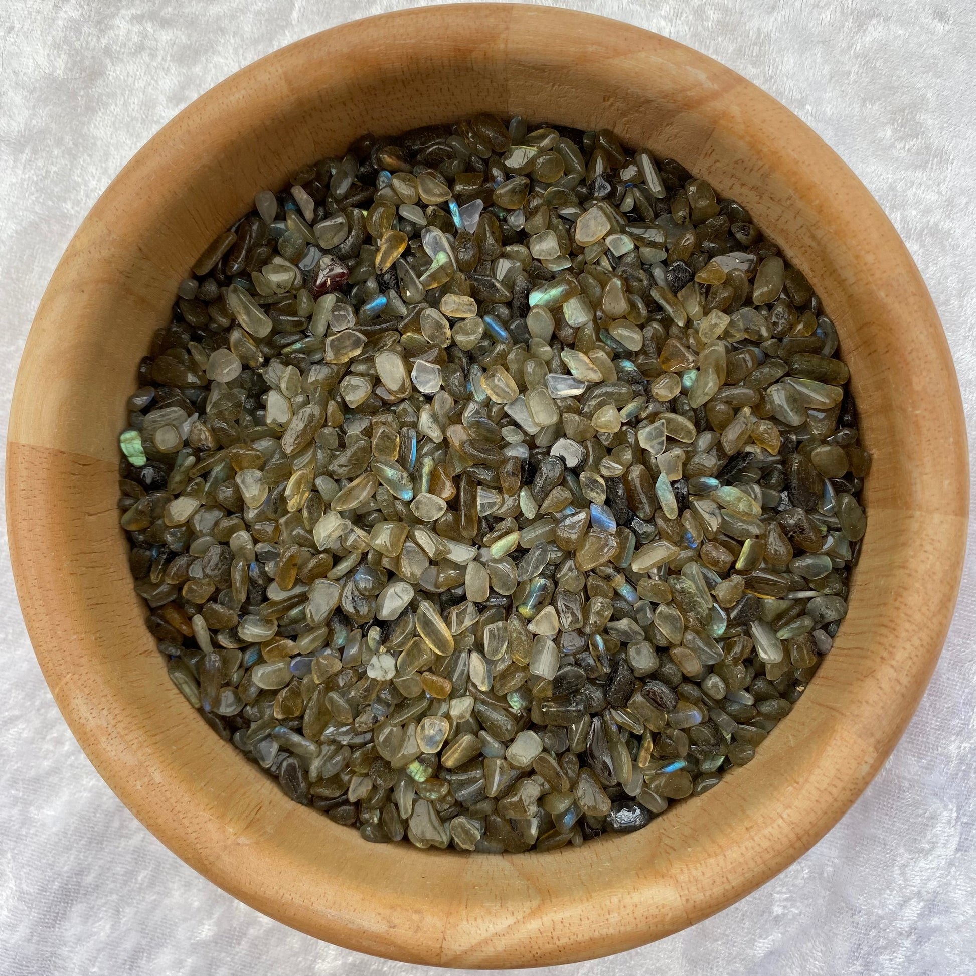Some specimens of labradorite exhibit a schiller effect, which is a strong play of iridescent blue, green, red, orange, and yellow colors known as "labradorescence."