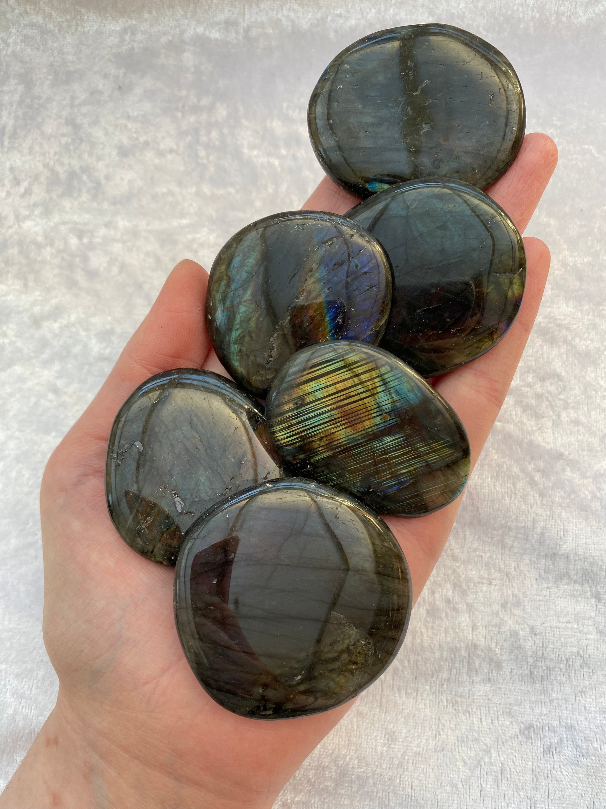 Some specimens of labradorite exhibit a schiller effect, which is a strong play of iridescent blue, green, red, orange, and yellow colors known as "labradorescence."