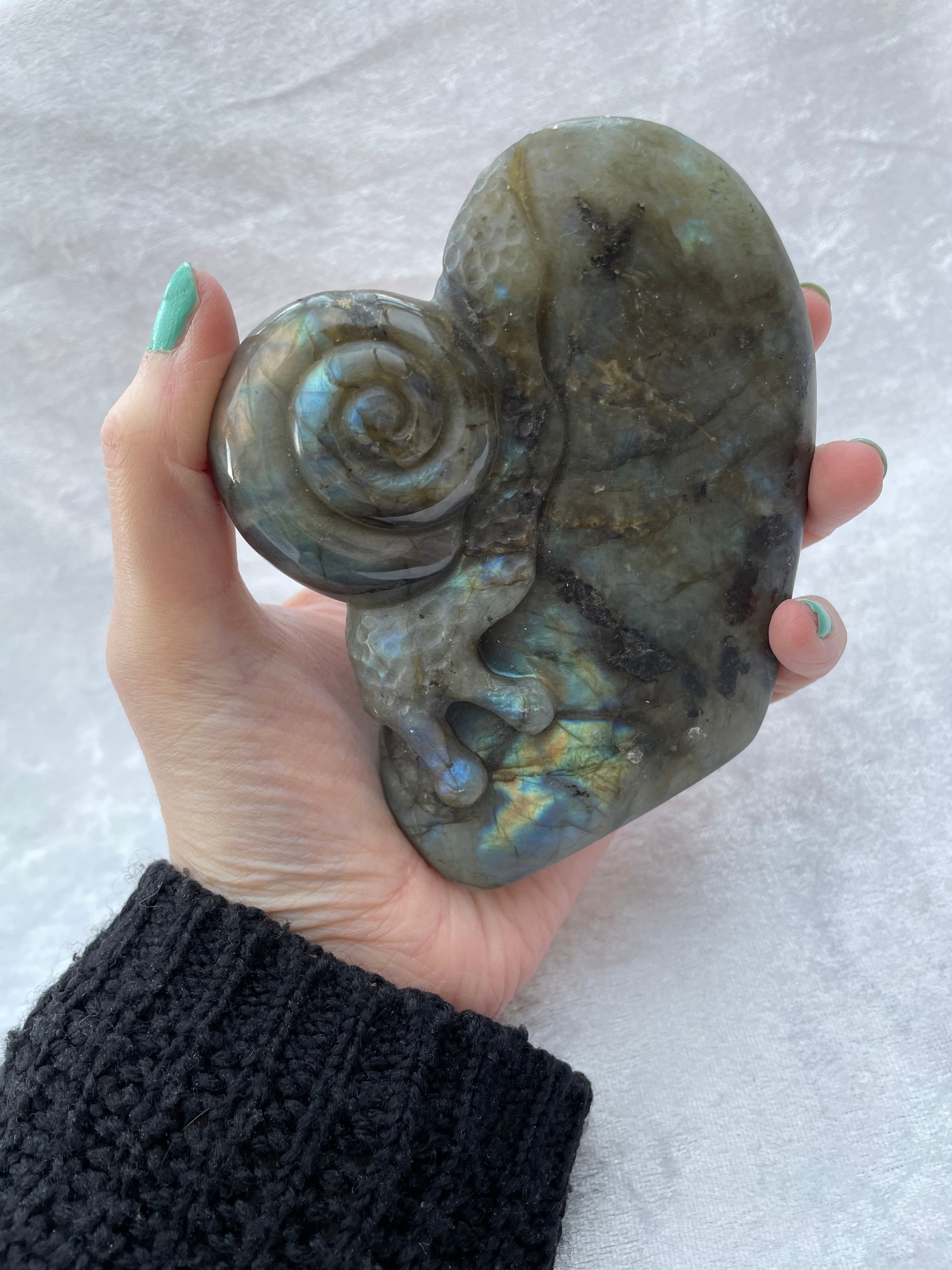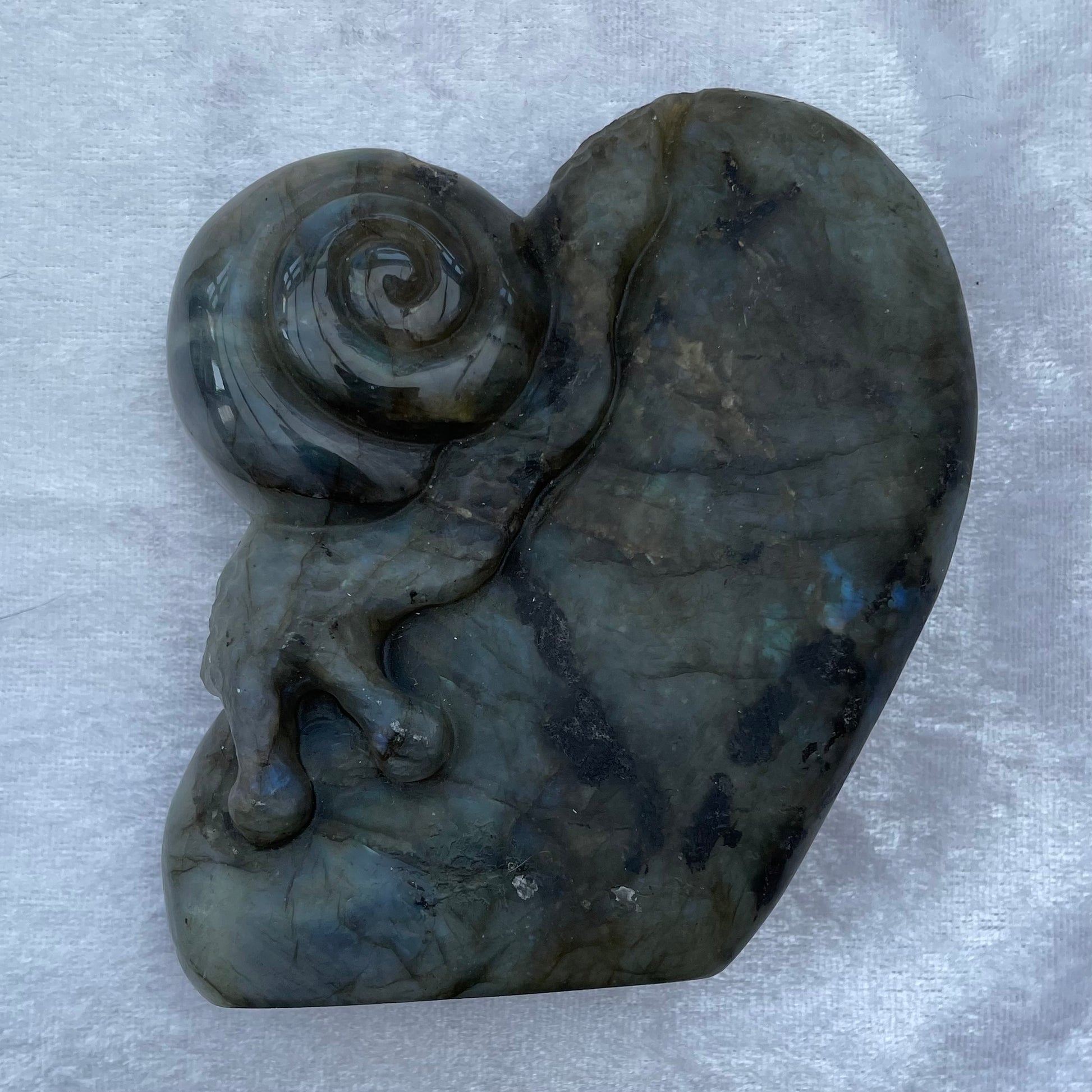 Some specimens of labradorite exhibit a schiller effect, which is a strong play of iridescent blue, green, red, orange, and yellow colours known as "labradorescence."