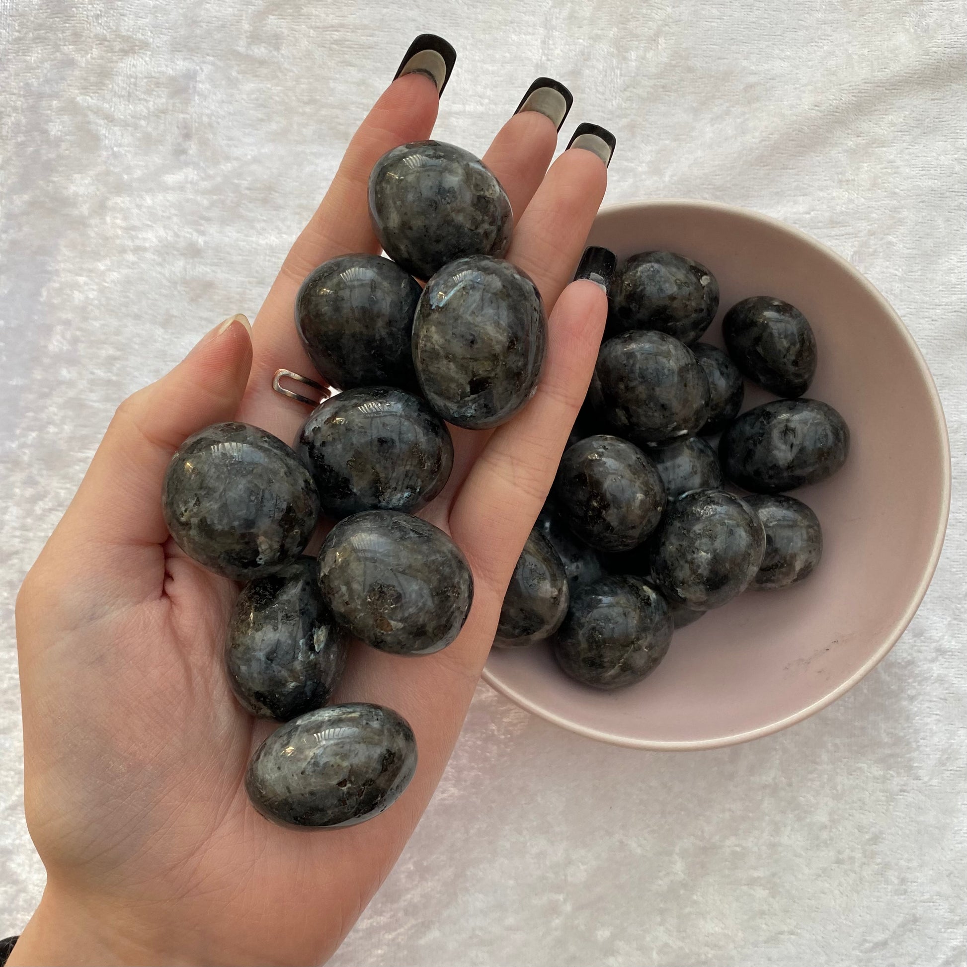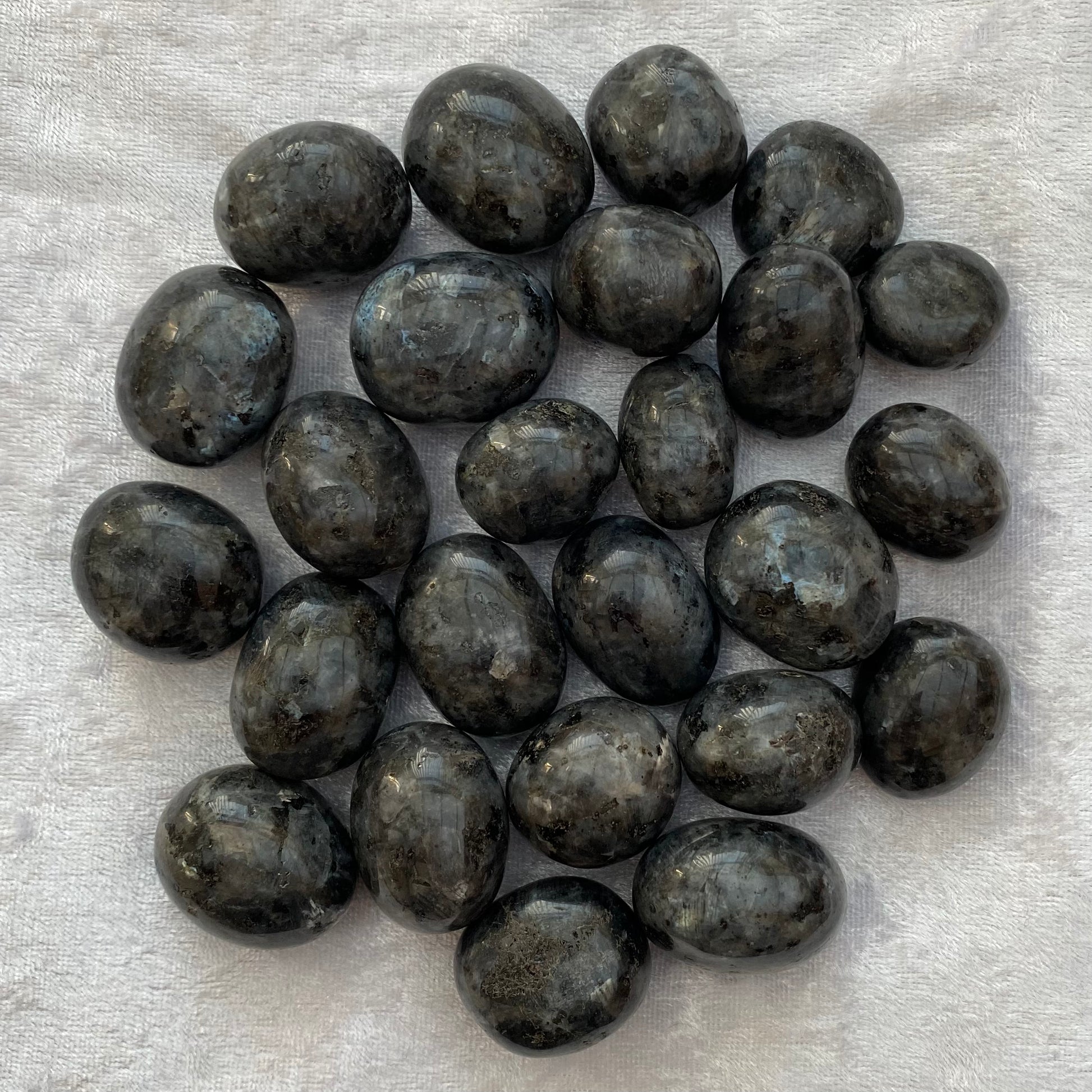 Larvikite is comprised nearly entirely of feldspar, and it is the special effect of the feldspar crystals that give it its blue color. This effect is called the Schiller effect.