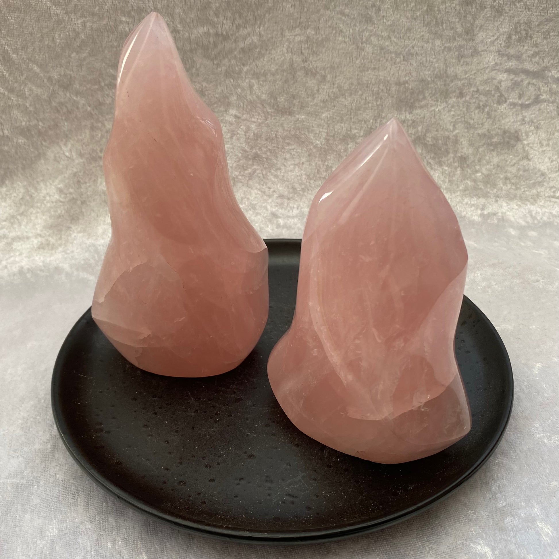The pink color of rose quartz is caused by inclusions of a pink variety of the mineral dumortierite. These inclusions are usually abundant enough to make the rose quartz translucent instead of transparent.