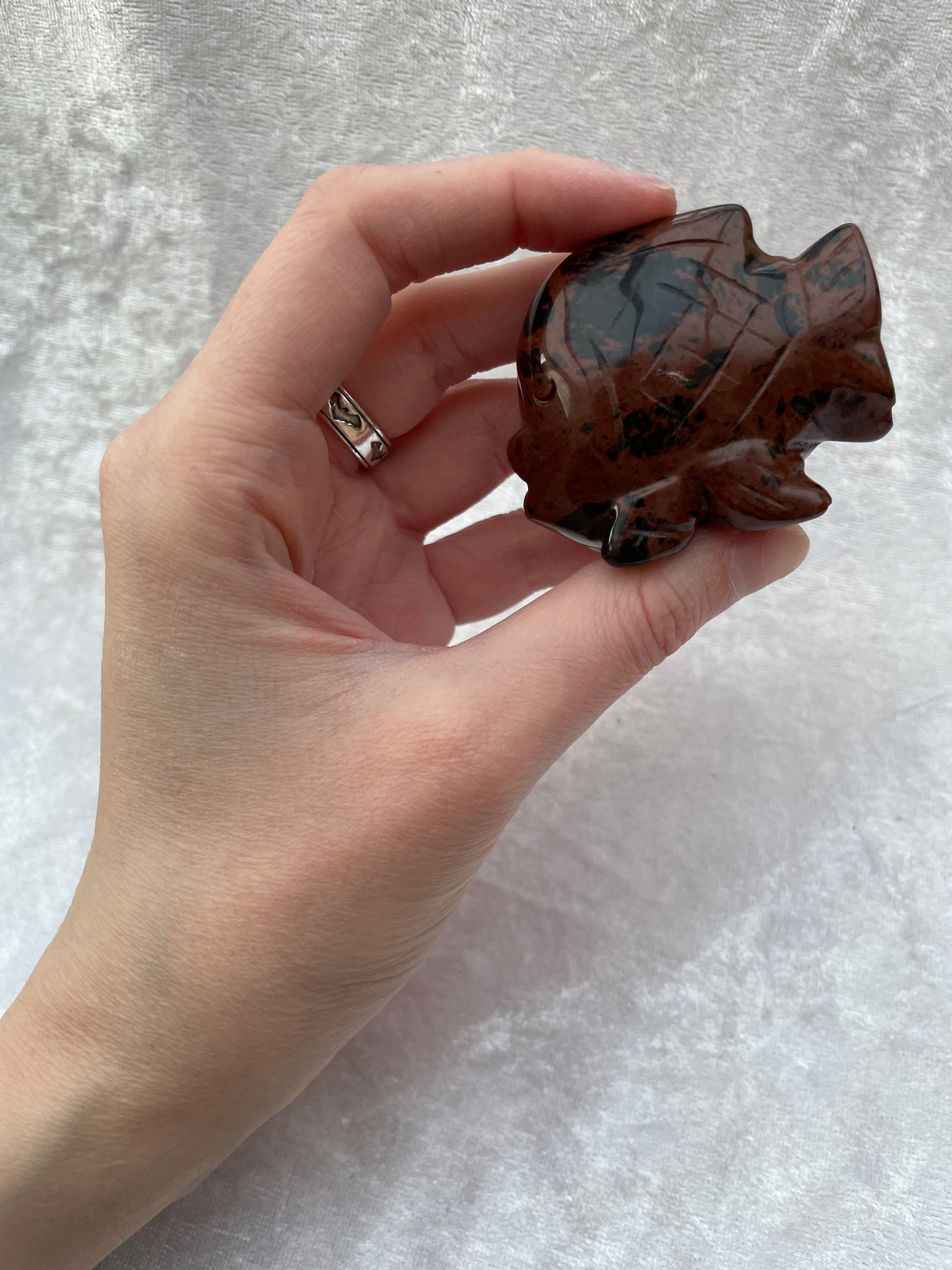 The brown colouration in Mahogany Obsidian is due to impurities of magnesium and iron during its formation, giving it brown streaks through out.