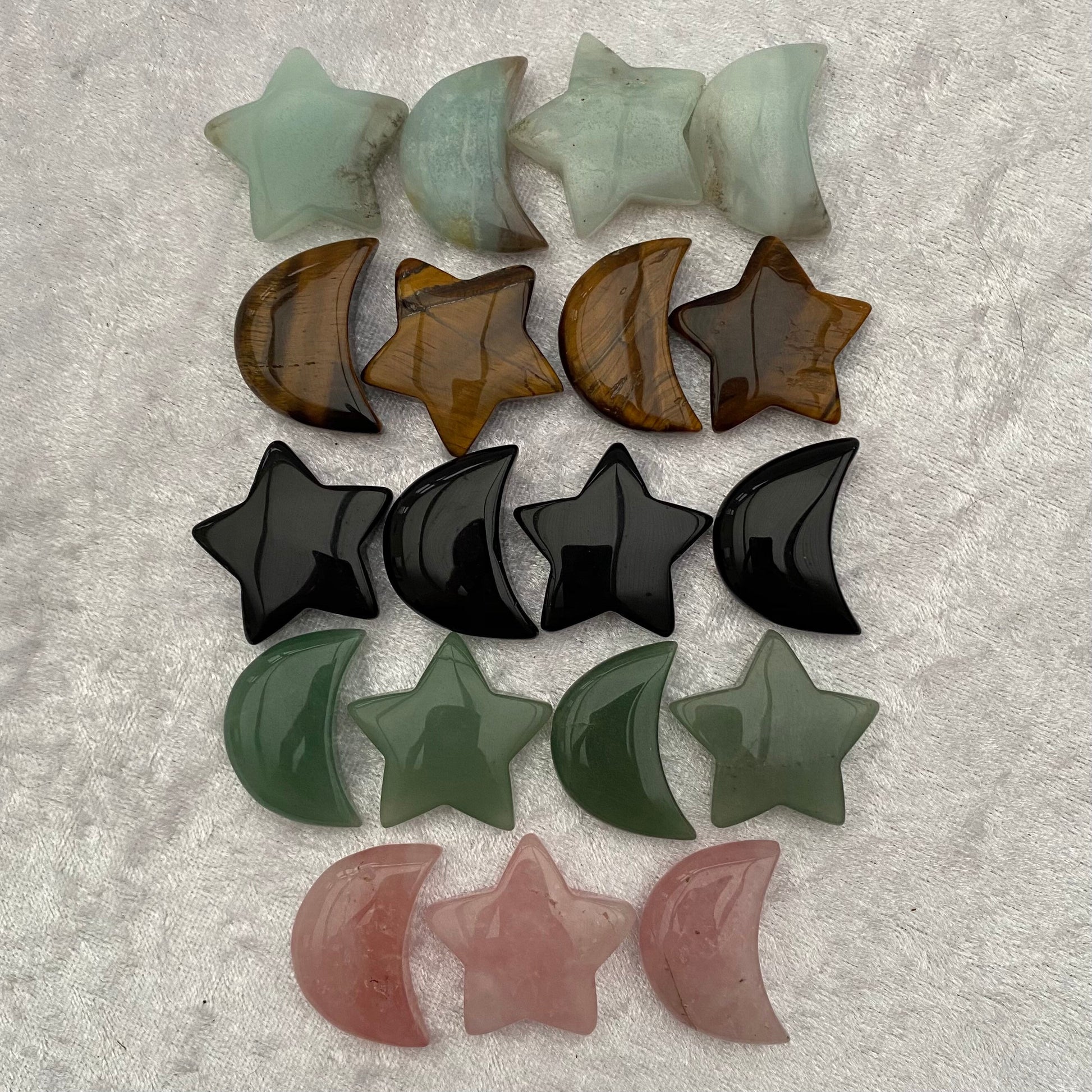 Amazonite stars Amazonite moons Tigers Eye stars Tigers Eye moons Black Obsidian stars Black Obsidian moons Green Aventurine stars Green Aventurine moons Rose Quartz stars Rose Quartz moons