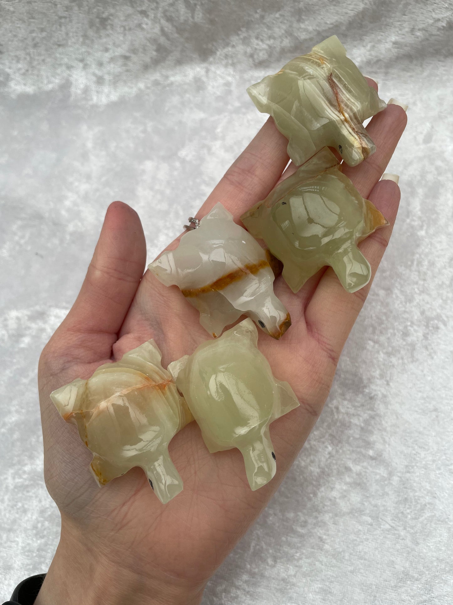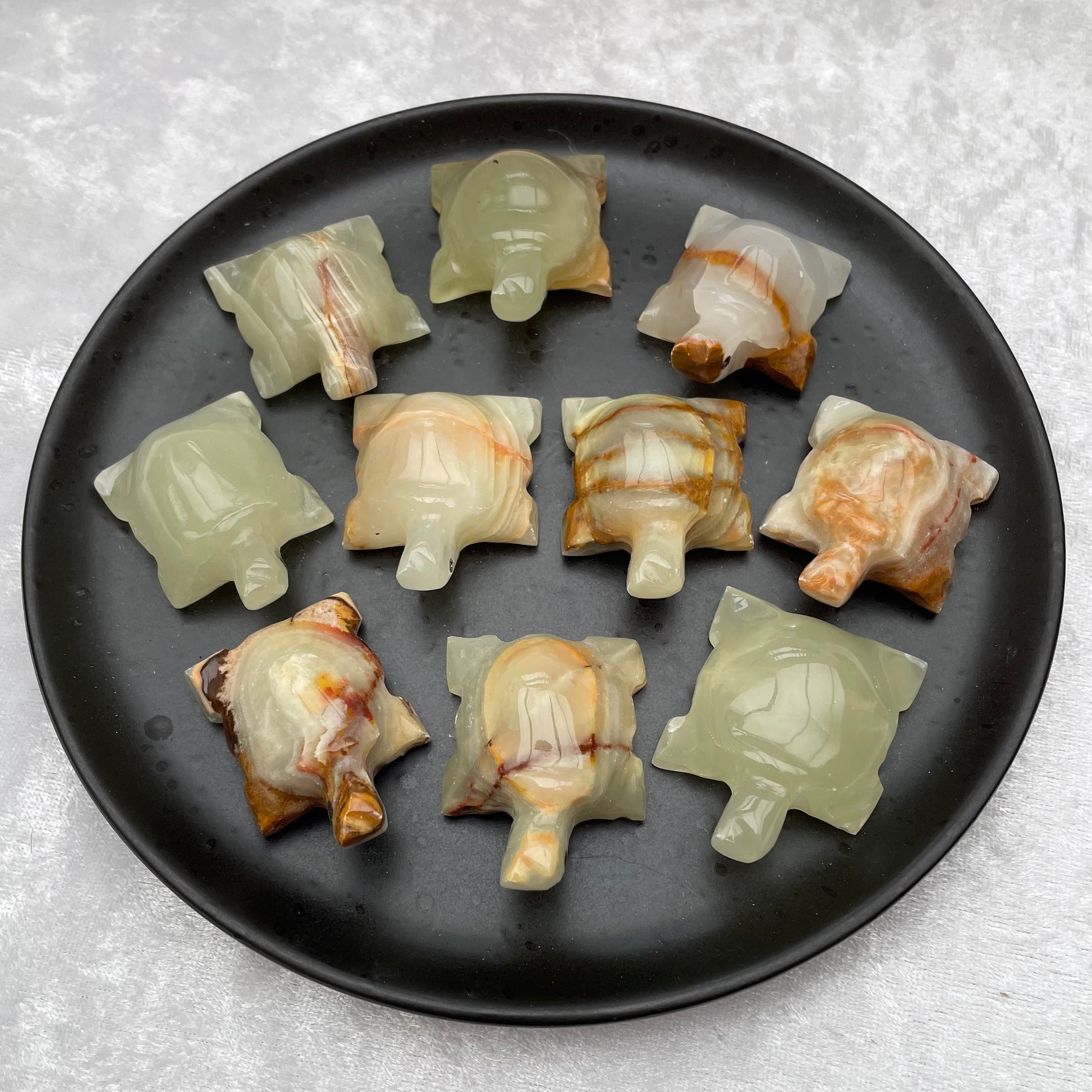 Onyx is a cryptocrystalline form of Quartz. The colours of its bands range from white to near every colour. Usually, versions of onyx available contain bands of colours of white, brown and tan.