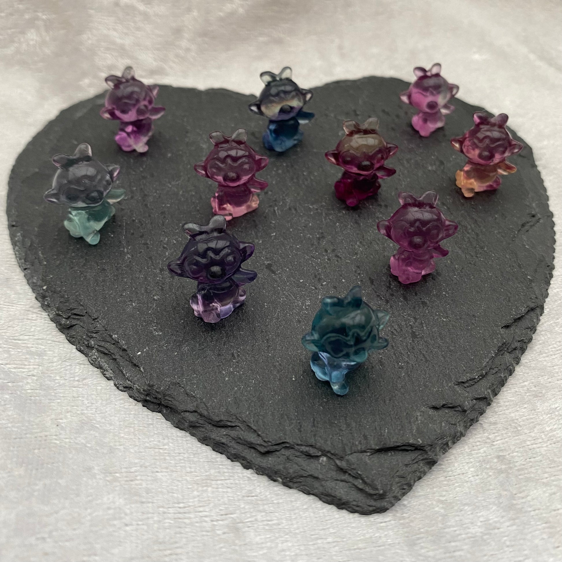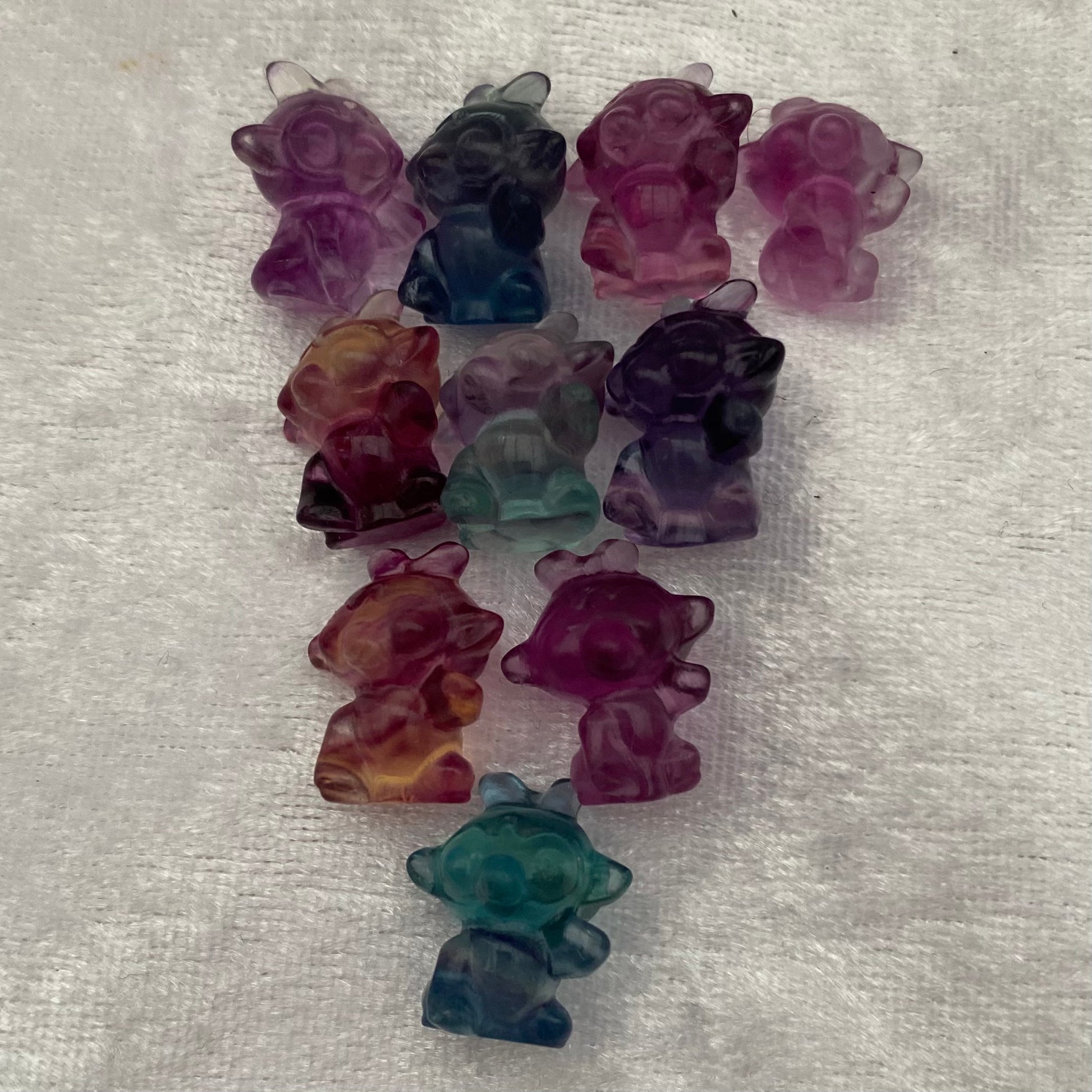 Mini Rainbow Fluorite Pokémon Grookey carvings