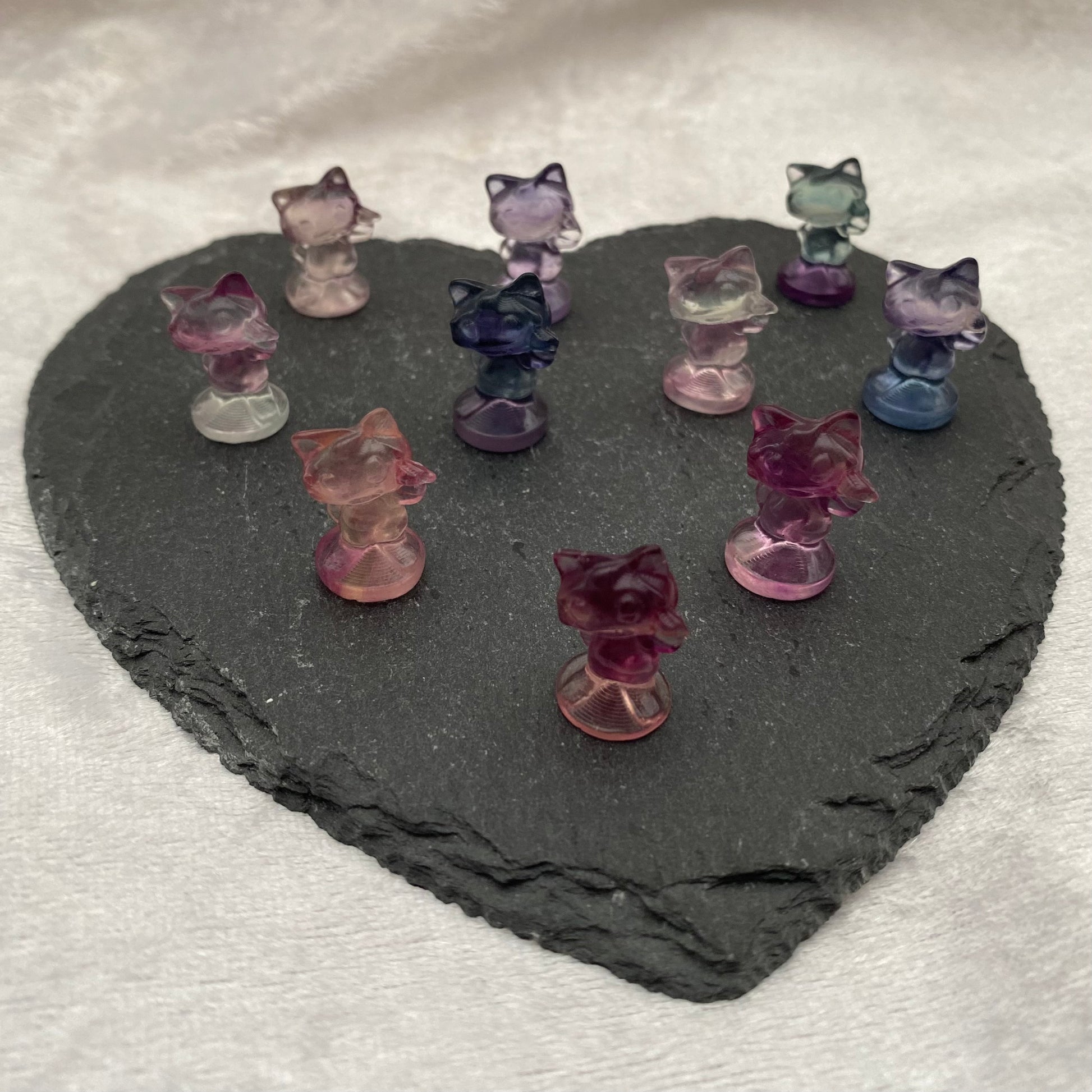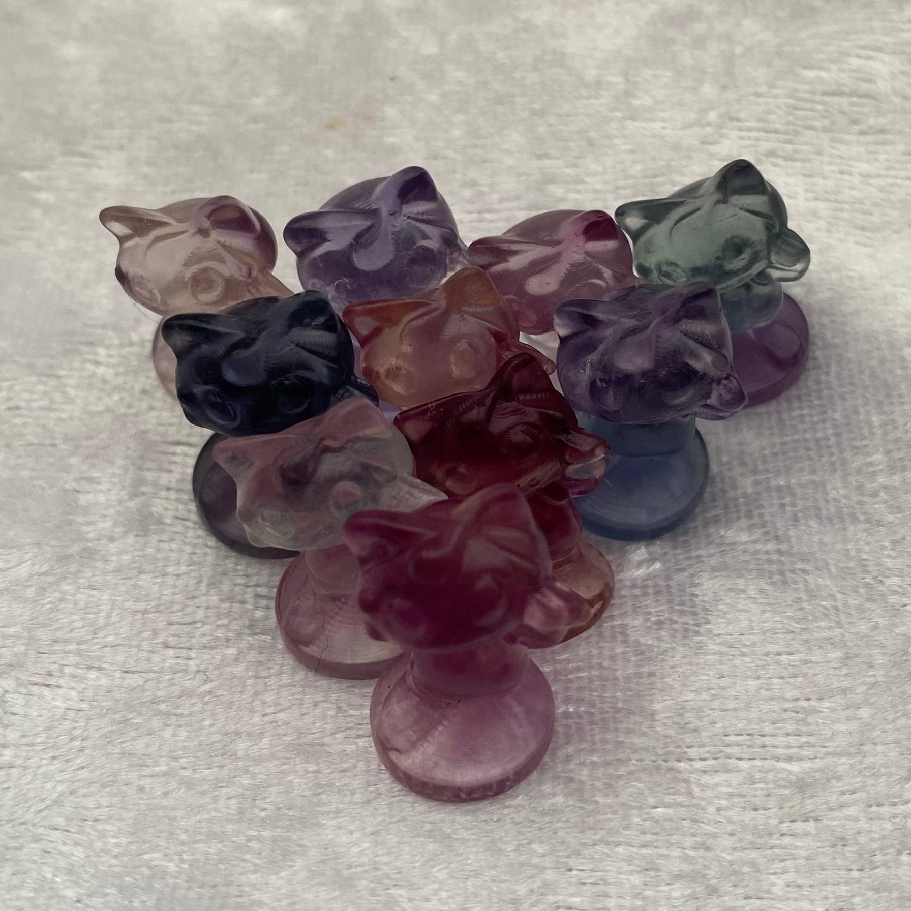 Mini Rainbow Fluorite Pokémon Meowth carvings