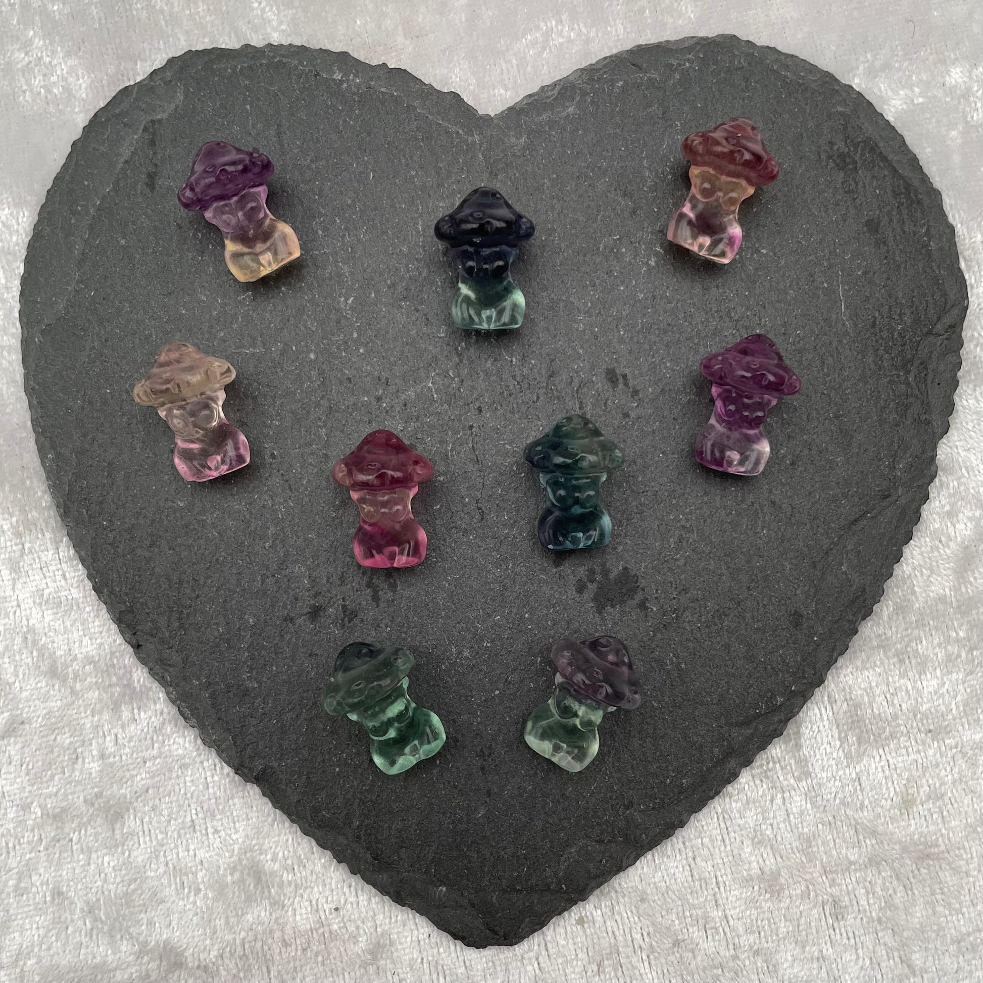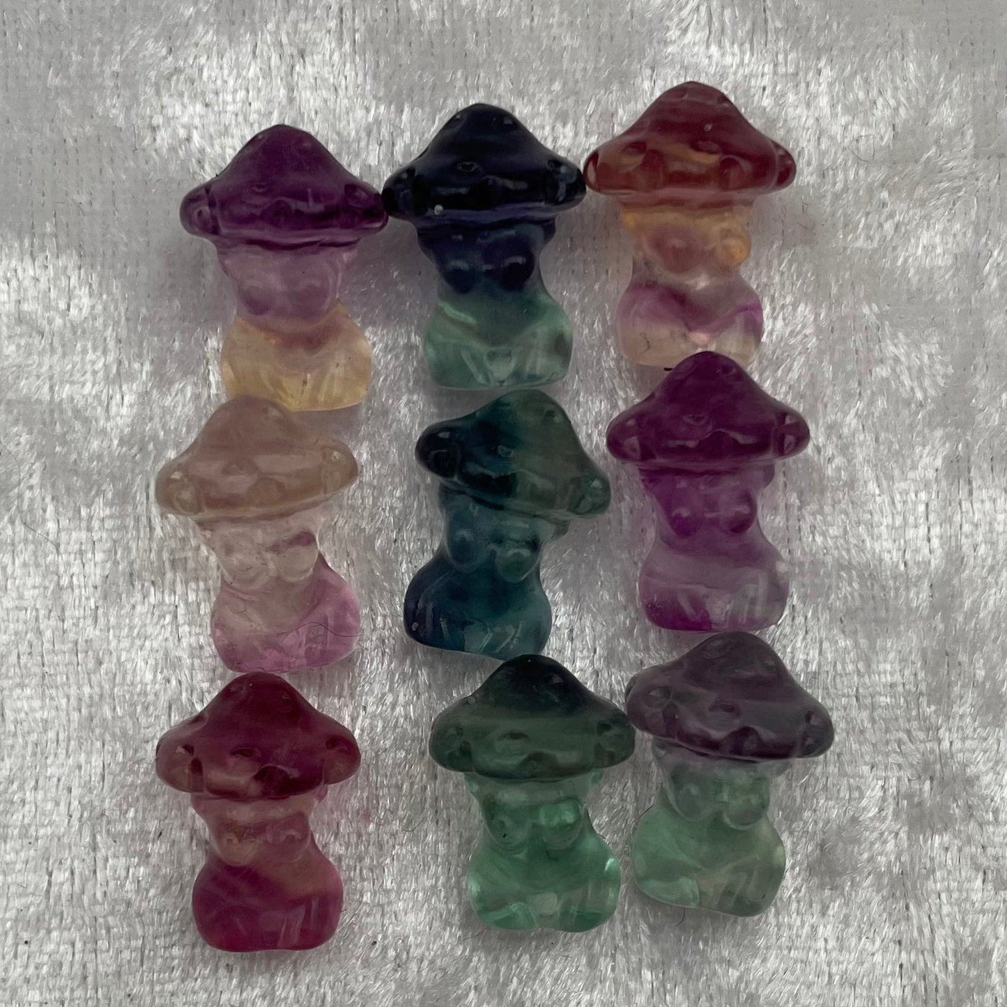 Mini Rainbow Fluorite Torsos With Mushroom Heads