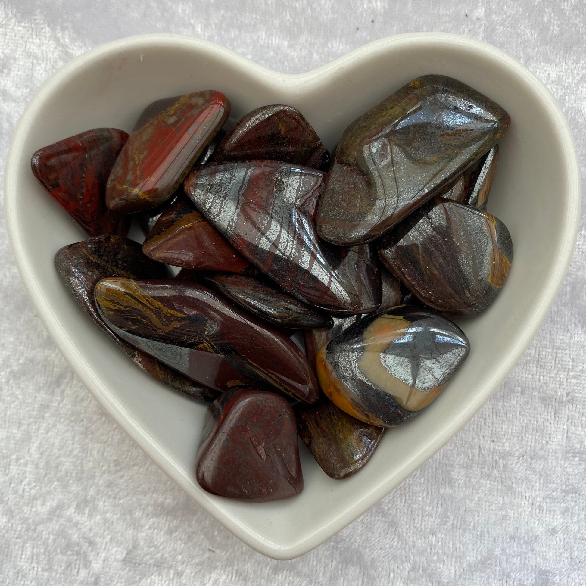 Tiger-Iron is a metamorphic rock which is formed by the tectonic activities of the earth. It’s a combination of silica quartz and iron. Tiger-Iron is a combination of Red Jasper, Hematite, and Tigers Eye.