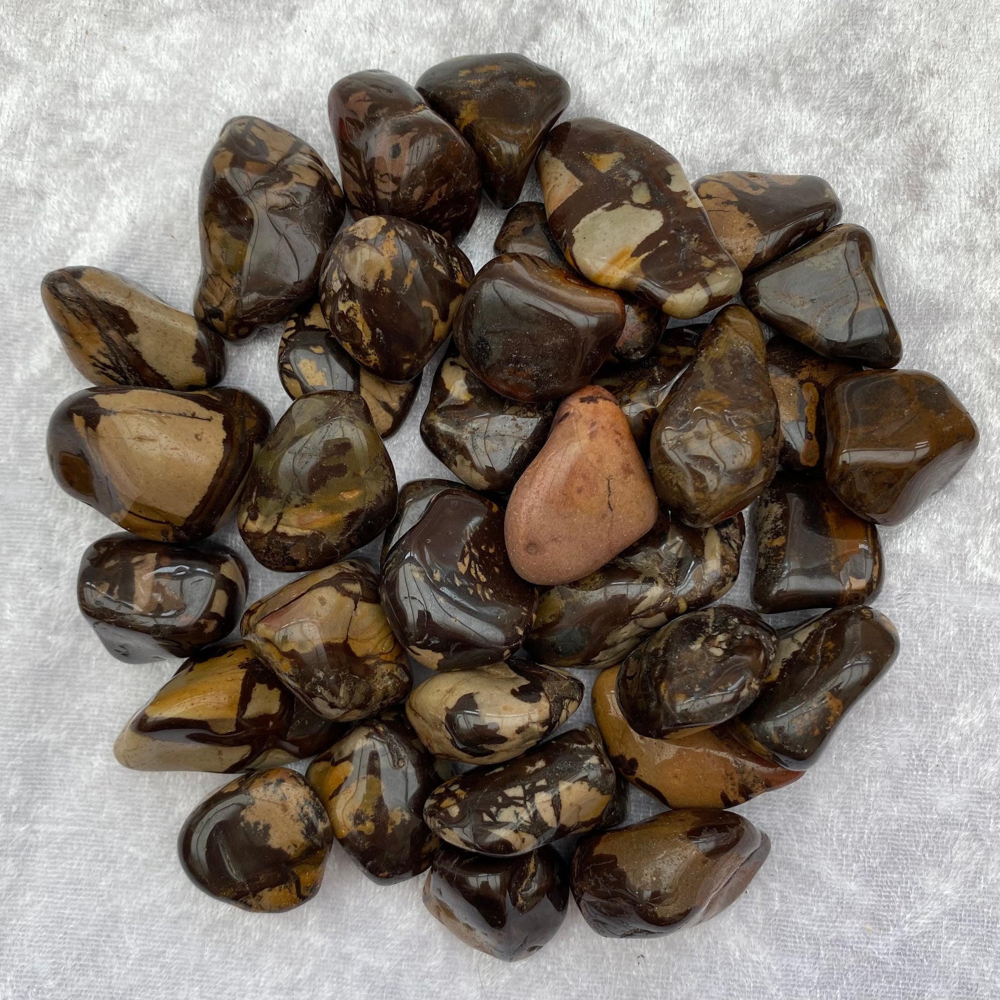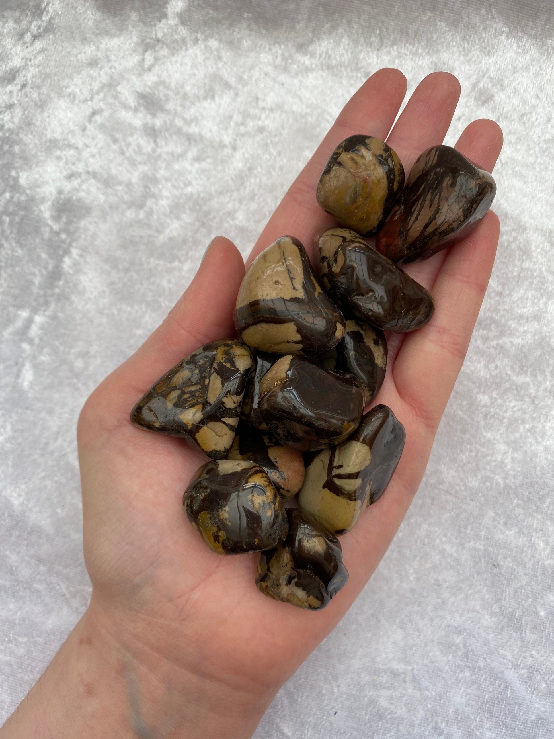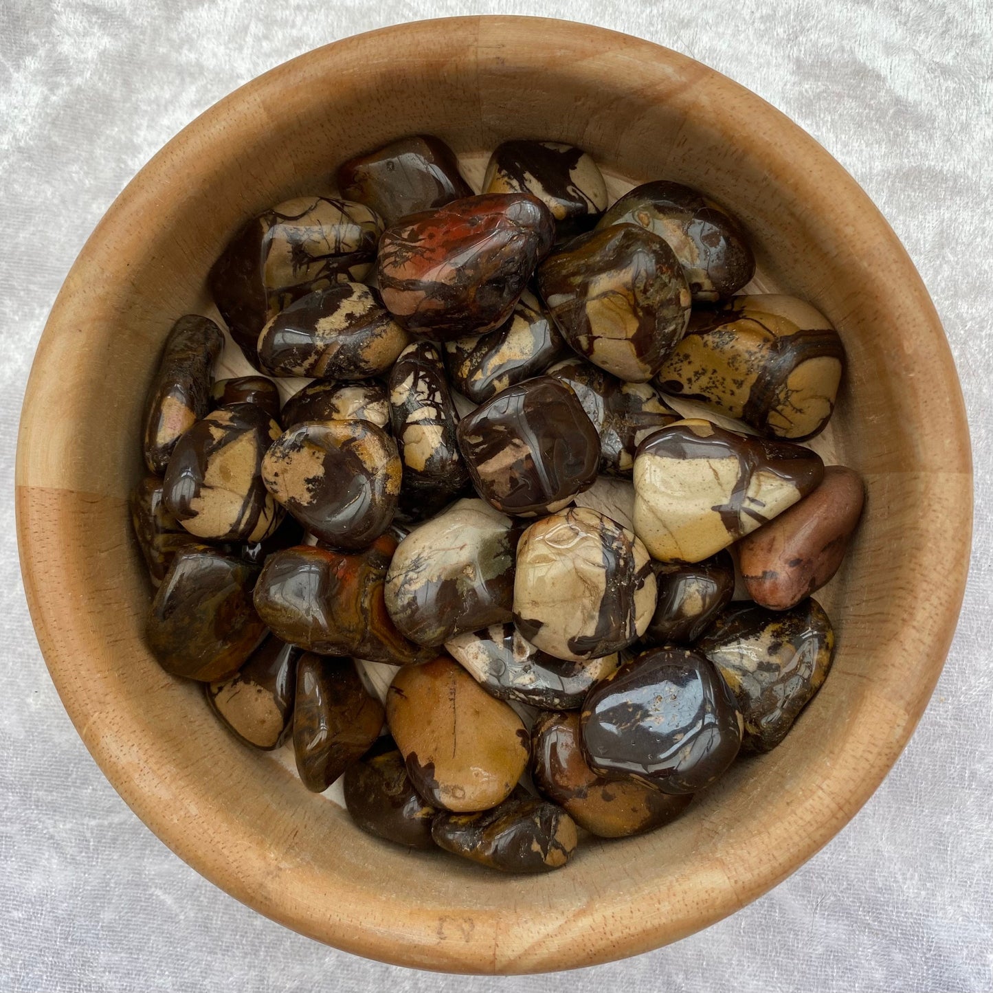 Jasper’s colours stem from the mineral content of the original sediments or ash. Patterns arise during the consolidation process forming flow and depositional patterns in the original silica rich sediment or volcanic ash.