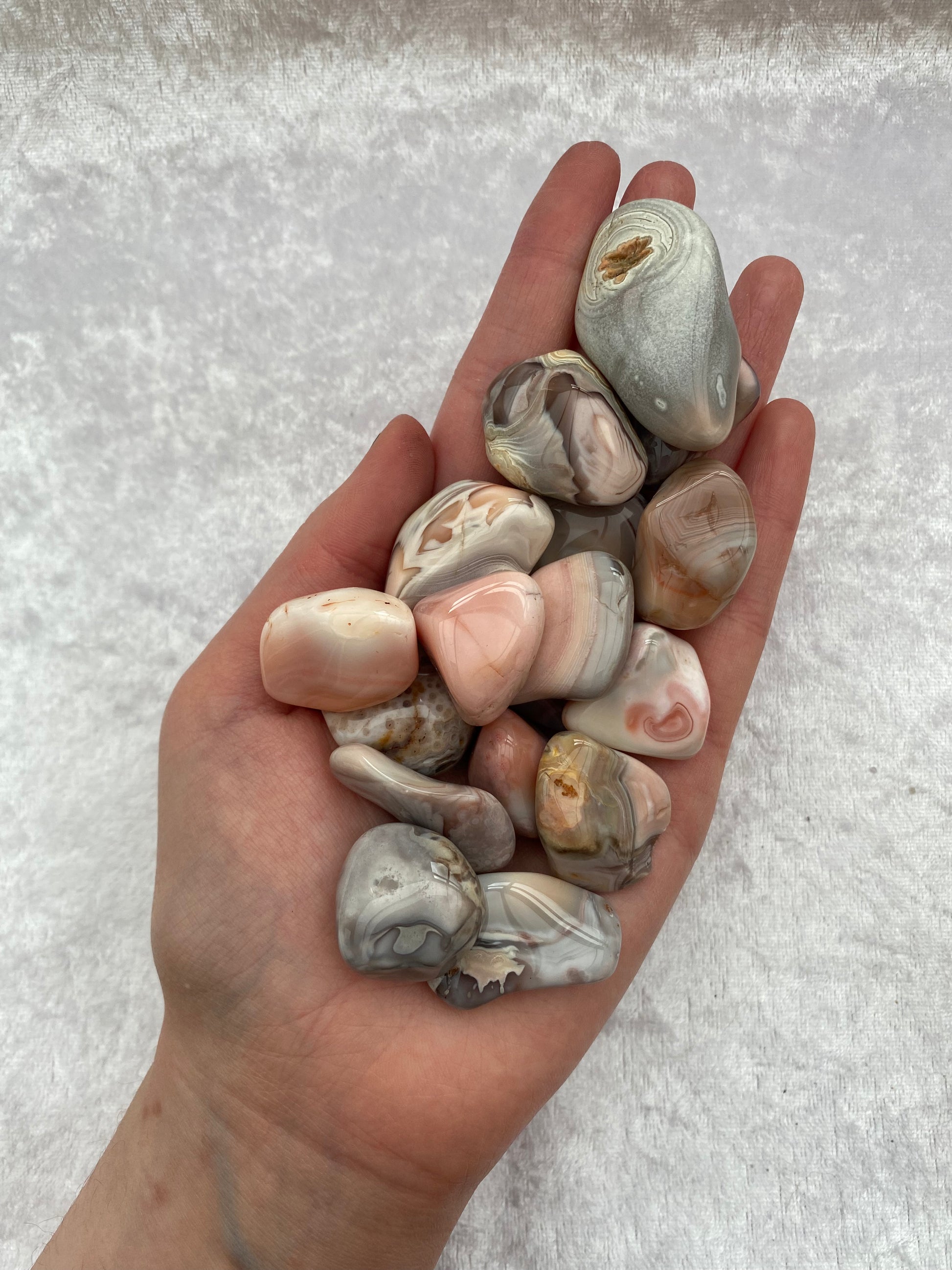Agate is made up primarily of chalcedony and quartz and can include a wide range of colours. Agates are usually formed in volcanic and metamorphic rocks.