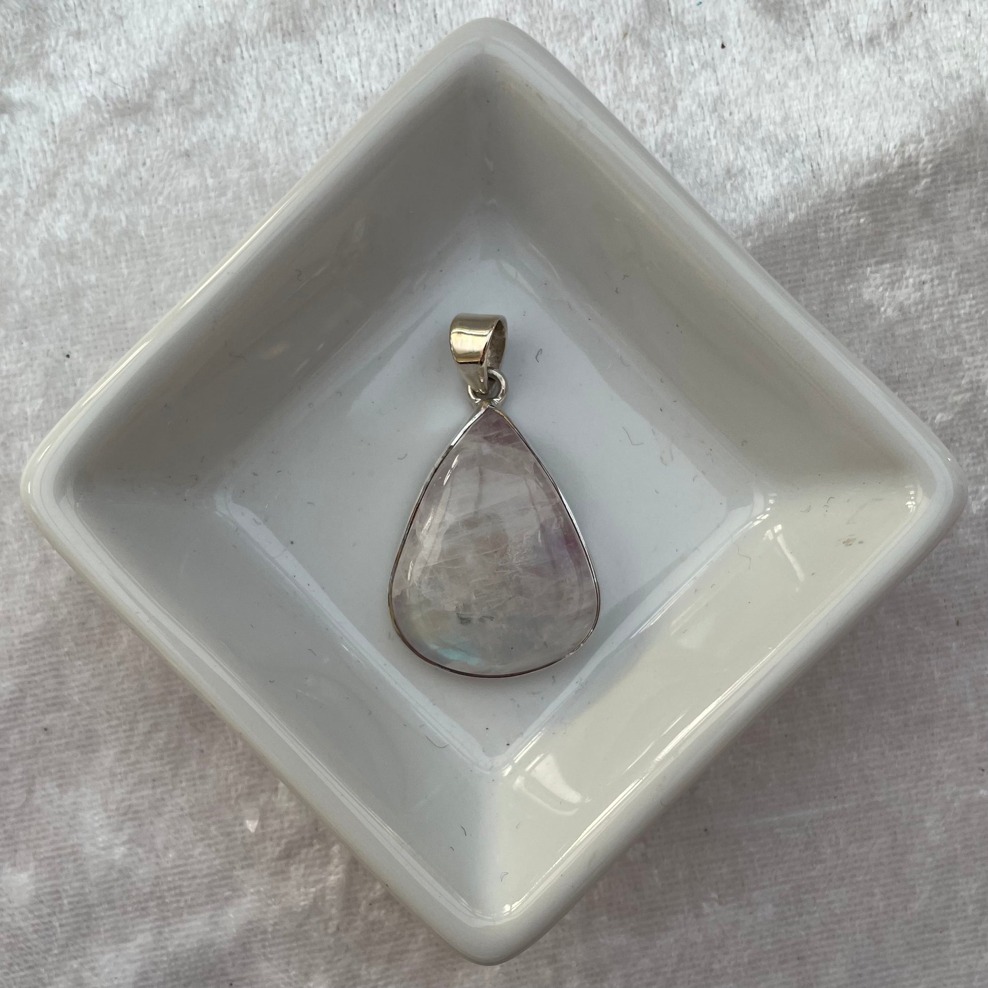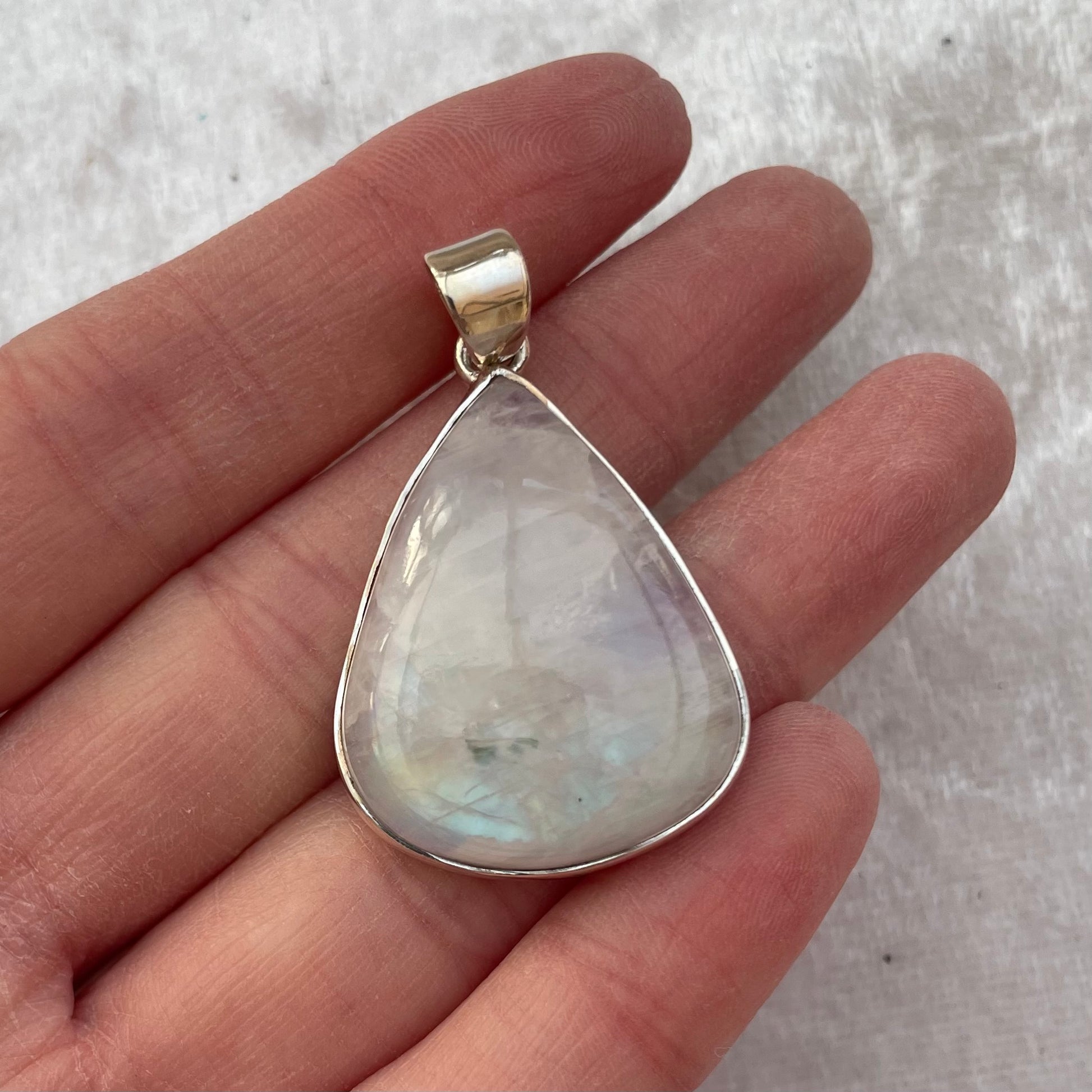 Moonstone is a variety of the feldspar-group mineral orthoclase. It’s composed of two feldspar minerals, orthoclase and albite. At first, the two minerals are intermingled. Then, as the newly formed mineral cools, the intergrown orthoclase and albite separate into stacked, alternating layers.