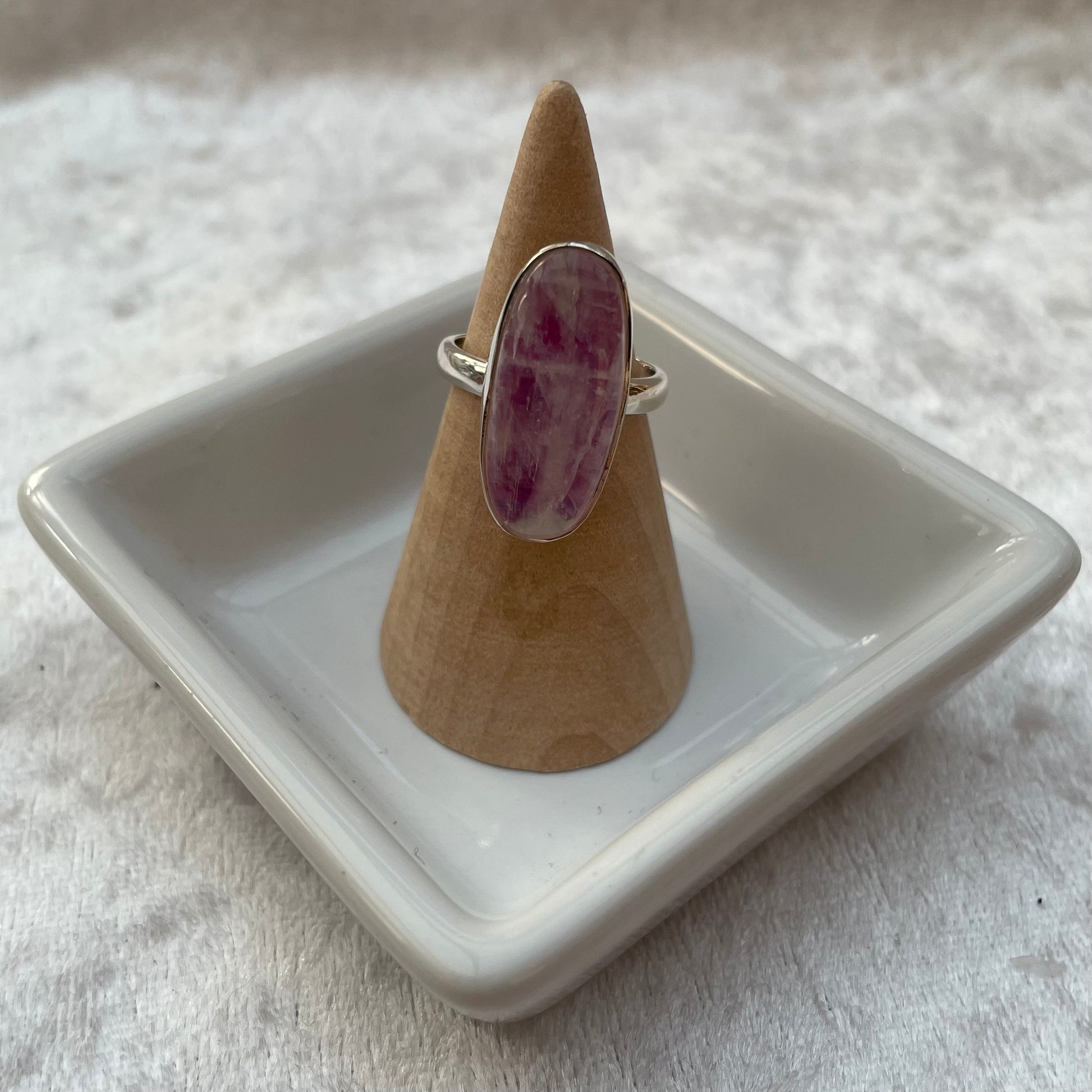 Moonstone is a variety of the feldspar-group mineral orthoclase. It’s composed of two feldspar minerals, orthoclase and albite. At first, the two minerals are intermingled. Then, as the newly formed mineral cools, the intergrown orthoclase and albite separate into stacked, alternating layers.