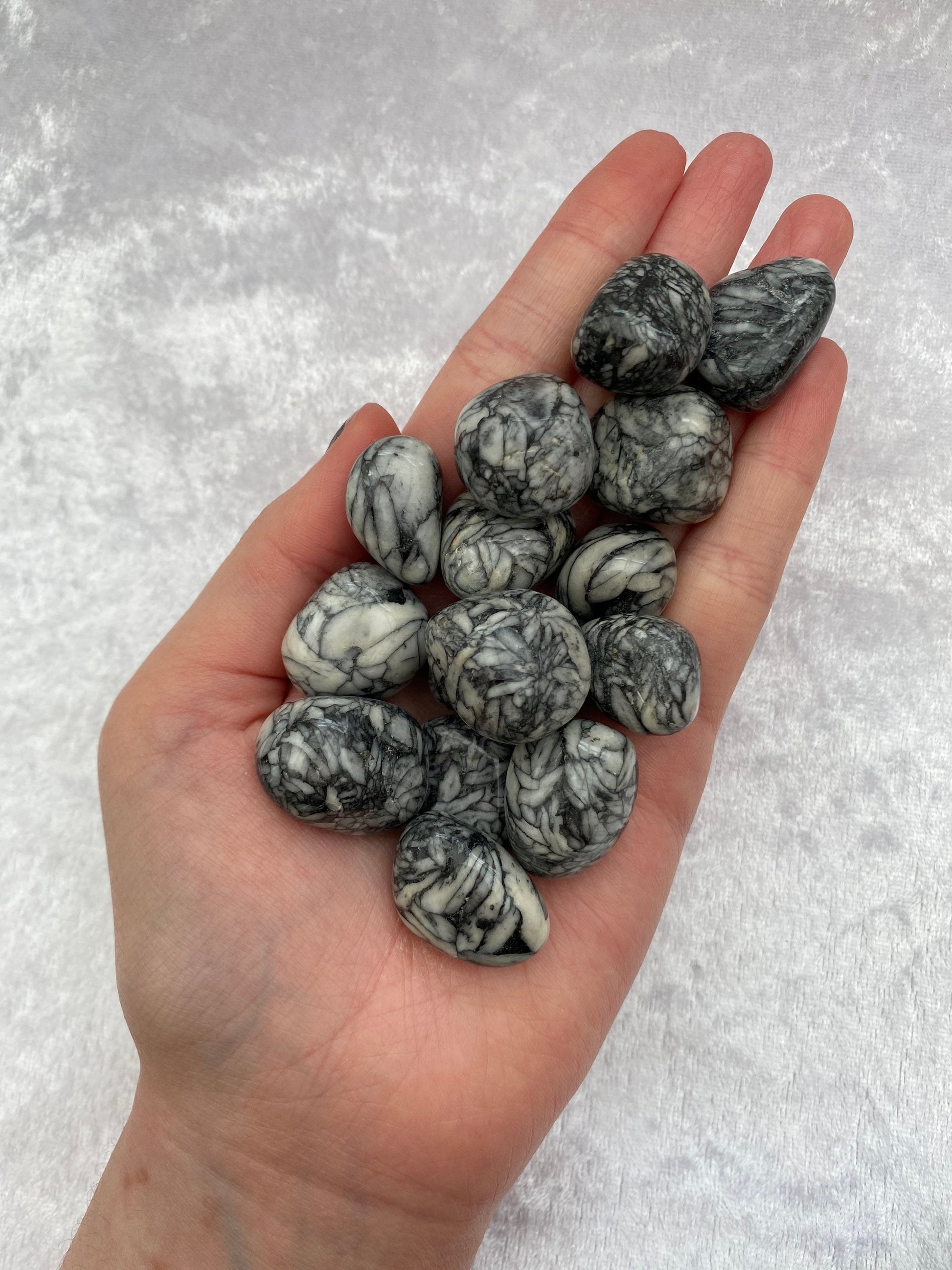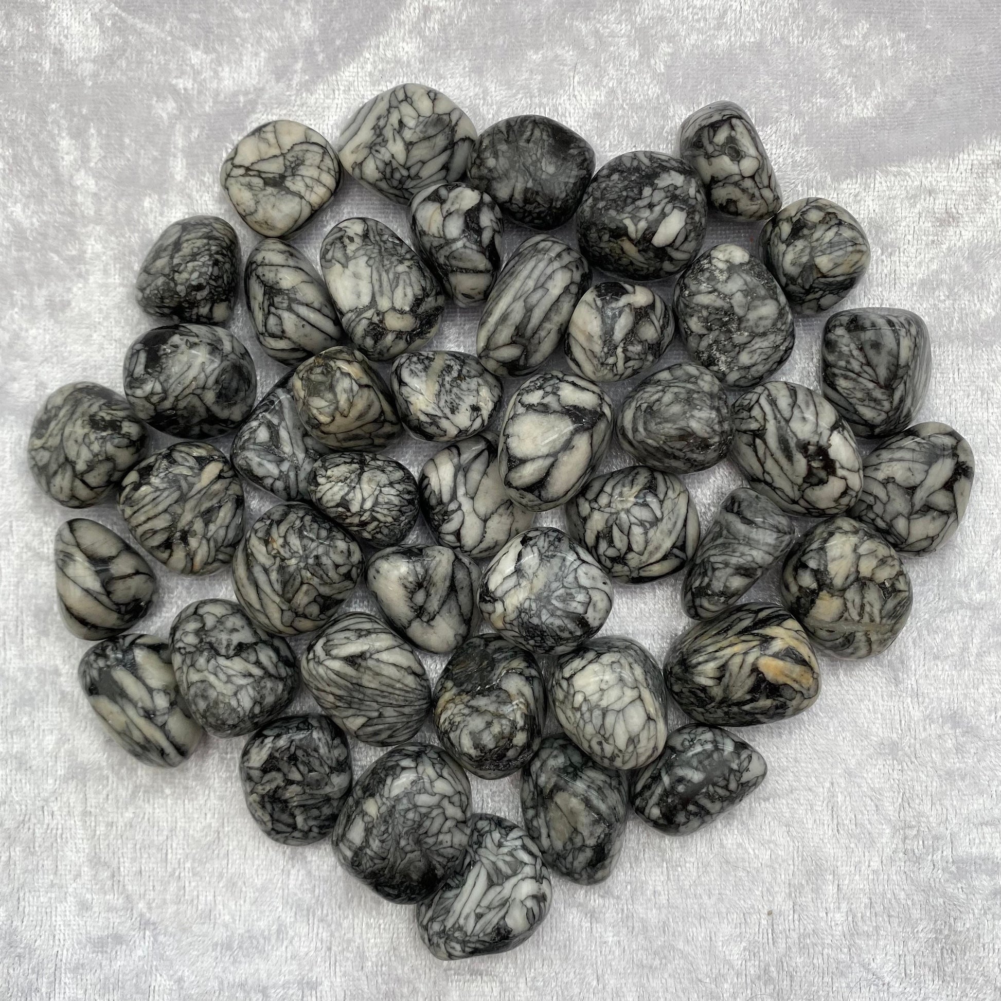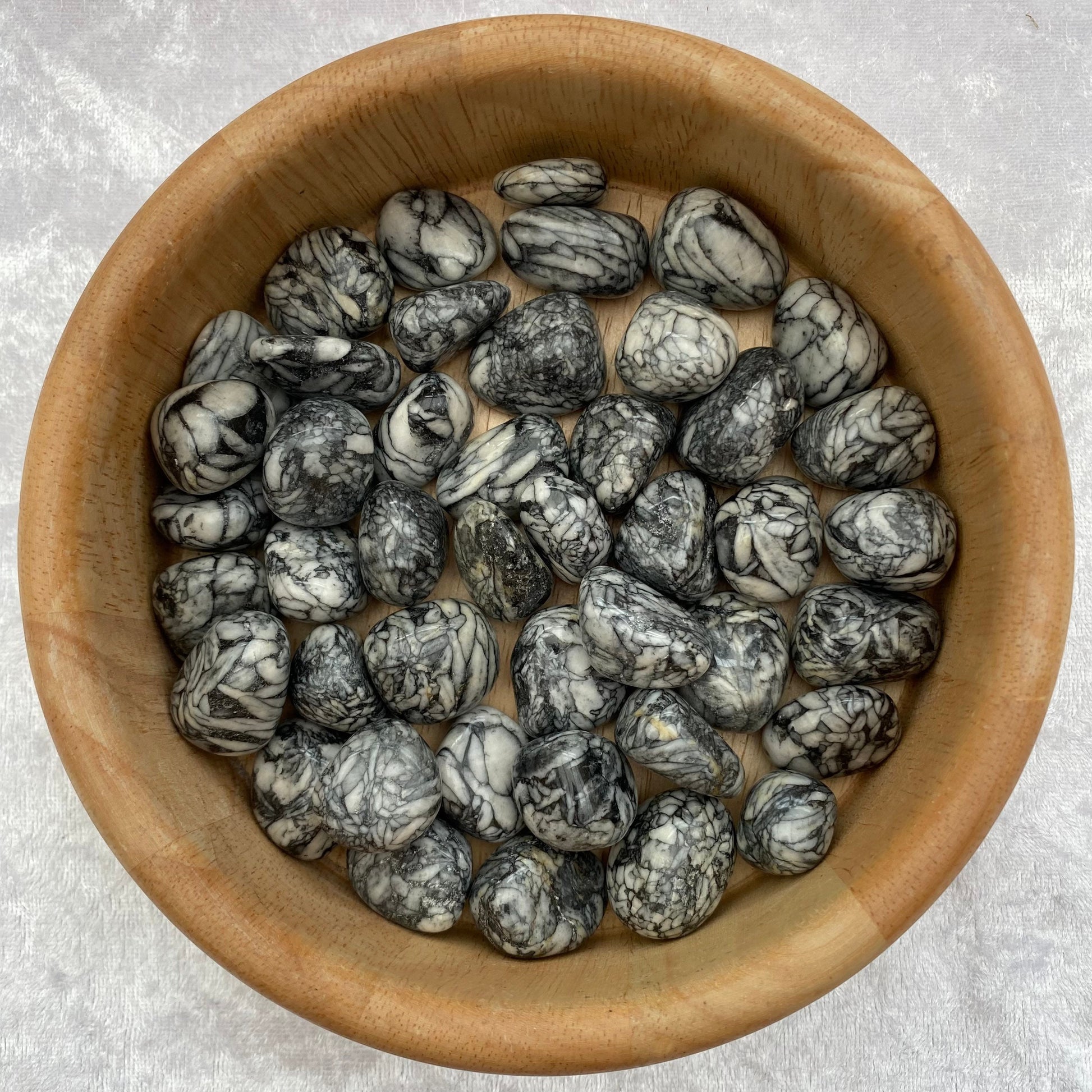 Pinolith is named for its magnesite inclusions resembling white pine cones or kernels and shows a matrix radiance ranging from gray to black. It comes from only one place in the world, located in a mountain range in Austria.