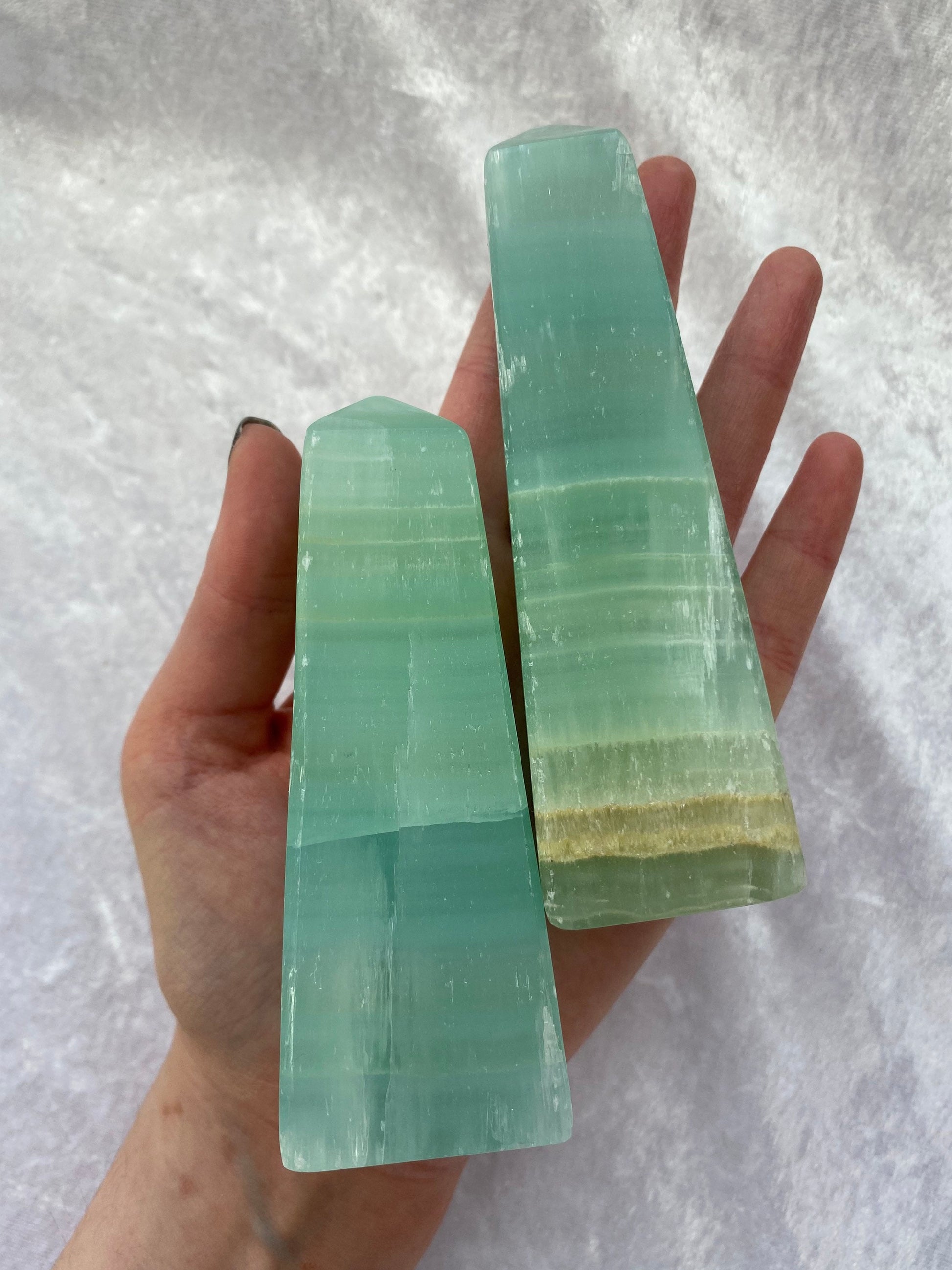 Pistachio Calcite obelisks