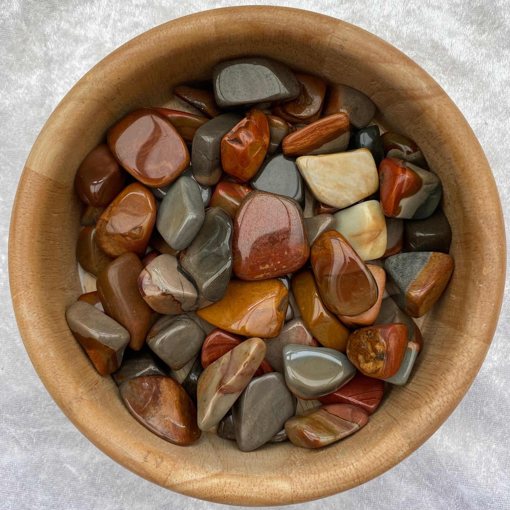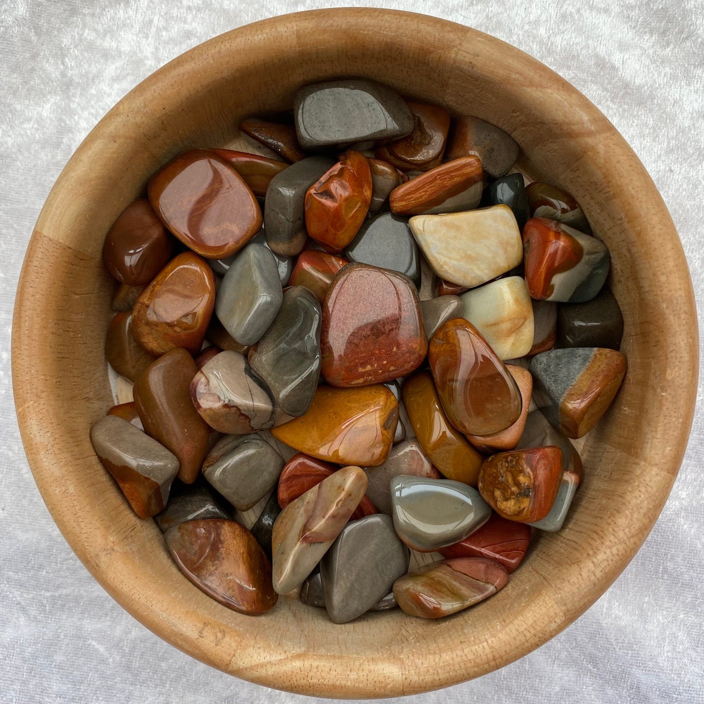 Jasper’s colours stem from the mineral content of the original sediments or ash. Patterns arise during the consolidation process forming flow and depositional patterns in the original silica rich sediment or volcanic ash.