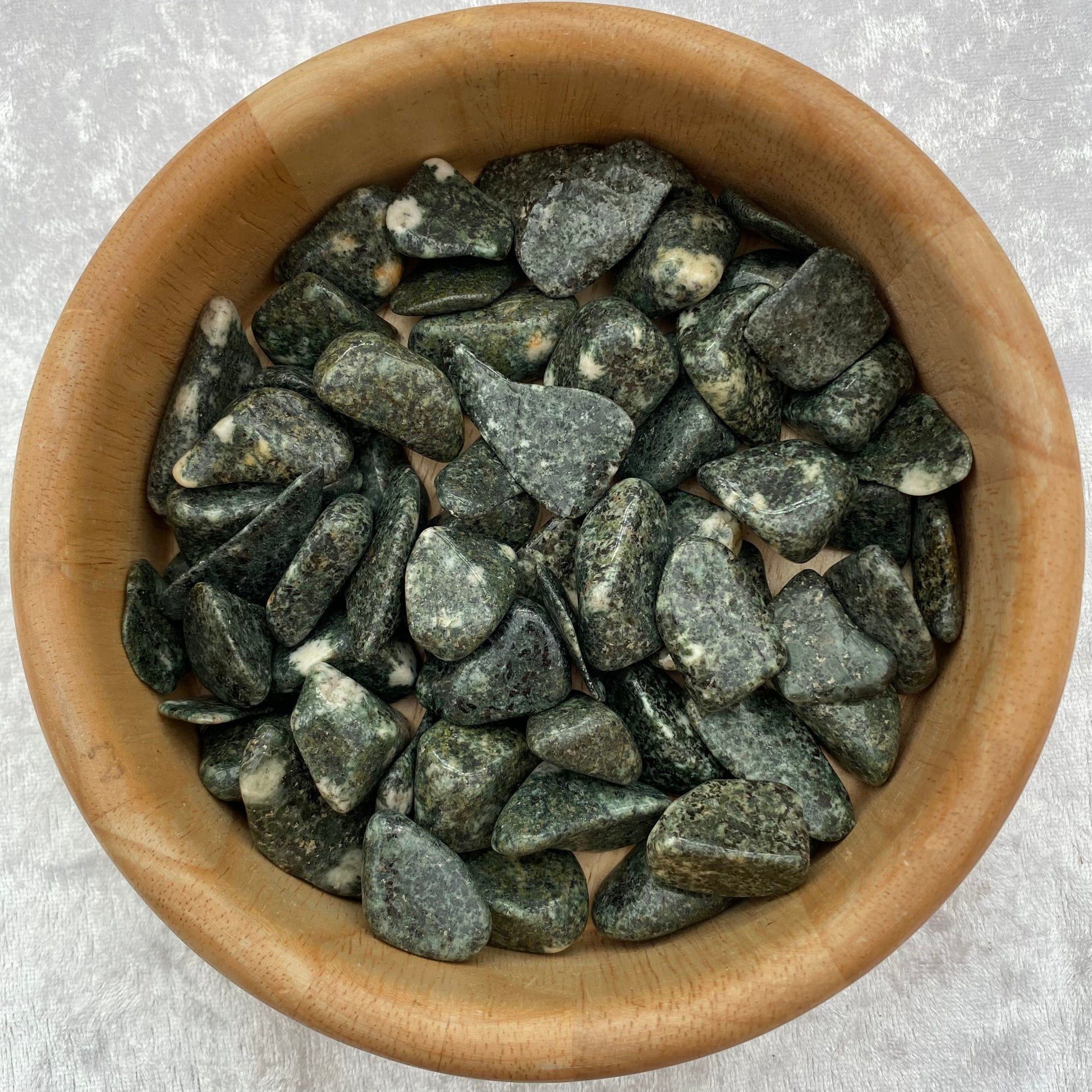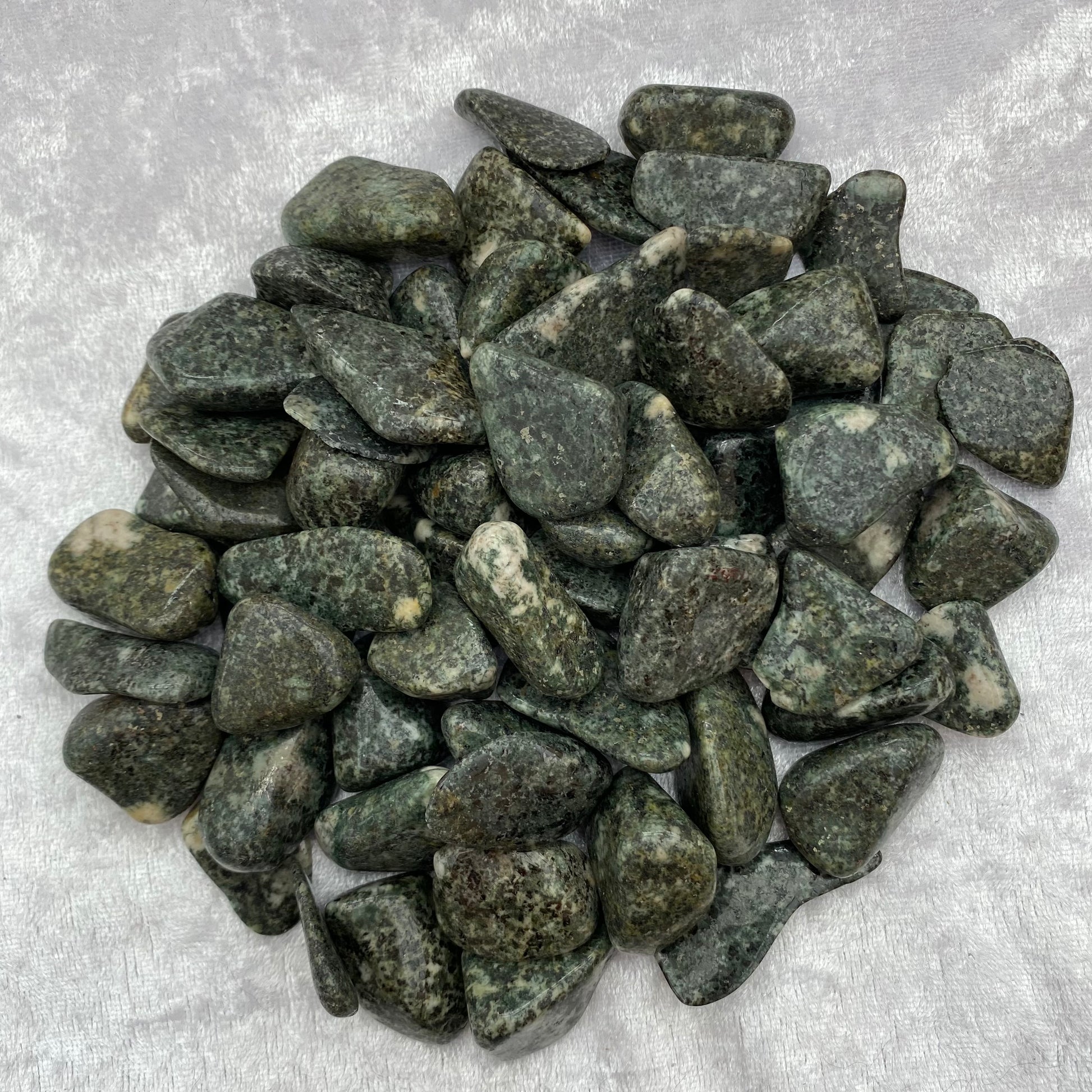 Preseli Bluestone is a form of Spotted Dolerite. It is an igneous rock containing white spots of the mineral Plagioclase Feldspar. They originate from the Preseli Hills of Wales and are what Stonehenge is made out of.