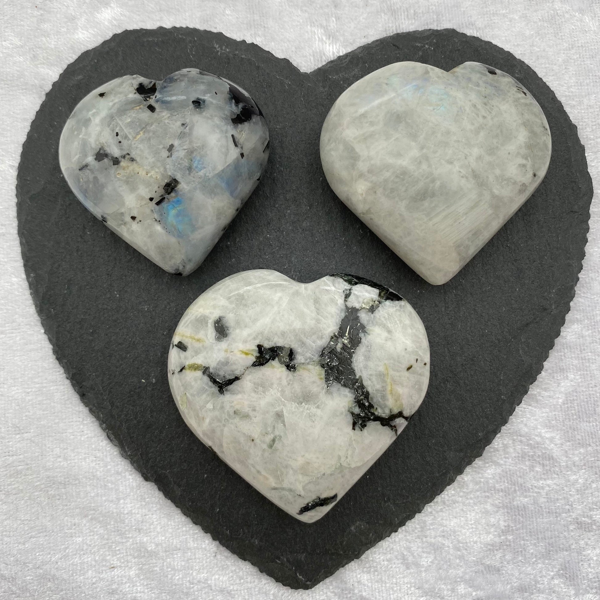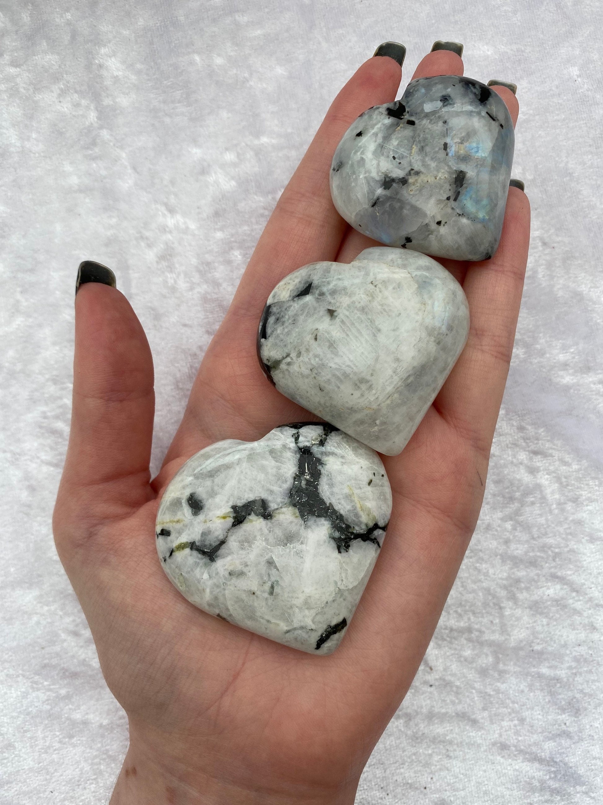 Moonstone is a variety of the feldspar-group mineral orthoclase. It’s composed of two feldspar minerals, orthoclase and albite. At first, the two minerals are intermingled. Then, as the newly formed mineral cools, the intergrown orthoclase and albite separate into stacked, alternating layers.