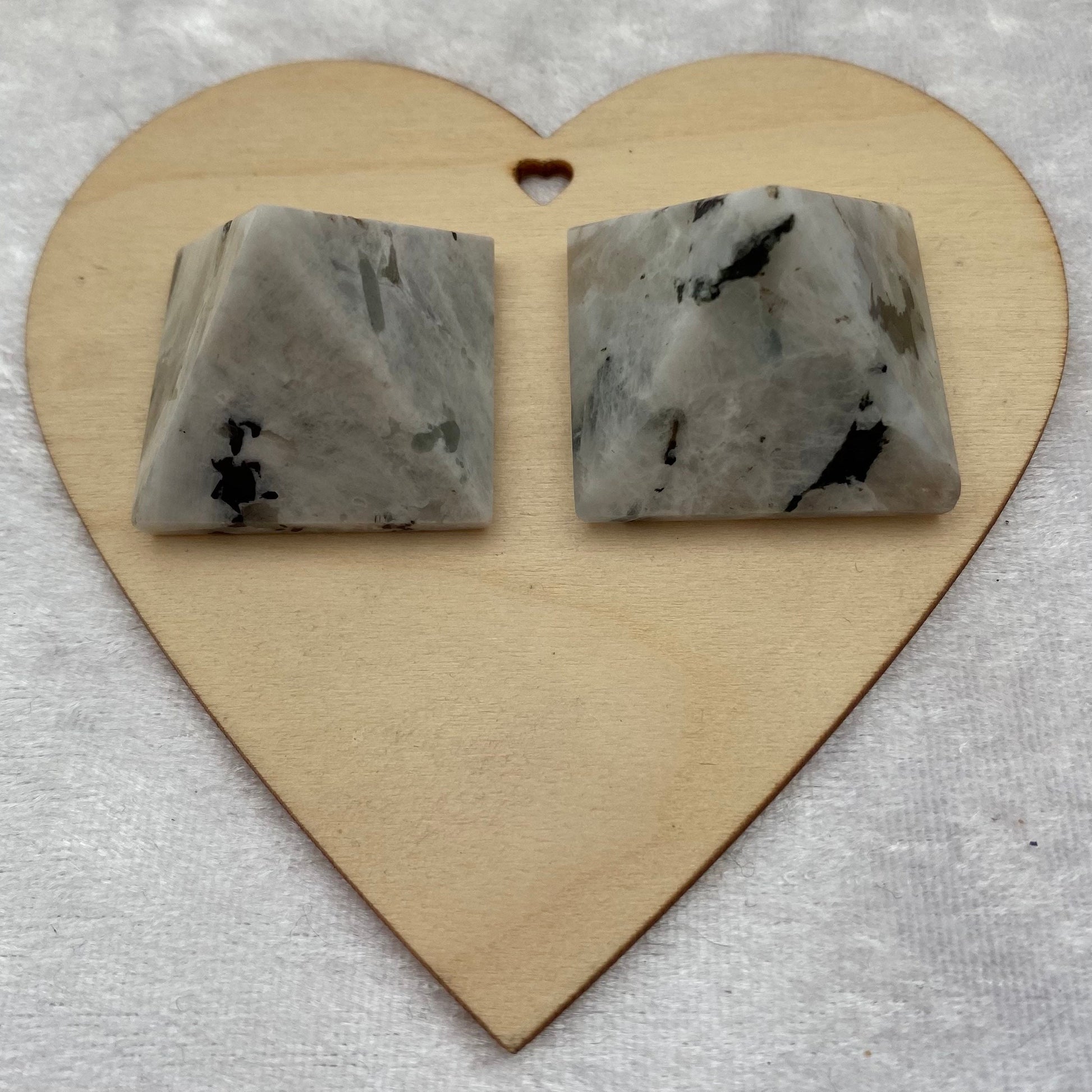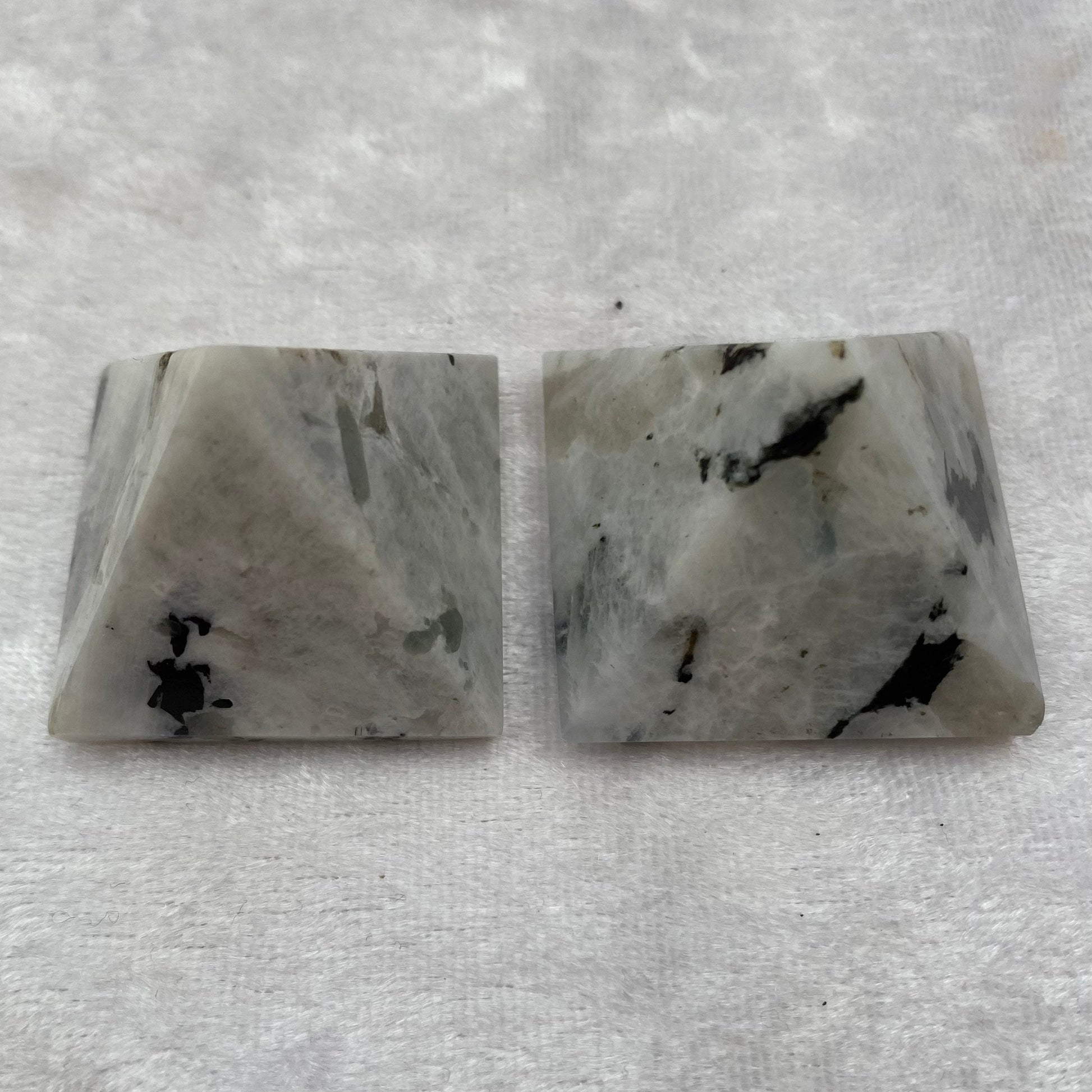 Moonstone is a variety of the feldspar-group mineral orthoclase. It’s composed of two feldspar minerals, orthoclase and albite. At first, the two minerals are intermingled. Then, as the newly formed mineral cools, the intergrown orthoclase and albite separate into stacked, alternating layers.