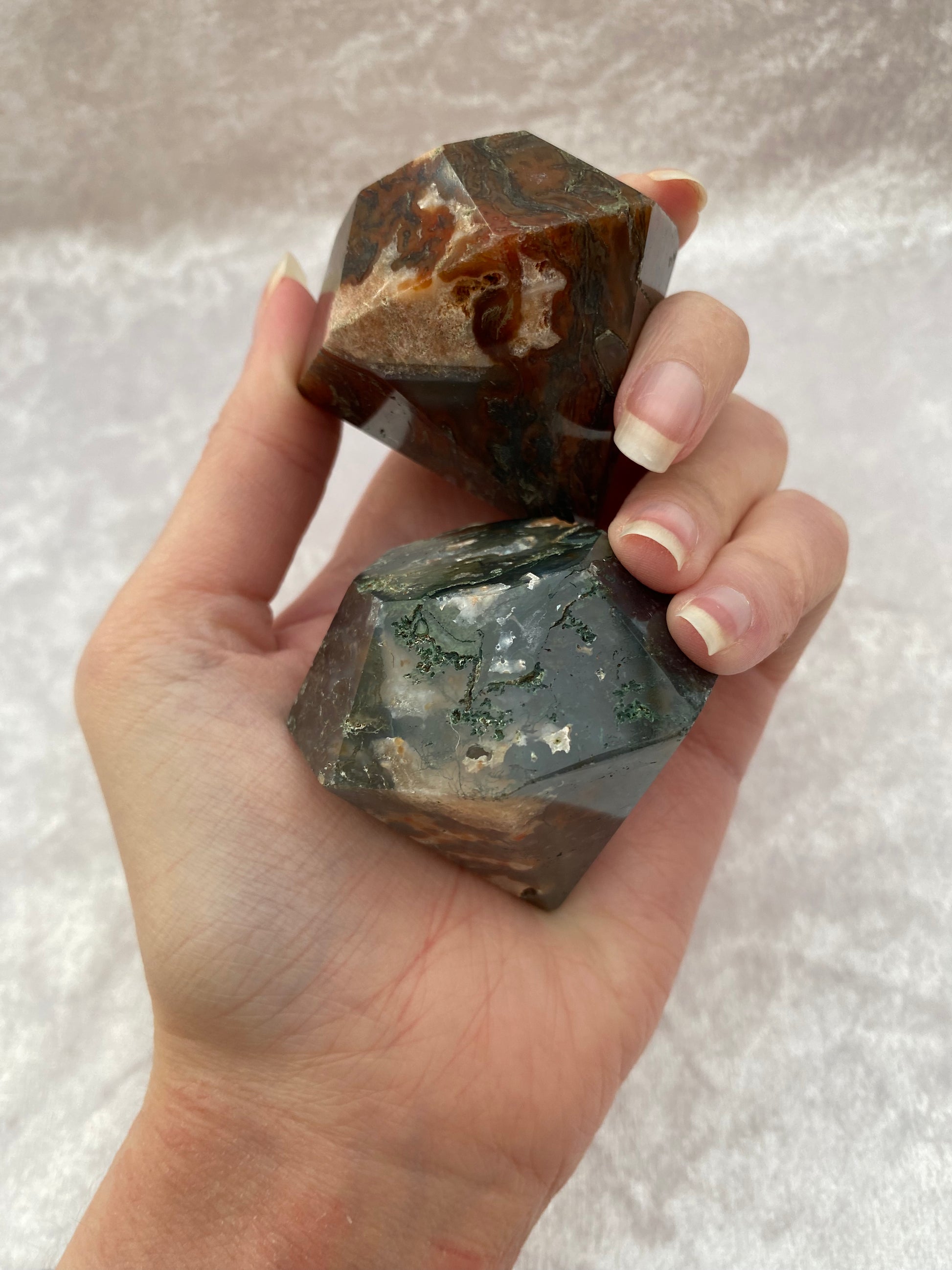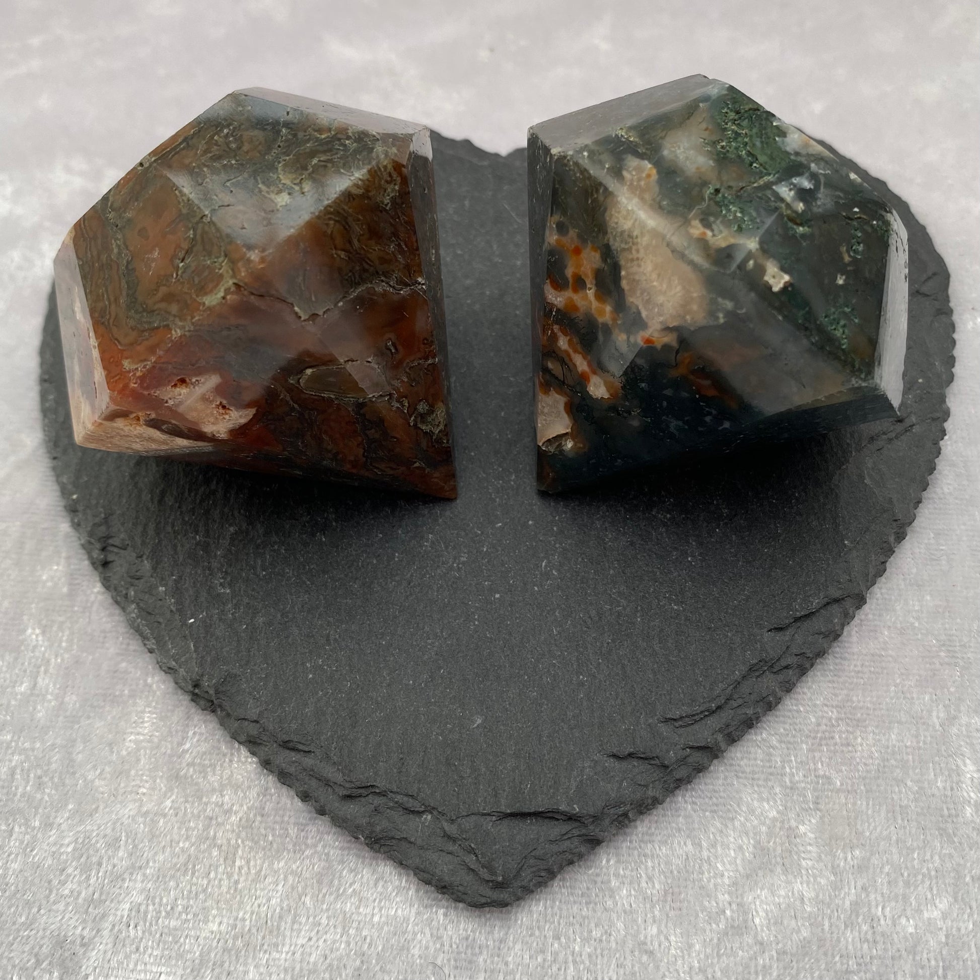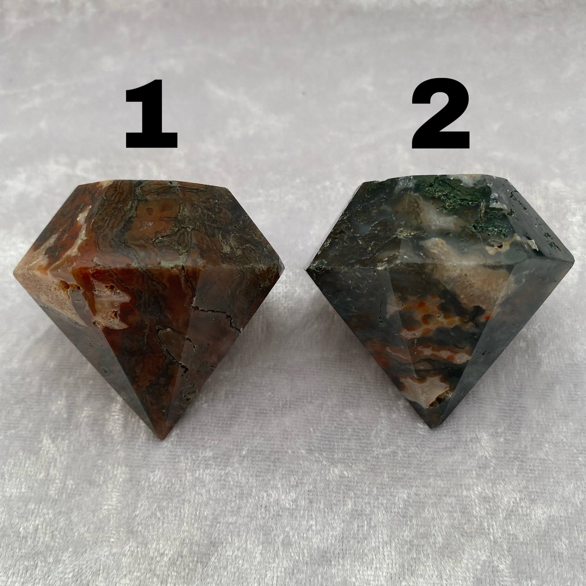 Red Moss Agate and Moss Agate diamond carvings