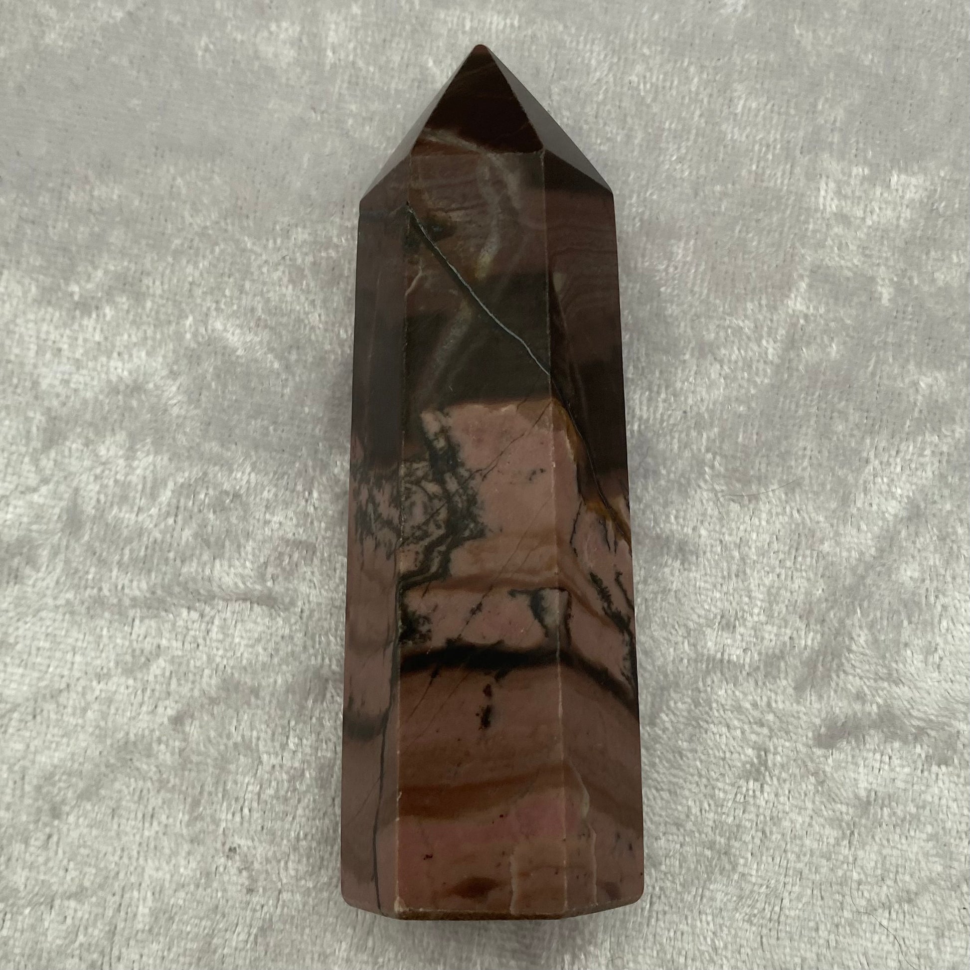 The Rhodonite crystal meaning comes from the word rhodon, which means ‘rose’ in Greek. Rhodonite often has black manganese oxide veins running through a specimen, giving it the distinct appearance of pink with black crisscrossing lines and flower-like formations throughout.