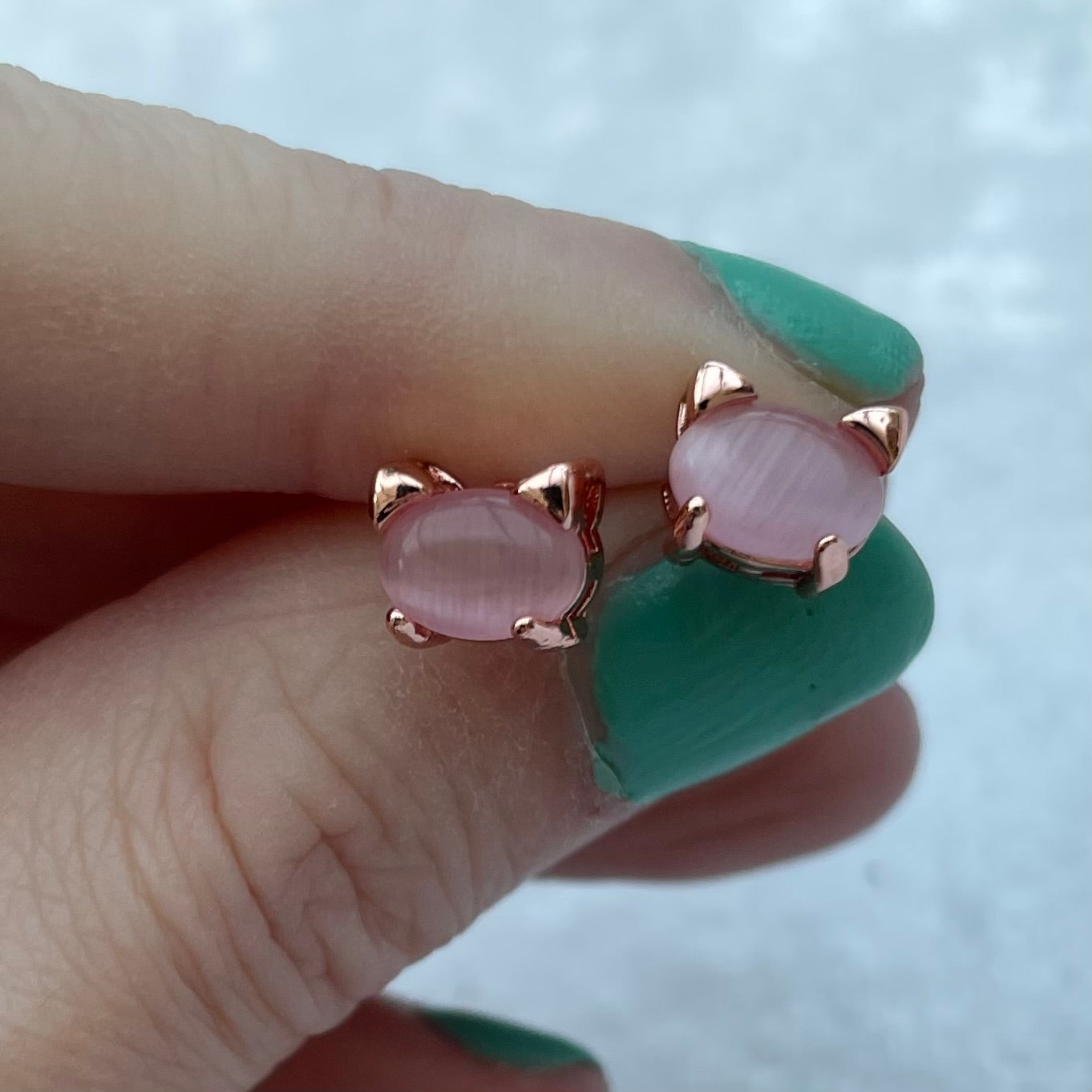 Rose Gold Coloured Pink Cats Eye Cat Earrings