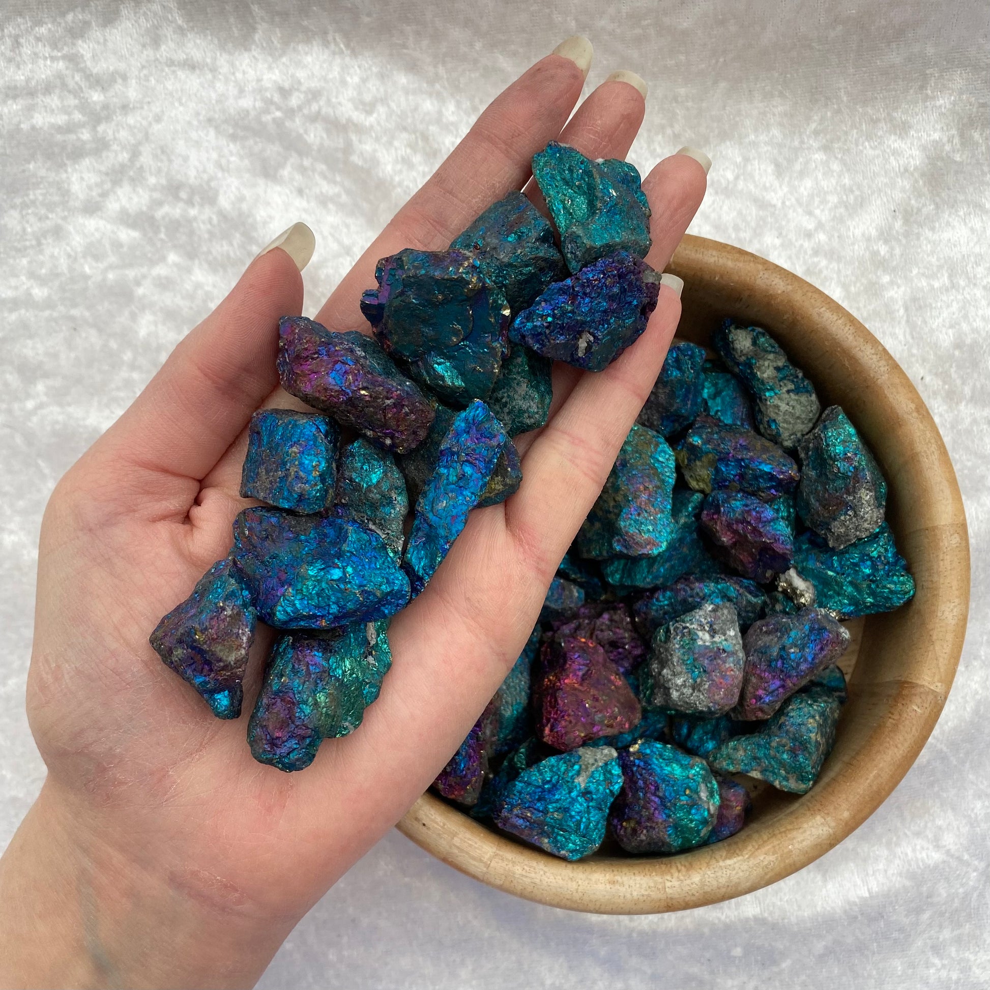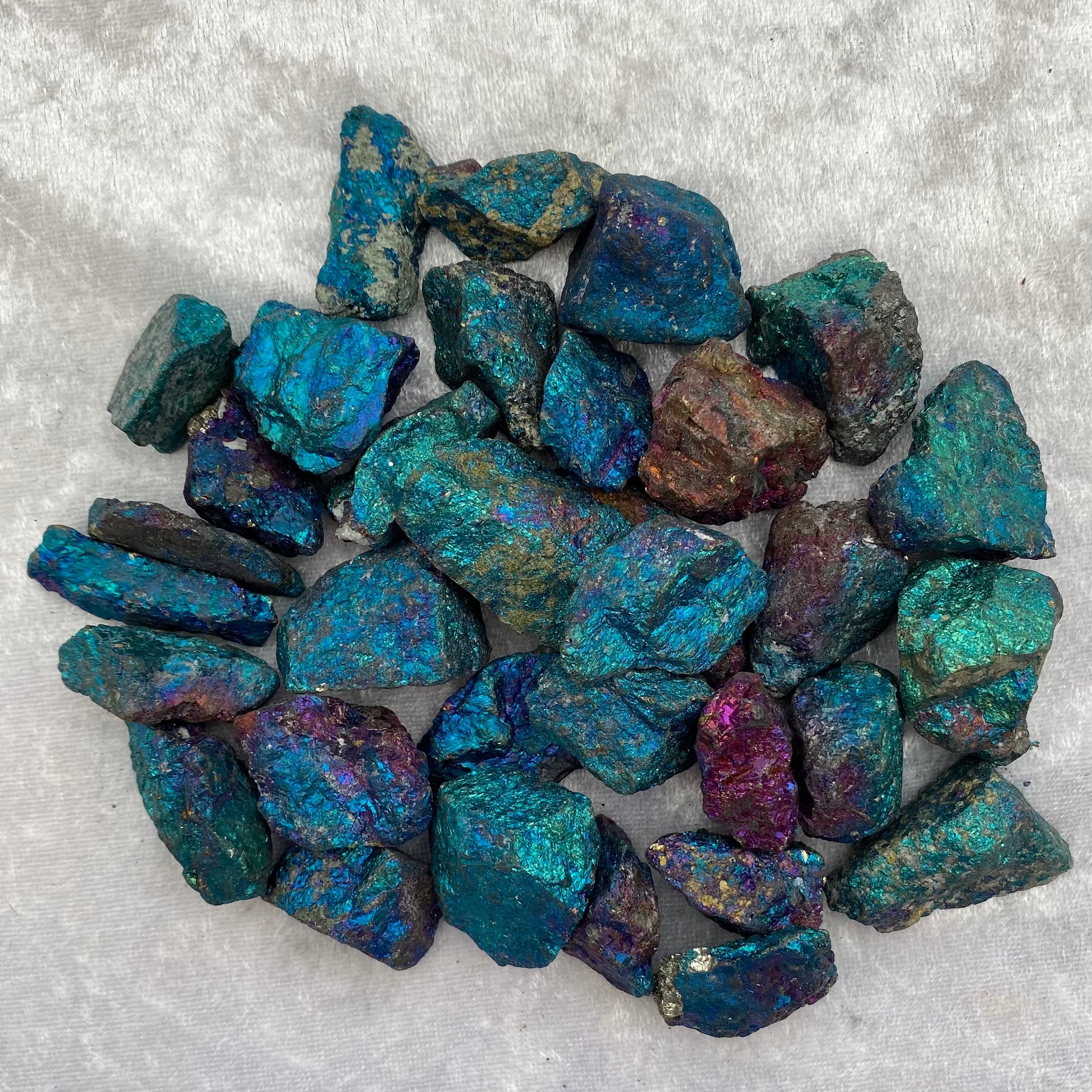 Chalcopyrite, often known as peacock ore, is commonly found in hydrothermal veins. It is a copper and iron sulfide, and is the most common copper mineral.