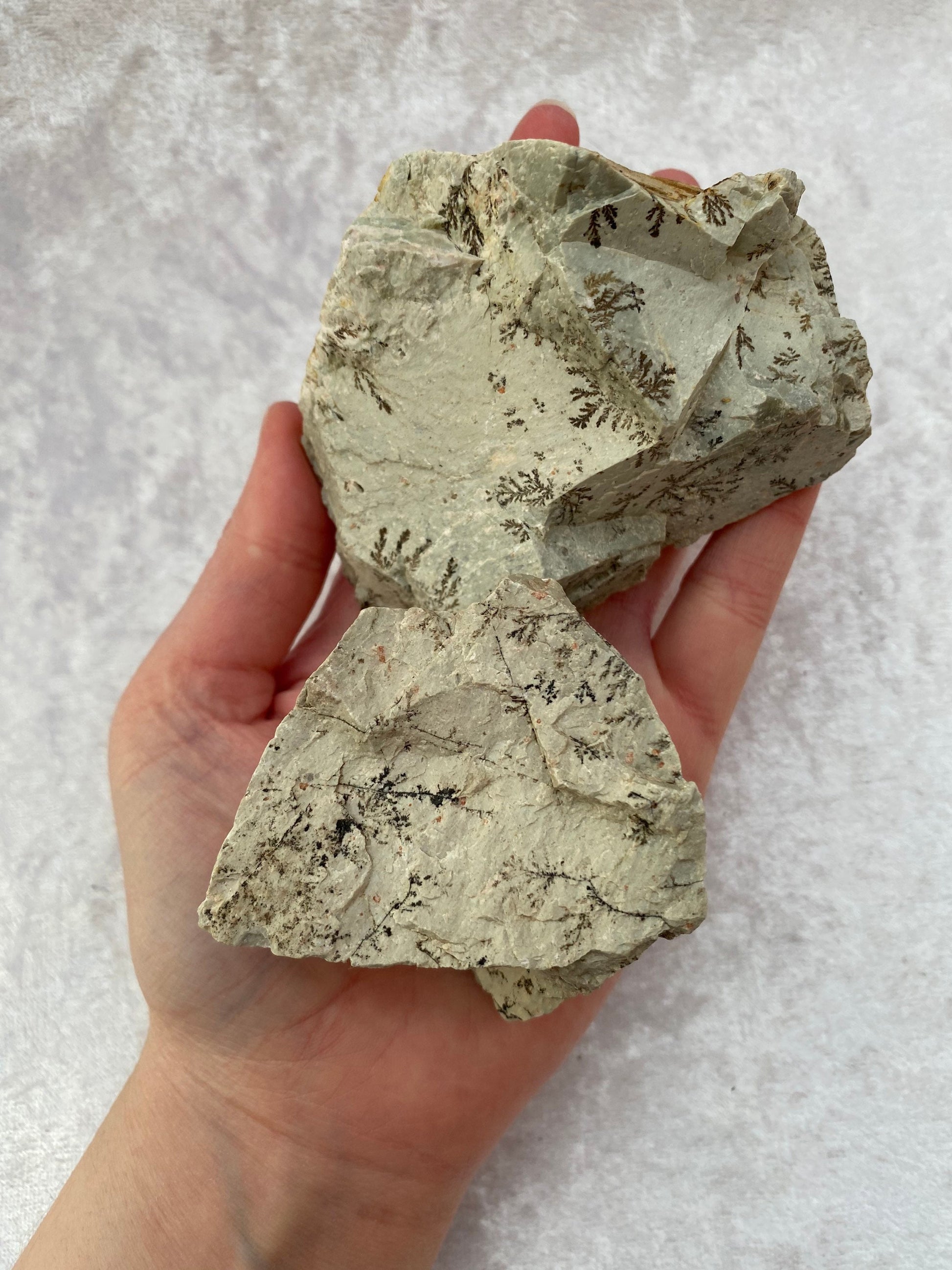 A common opal is defined as “dendritic” when it contains fern, moss, or tree-like patterned inclusions of metallic oxides like manganese and iron. It is also known as Merlinite.