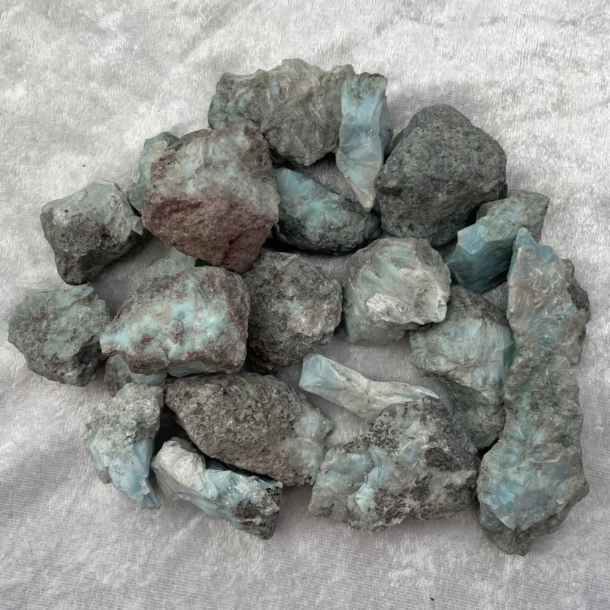 Larimar is a type of pectolite or a rock composed largely of pectolite, an acid silicate hydrate of calcium and sodium. Pectolite is found in many locations, but larimar has a unique volcanic blue coloration, which is the result of copper substitution for calcium.