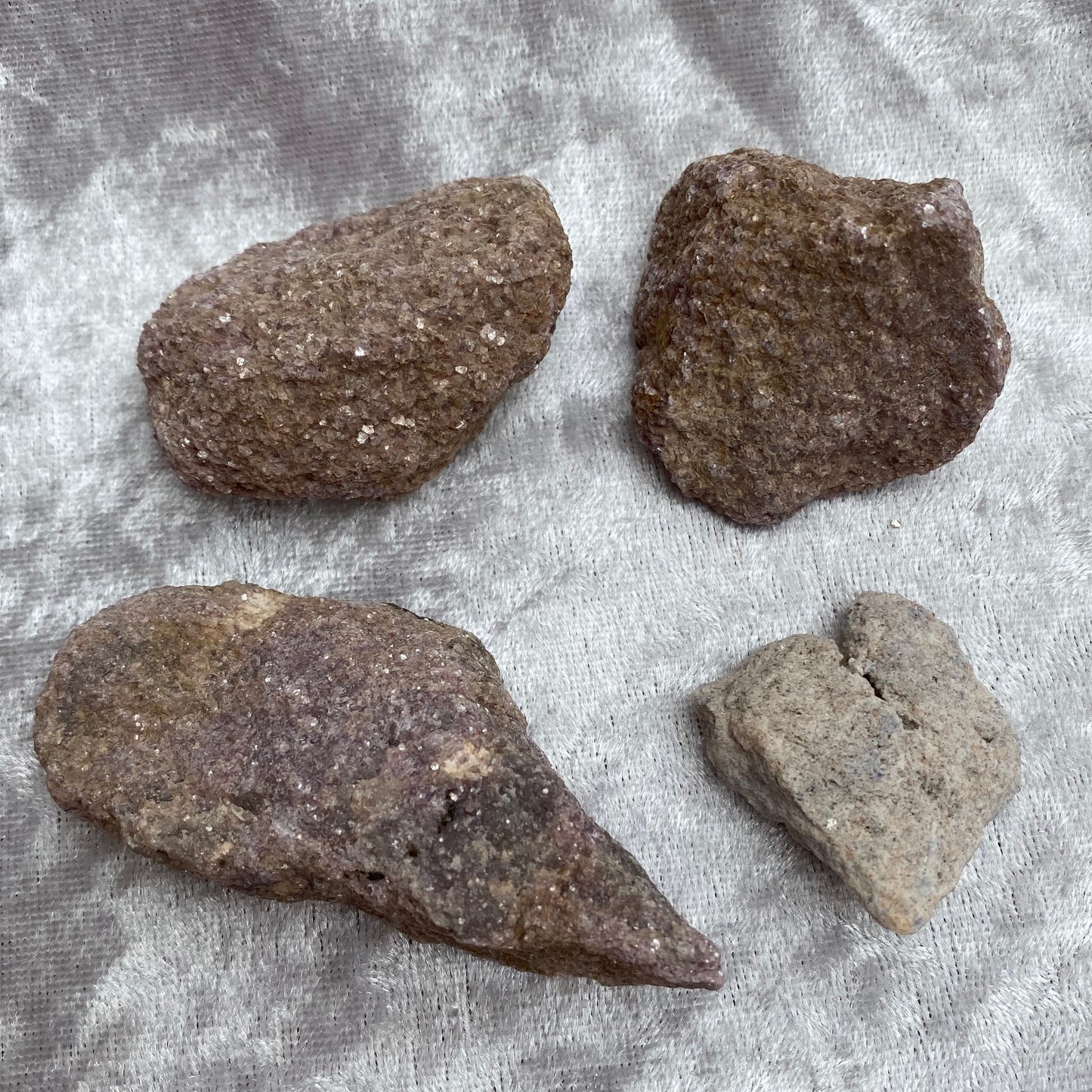 Lepidolite is the name of a rare lithium-rich mica mineral that is usually pink, red, or purple in color. Lepidolite can only form in geochemical environments where high concentrations of lithium are available for mineral formation.