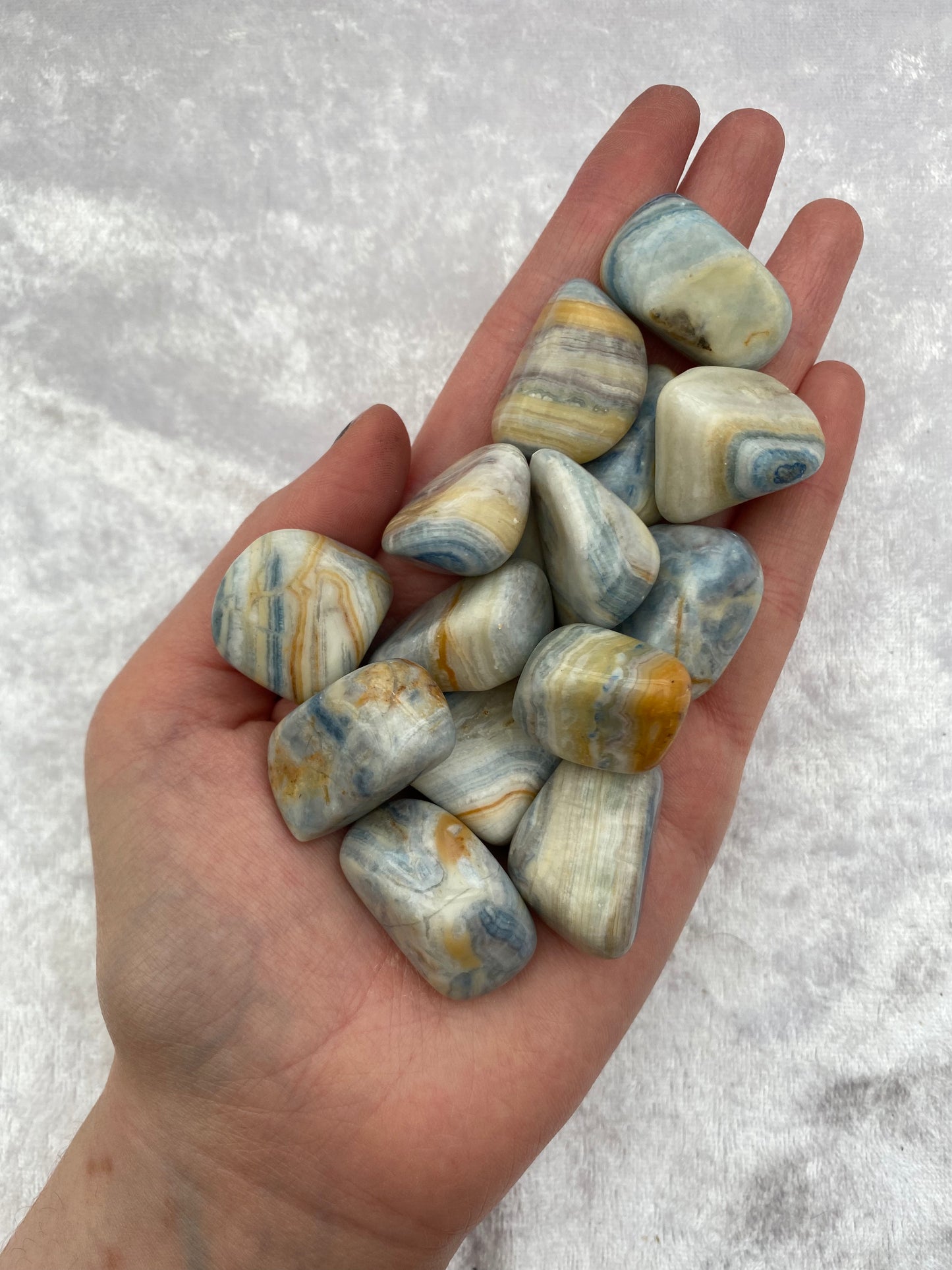 Scheelite is a newly discovered combination stone from Turkey, also known as Lapis Lace Onyx due to the banded effects which is actually Scheelite in combination with Calcium.