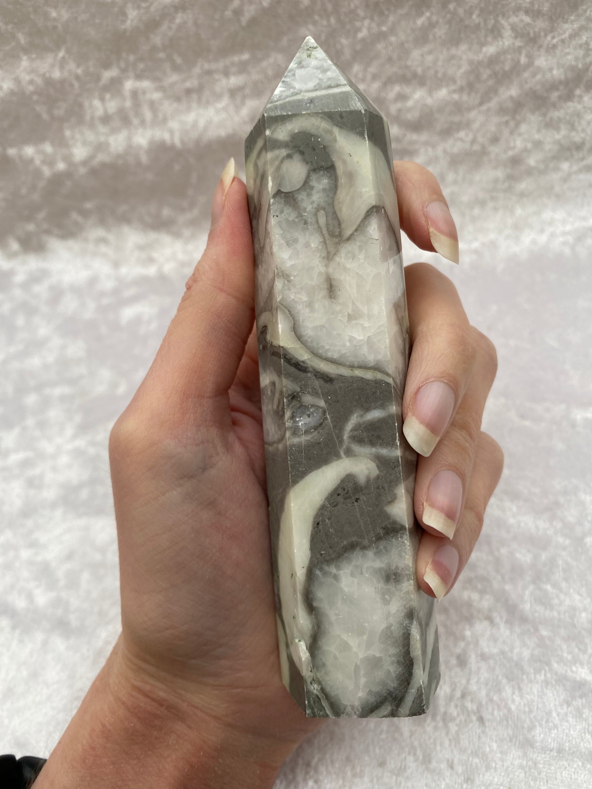 Shell Jasper is not actually a Jasper at all, but a metamorphosed marble consisting of mostly calcite with swirls of limestone, chert, and other impurities that appear like shells.