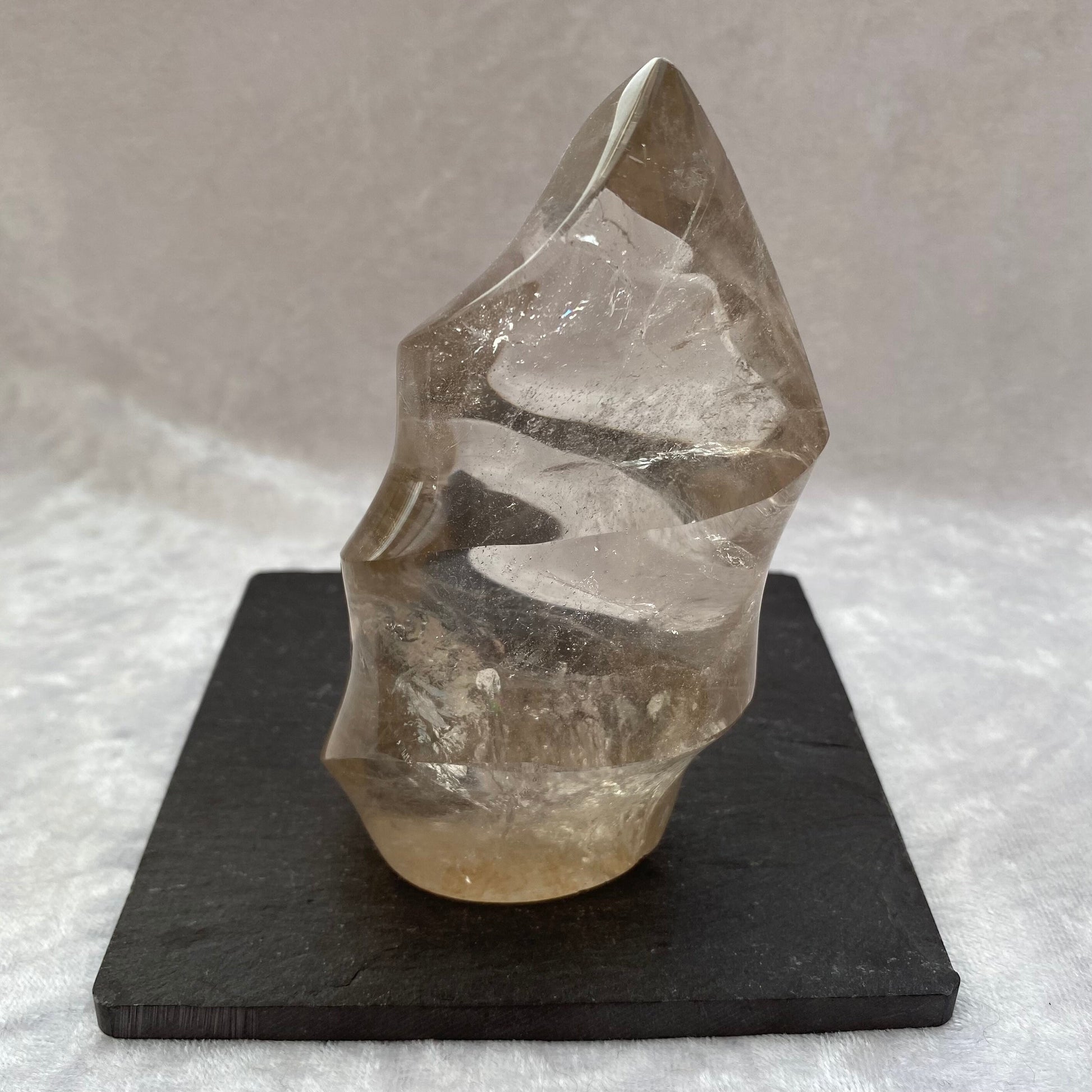 Smoky Quartz is often found in large crystals of excellent transparency with few inclusions. The color of smoky quartz is produced when natural radiation, emitted from the surrounding rock, activates color centers around aluminum impurities within the crystalline quartz.