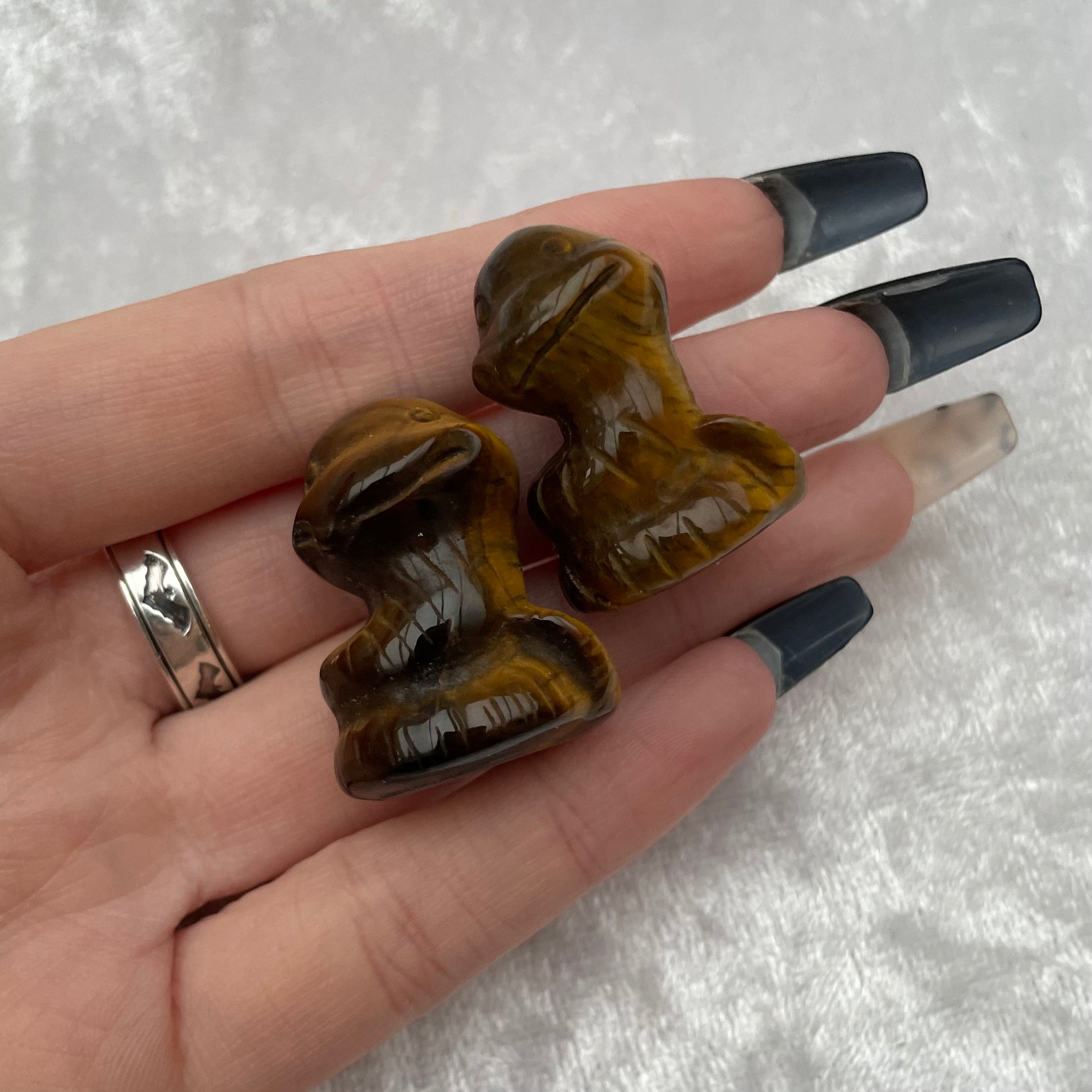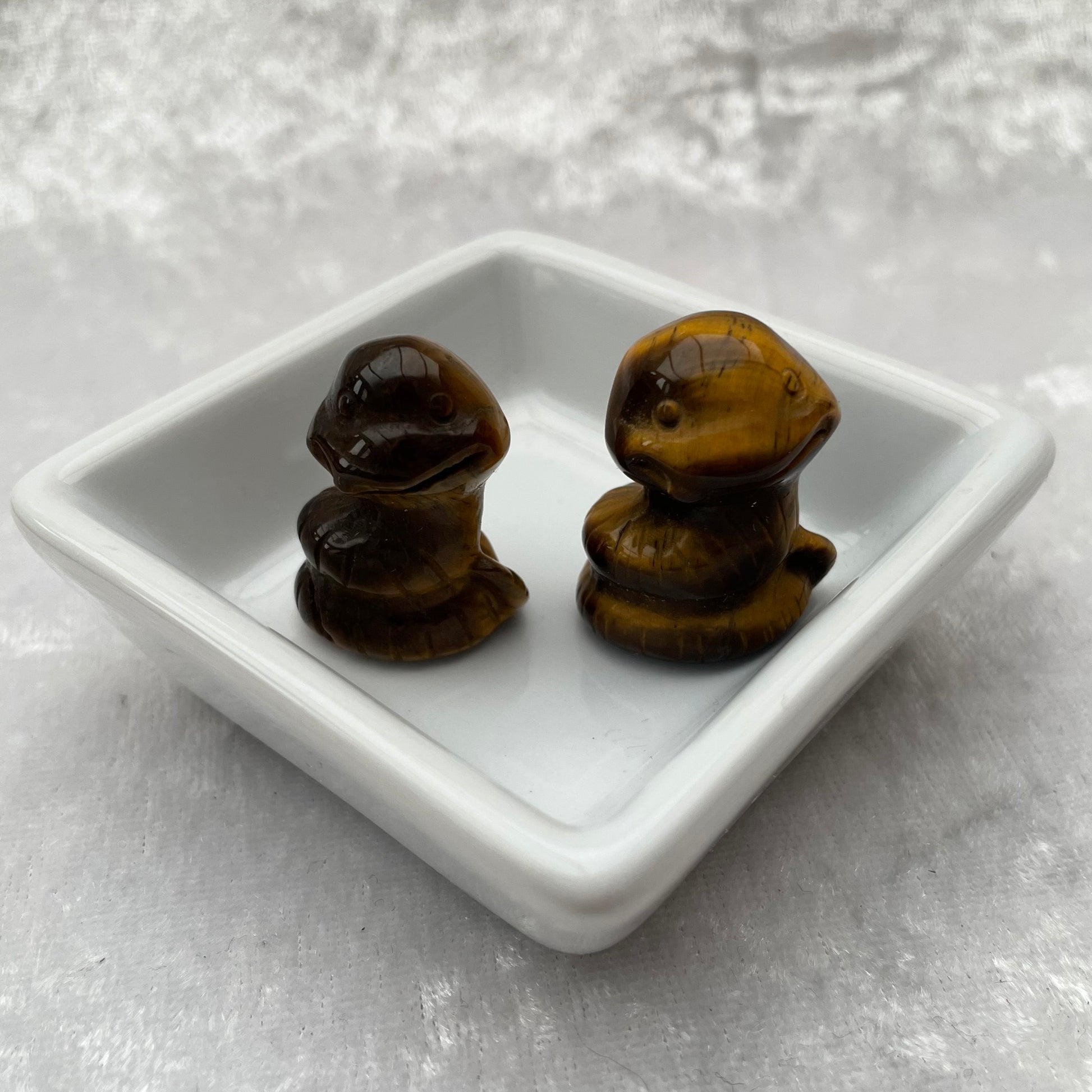 Tiger's Eye is a pseudomorph of compact Quartz after the fibrous mineral Crocidolite. It is formed when the Quartz takes over and dissolves the Crocodolite, leaving the Quartz in a finely fibrous and chatoyant form.
