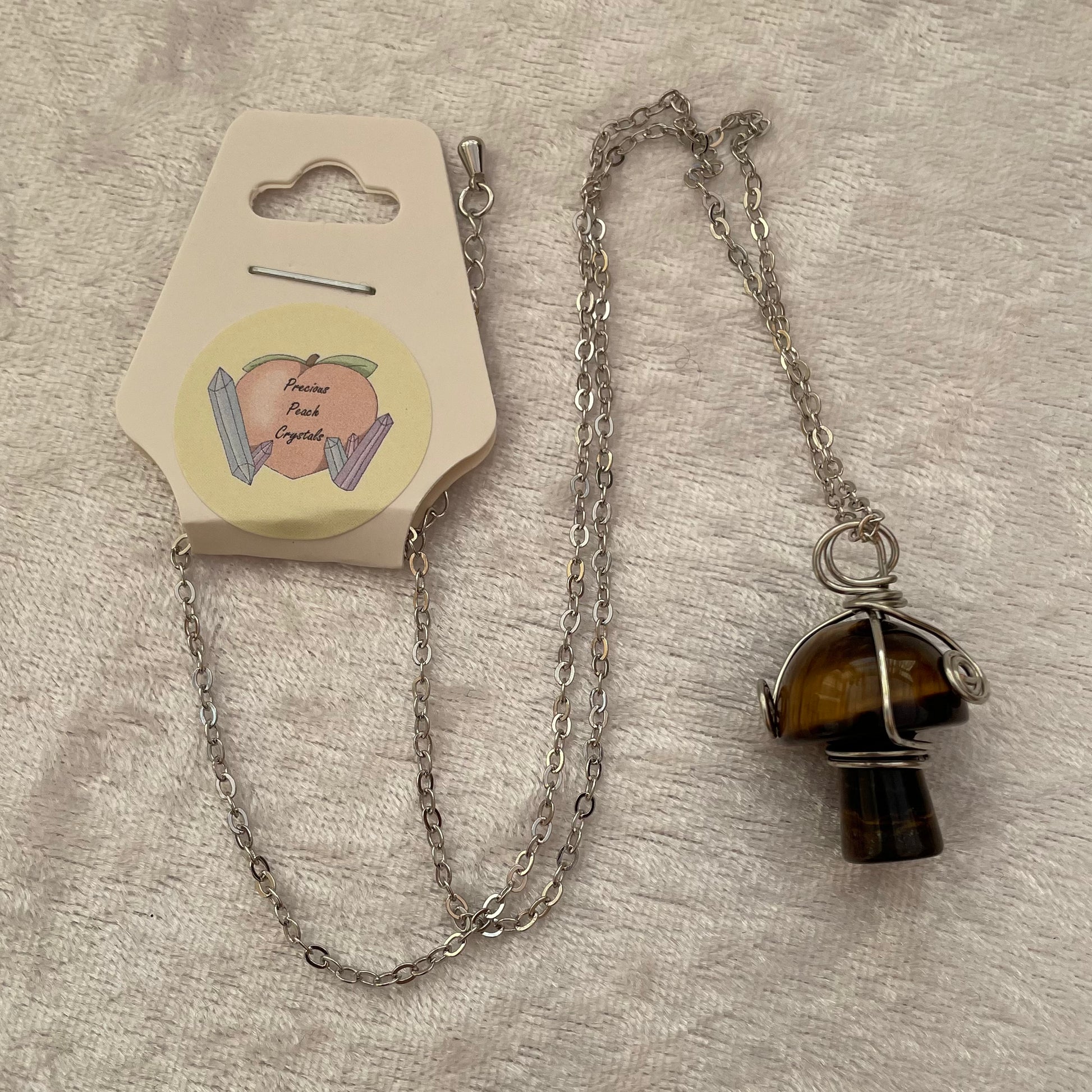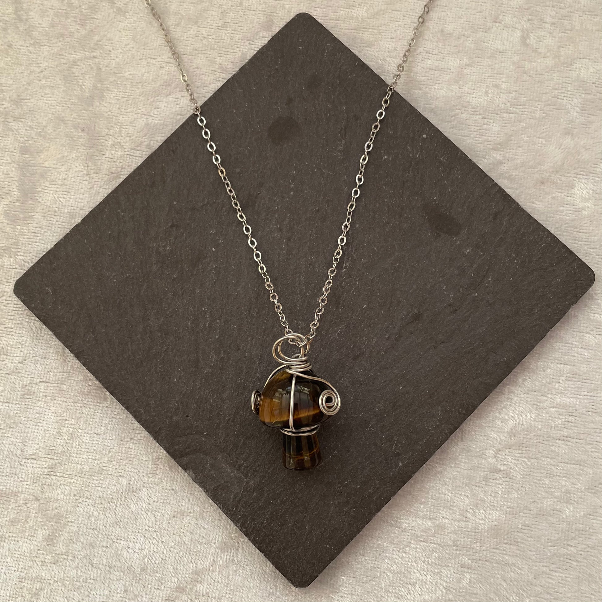 Tigers Eye Wire Wrapped Mushroom Necklace