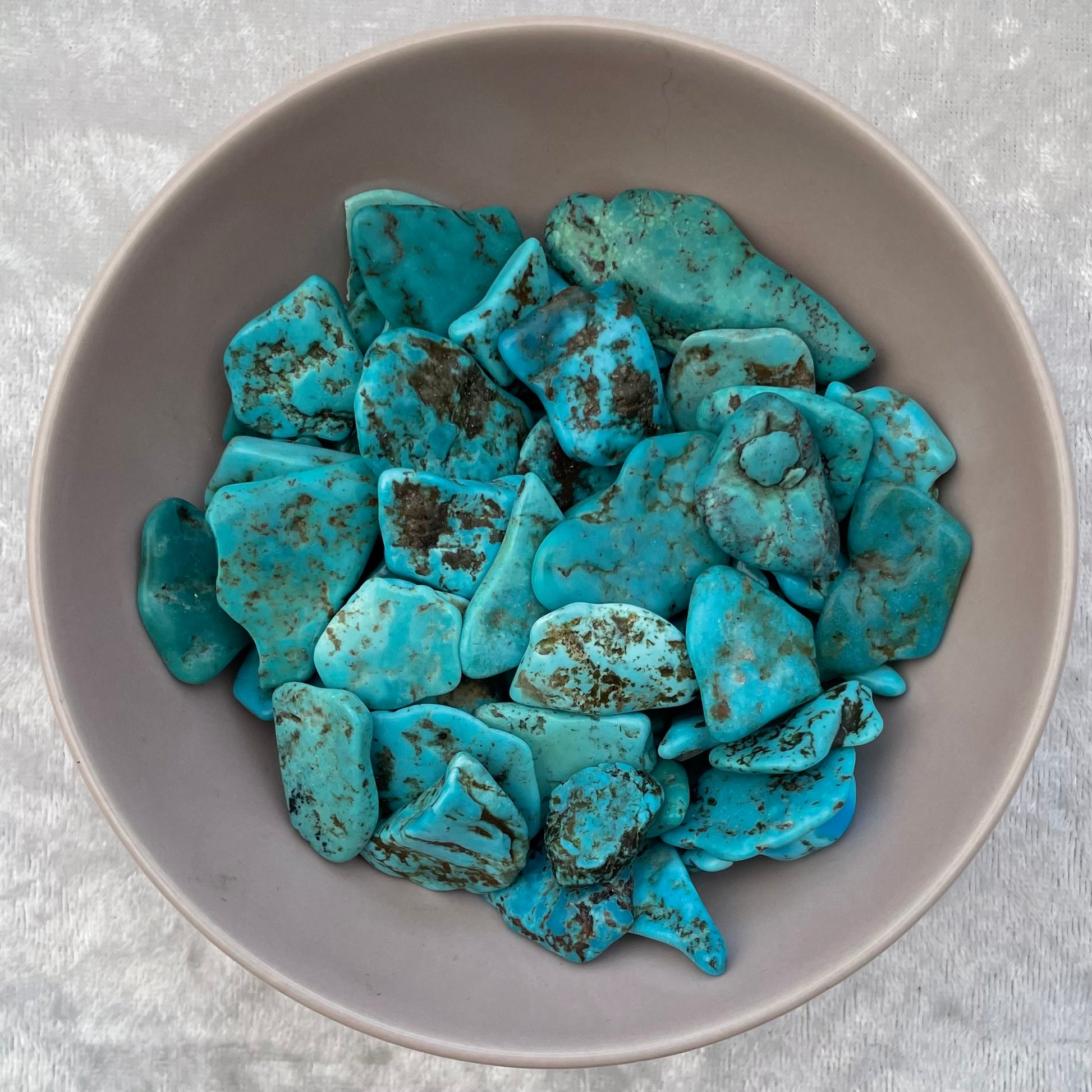 The mineral turquoise is formed by a chemical reaction which occurs when water containing specific minerals such as copper and aluminum leak through a rock. It forms in veins, which later then turn into a clump of turquoise.
