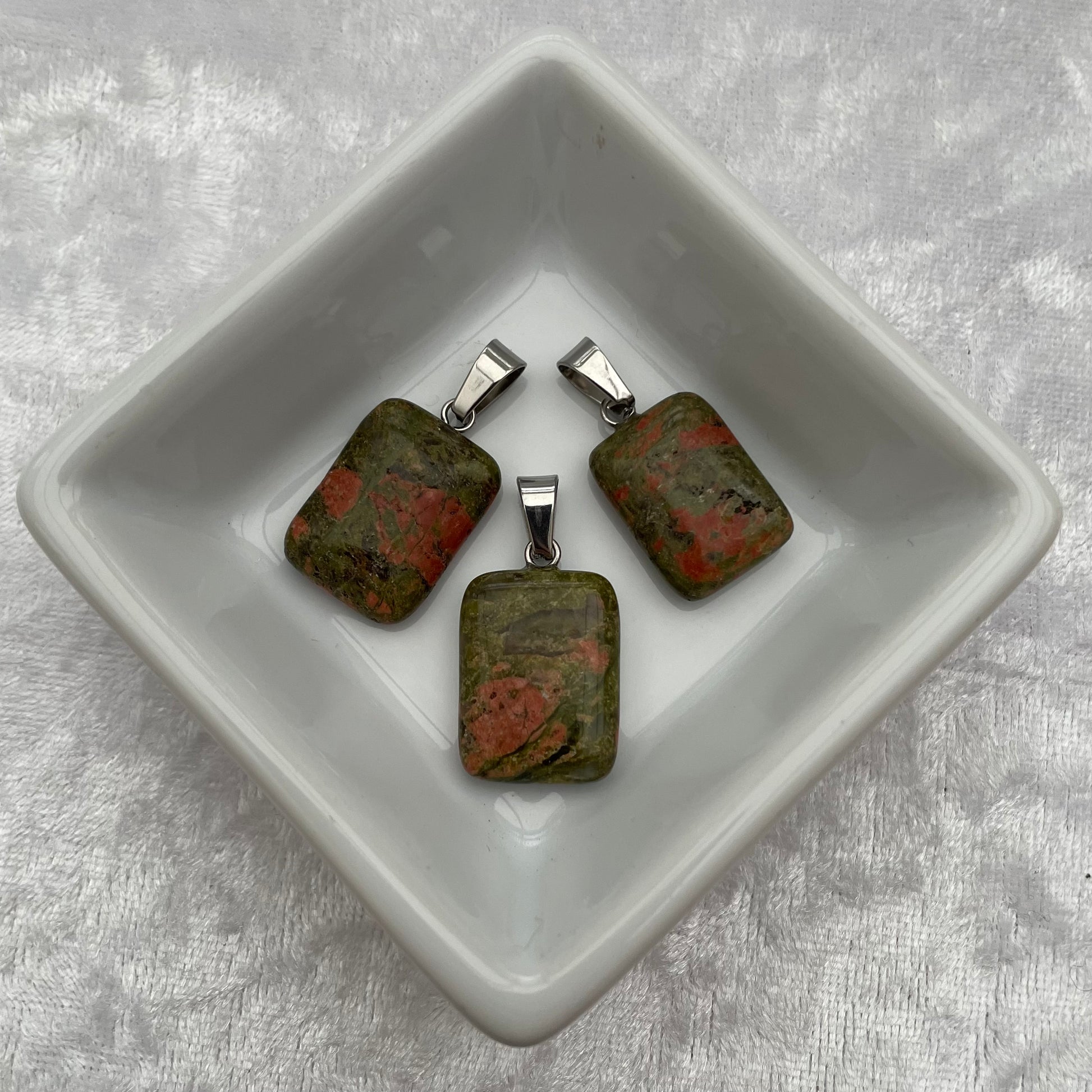 Unakite is a metamorphic rock that forms when granite is altered by hydrothermal activity. During metamorphism, plagioclase in the granite is replaced by epidote to produce a rock composed primarily of green epidote, pink orthoclase, and clear to bluish-gray quartz.